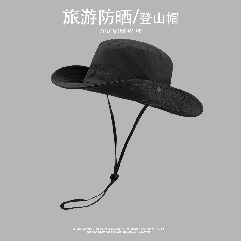• C2525 솔리드 컬러 등산 어부 모자 로프 블랙