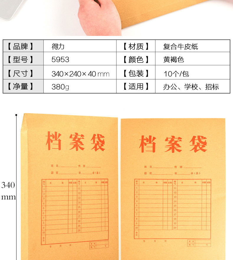 델리 5953 크래프트 종이 파일 가방 파일 가방 입찰 두꺼운 정보 가방 서류 가방 10 팩 종이 도매스토어 가기
