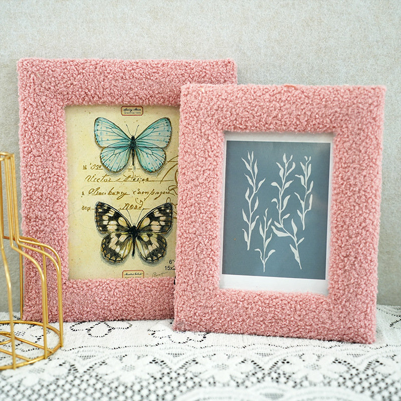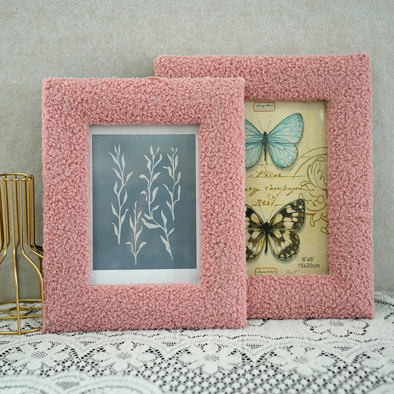 봉제 사진 프레임 대외 무역 가방 플란넬 테디 벨벳 스퀘어 중공 사진 프레임 유럽과 미국의 절묘한 천 테이블 7 인치 DIY 국경스토어 가기