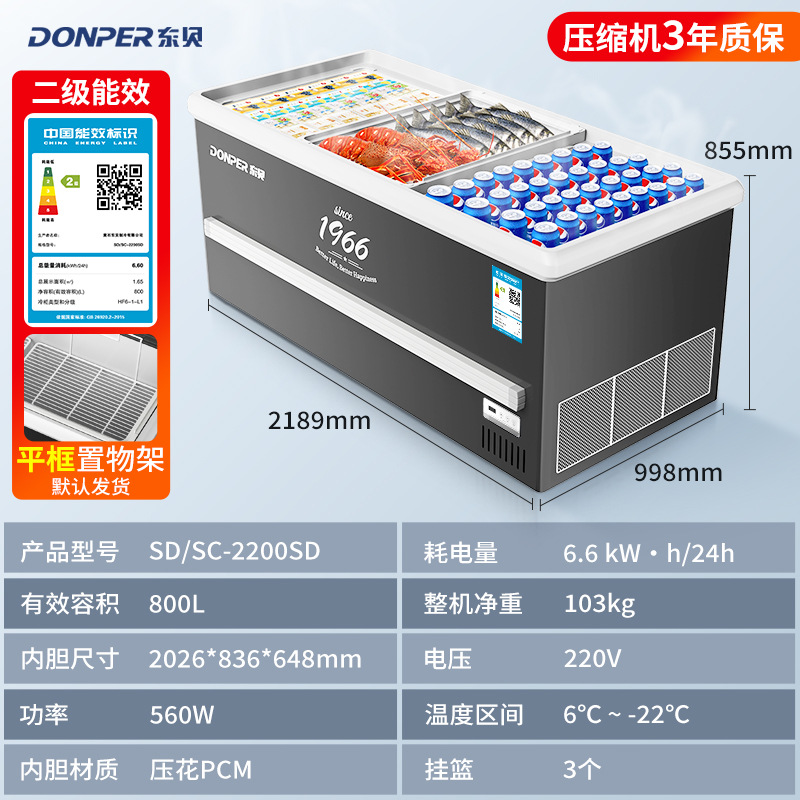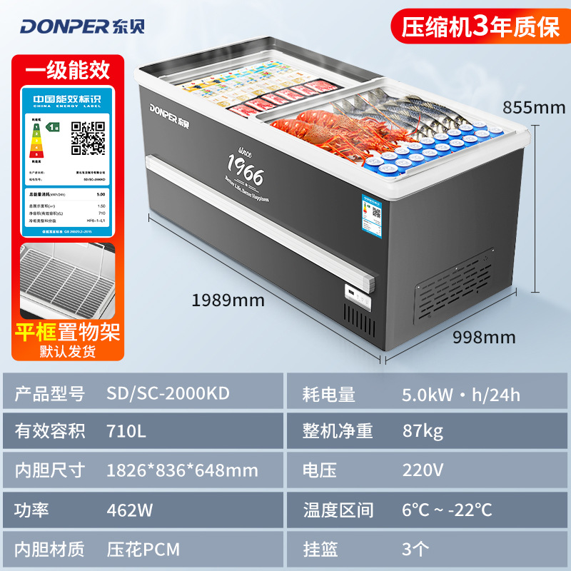 동베이 상업용 수평 디스플레이 캐비닛 냉동고 유리 도어 냉동고 신선한 캐비닛 슈퍼마켓 조합 섬 캐비닛 아이스크림 캐비닛