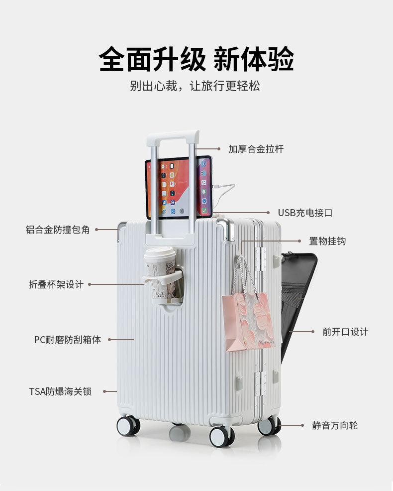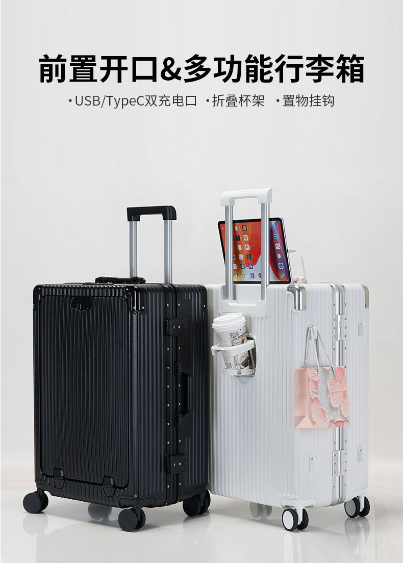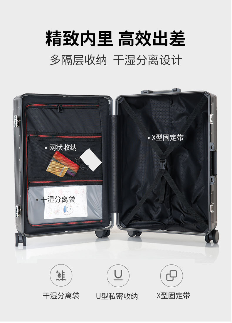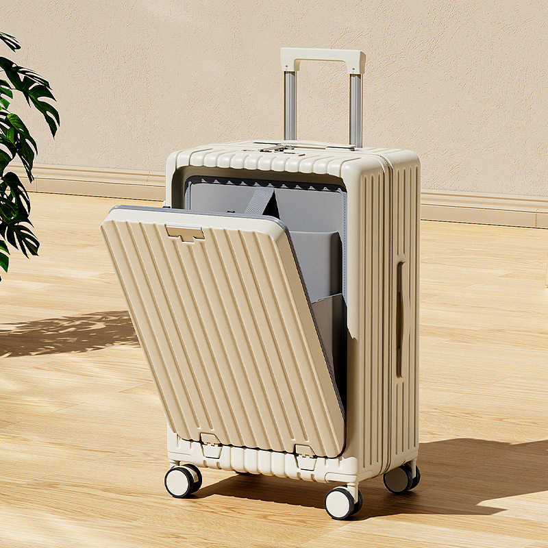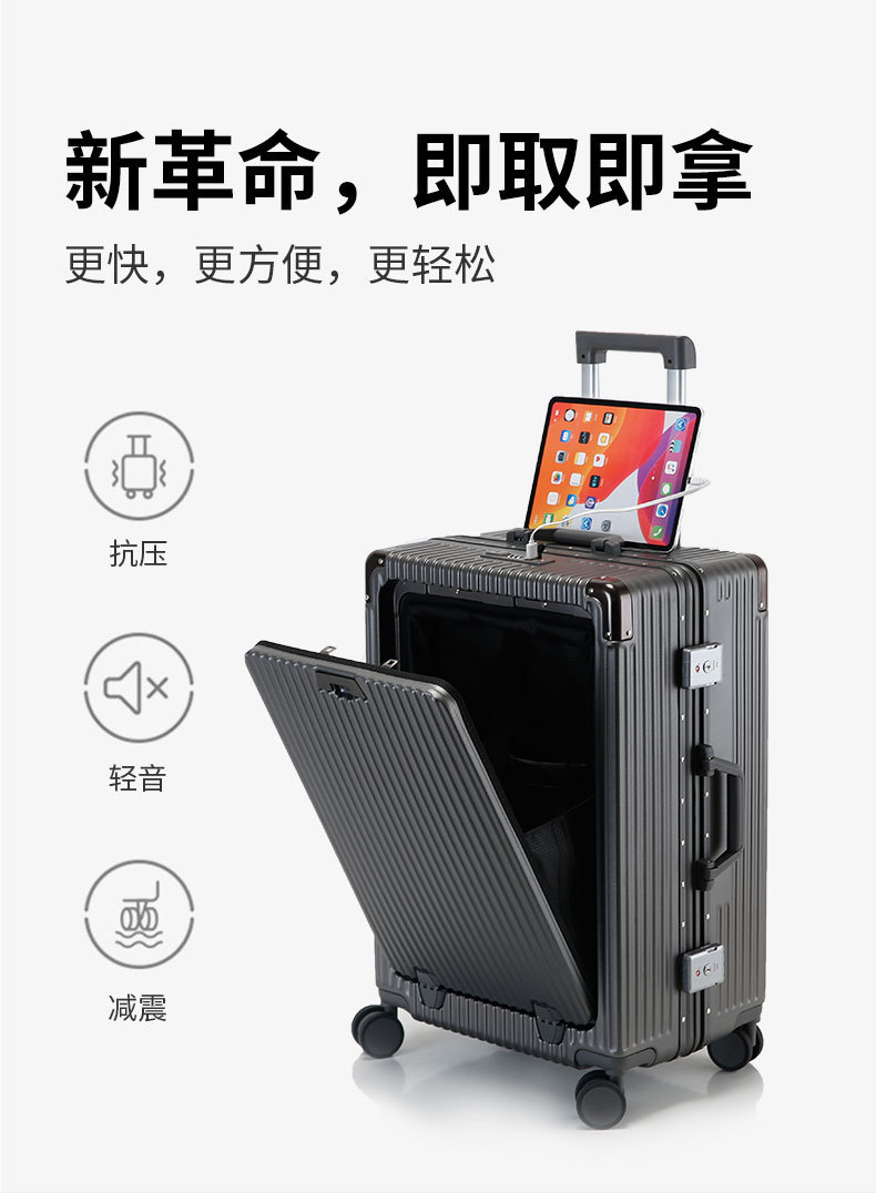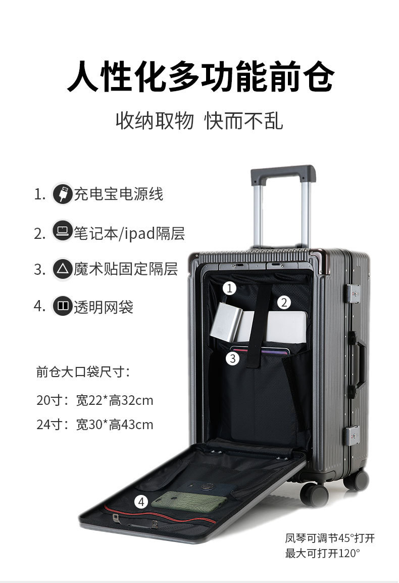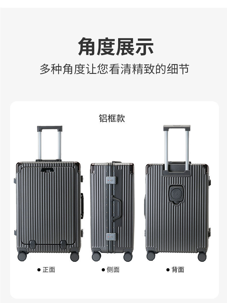 전면 개방형 여행가방 20inch 세관 잠금장치가 있는 트롤리 케이스, 회전바퀴가 달린 여행가방 24inch 비밀번호 잠금장치가 있는 알루미늄 프레임 대용량 여행가방