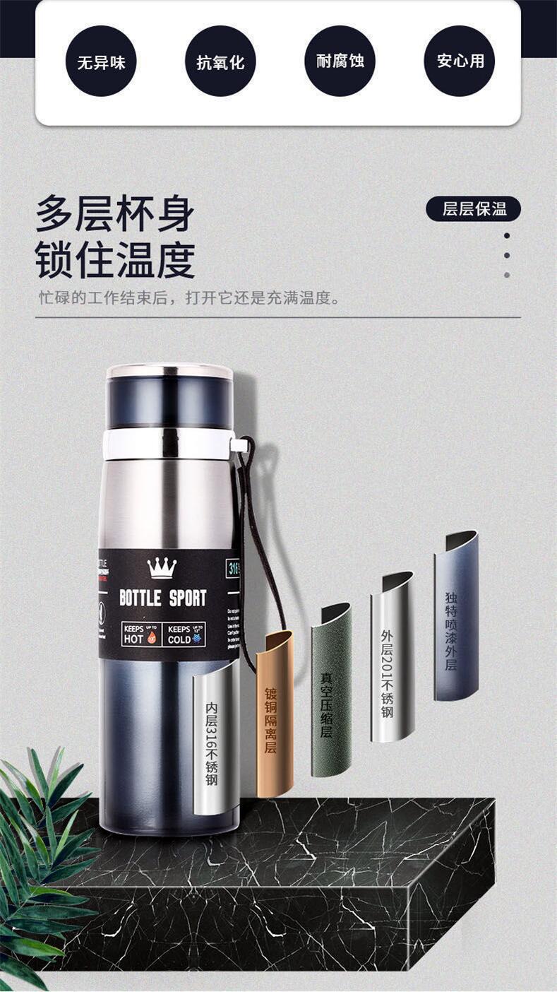 대용량 슬링 등산 여행 찻잔 304 스테인레스 스틸 보온병 야외 진공 스포츠 주전자 휴대용 사업스토어 가기