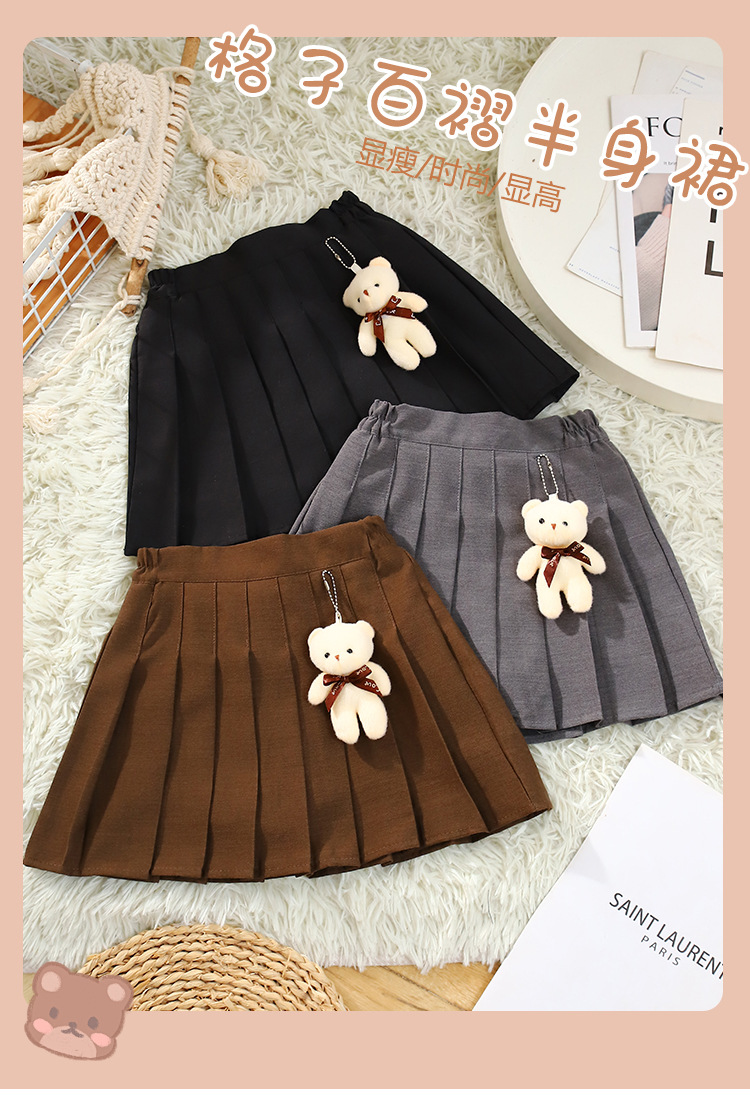 여자 주름 치마 봄 여름 착용 2025 새로운 회색 어린이 짧은 치마 대학 스타일 갈색 아기 스커트스토어 가기