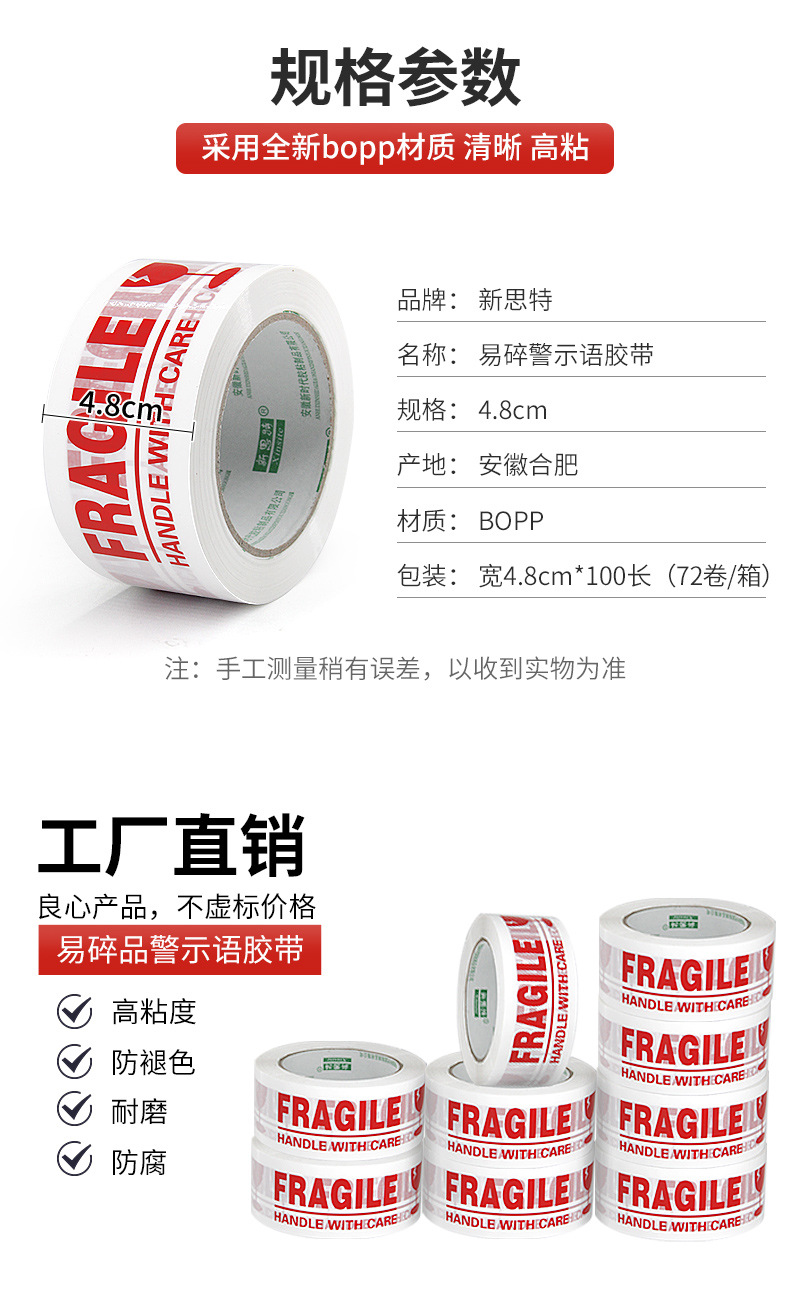 대외 무역 밀봉 테이프 국경 간 AliExpress 물류 포장 테이프 fragile100 m 경고 테이프스토어 가기