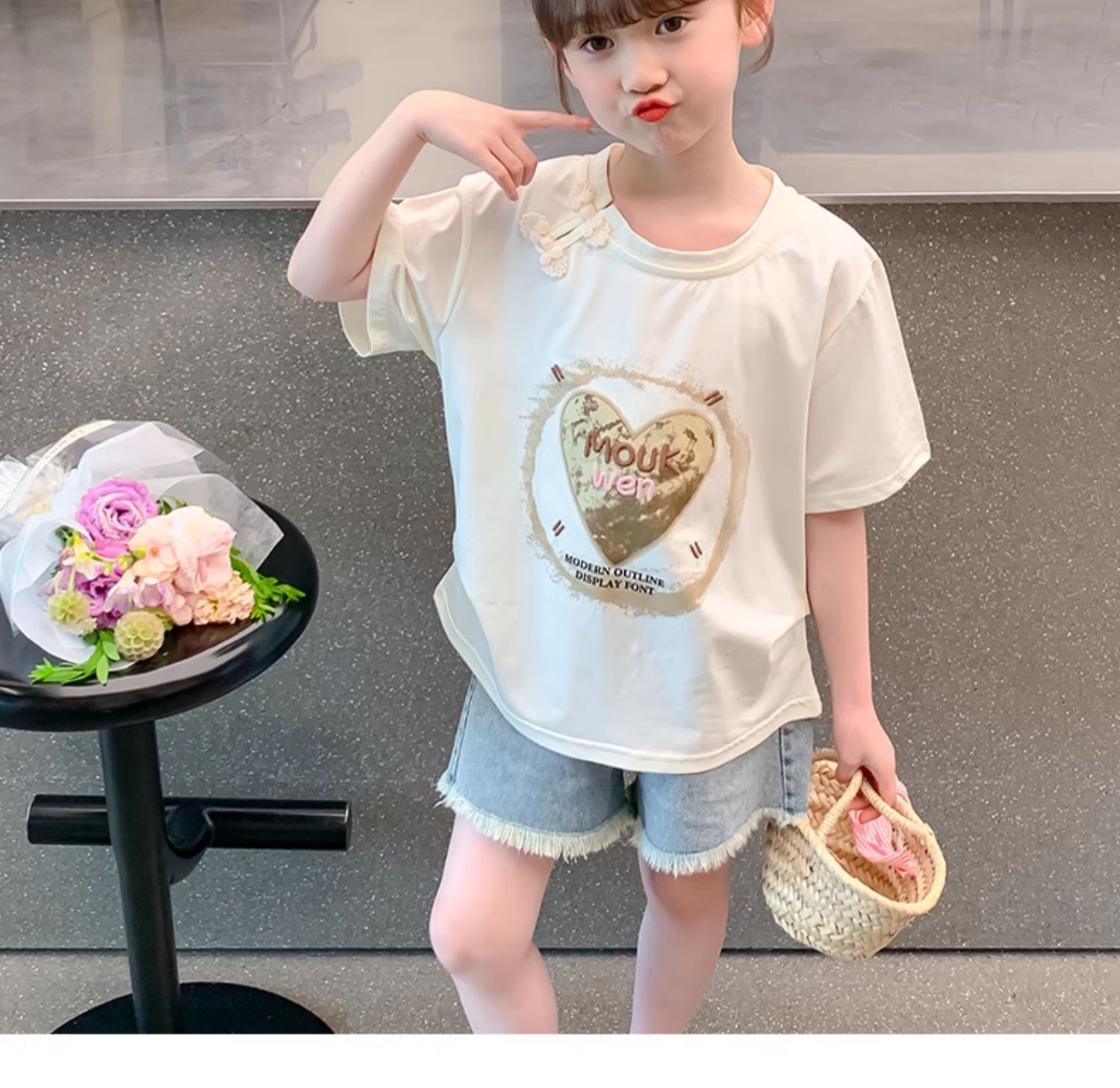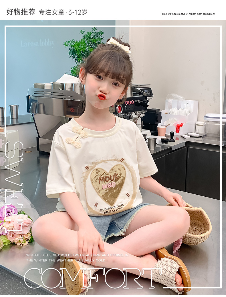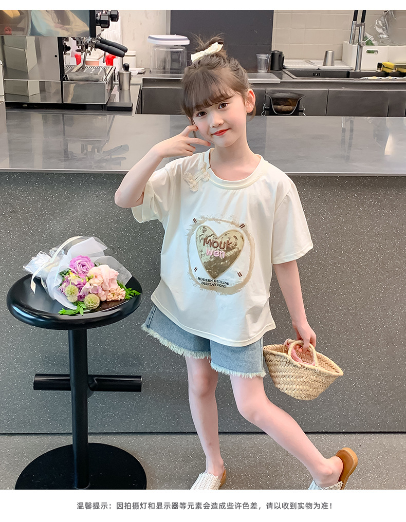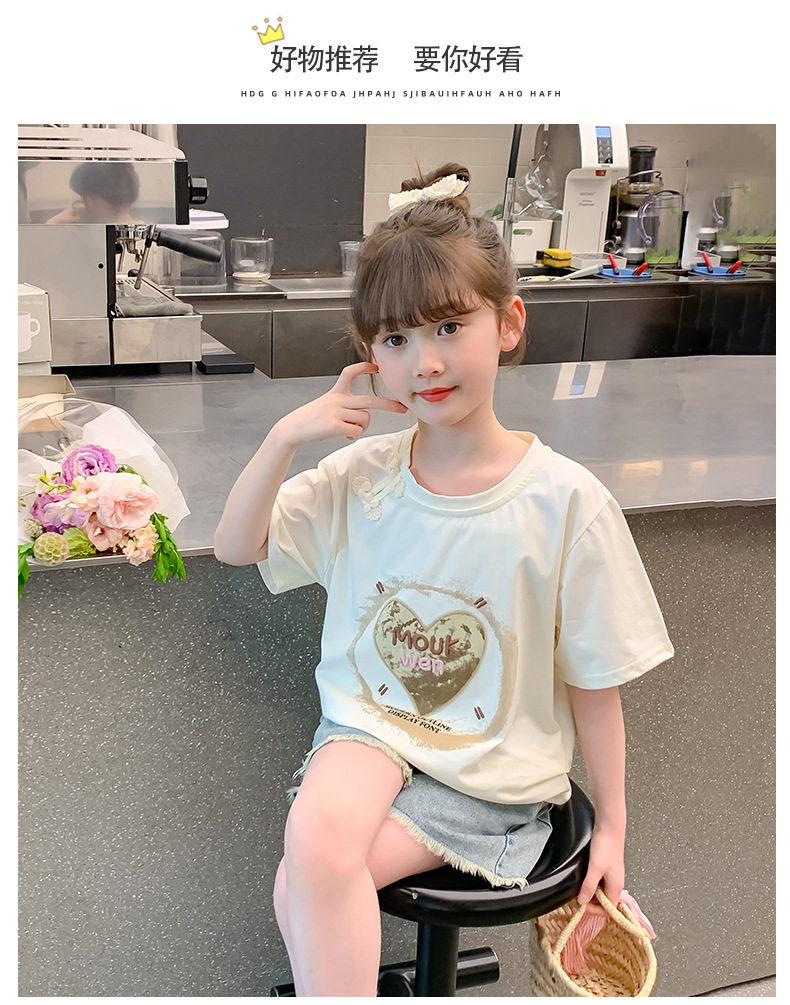 여자 여름 반팔 2025 여름 새로운 스타일 어린이 스타일 한국 스타일 티셔츠 탑 중대형 어린이 중국 스타일 티셔츠