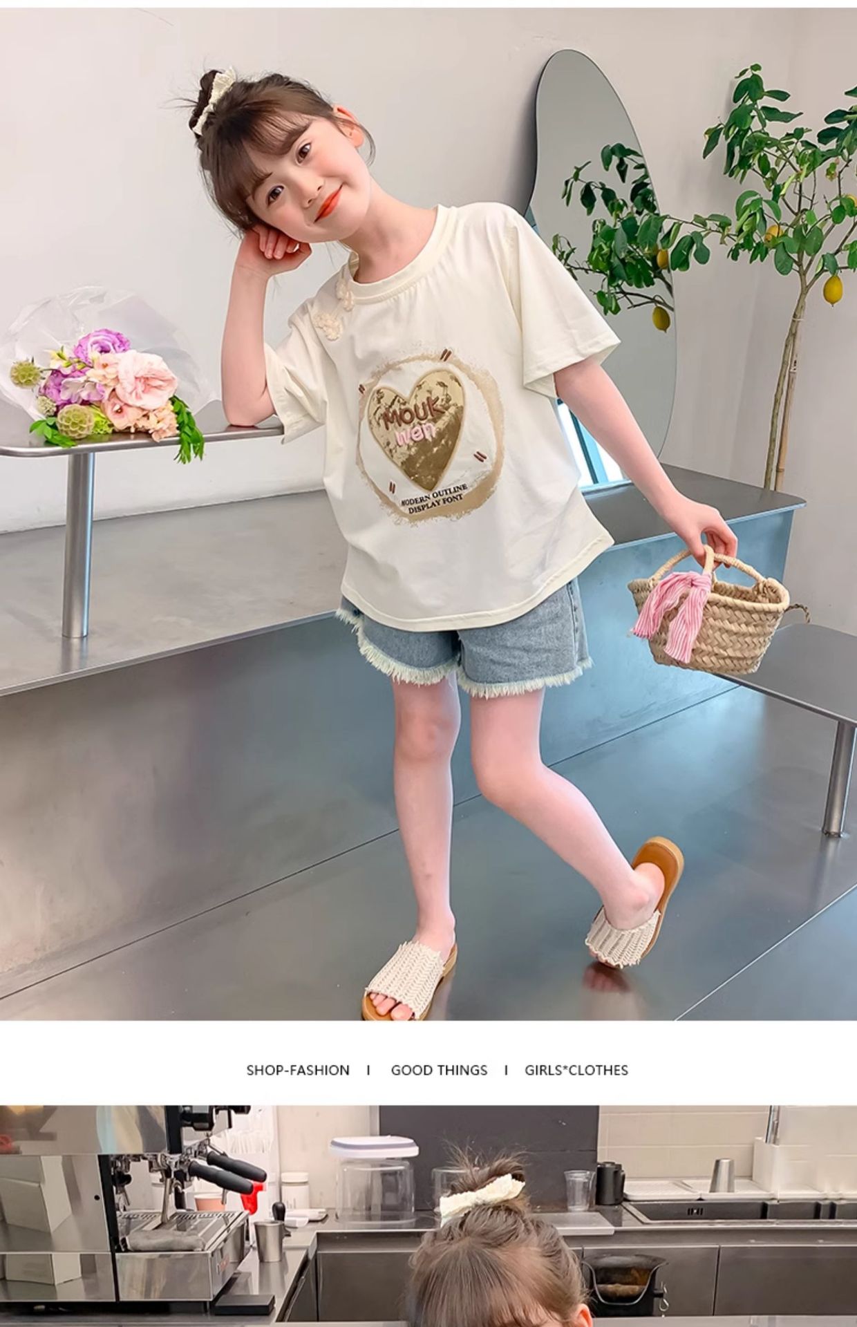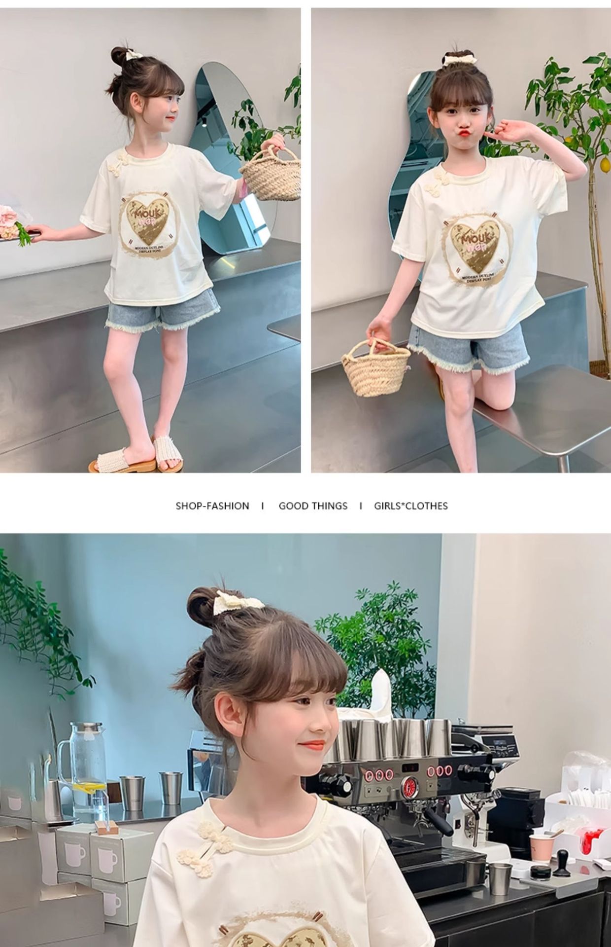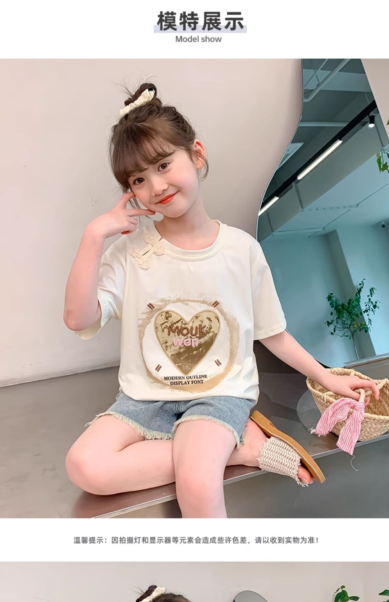 여자 여름 반팔 2025 여름 새로운 스타일 어린이 스타일 한국 스타일 티셔츠 탑 중대형 어린이 중국 스타일 티셔츠스토어 가기