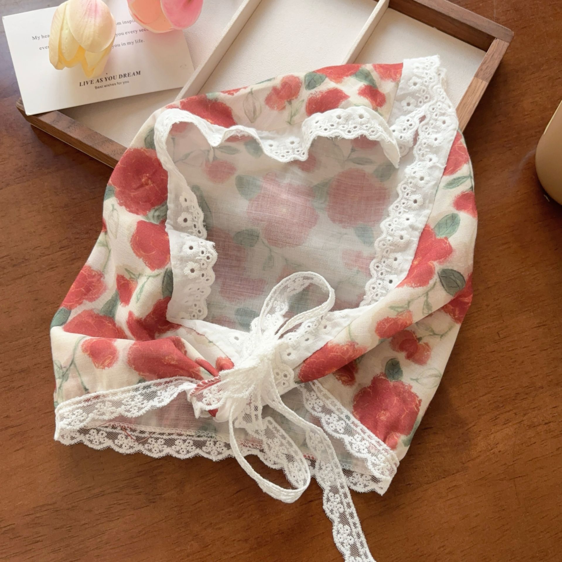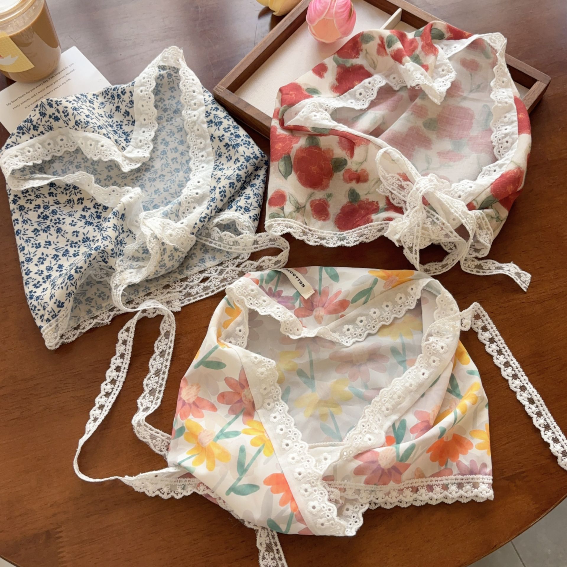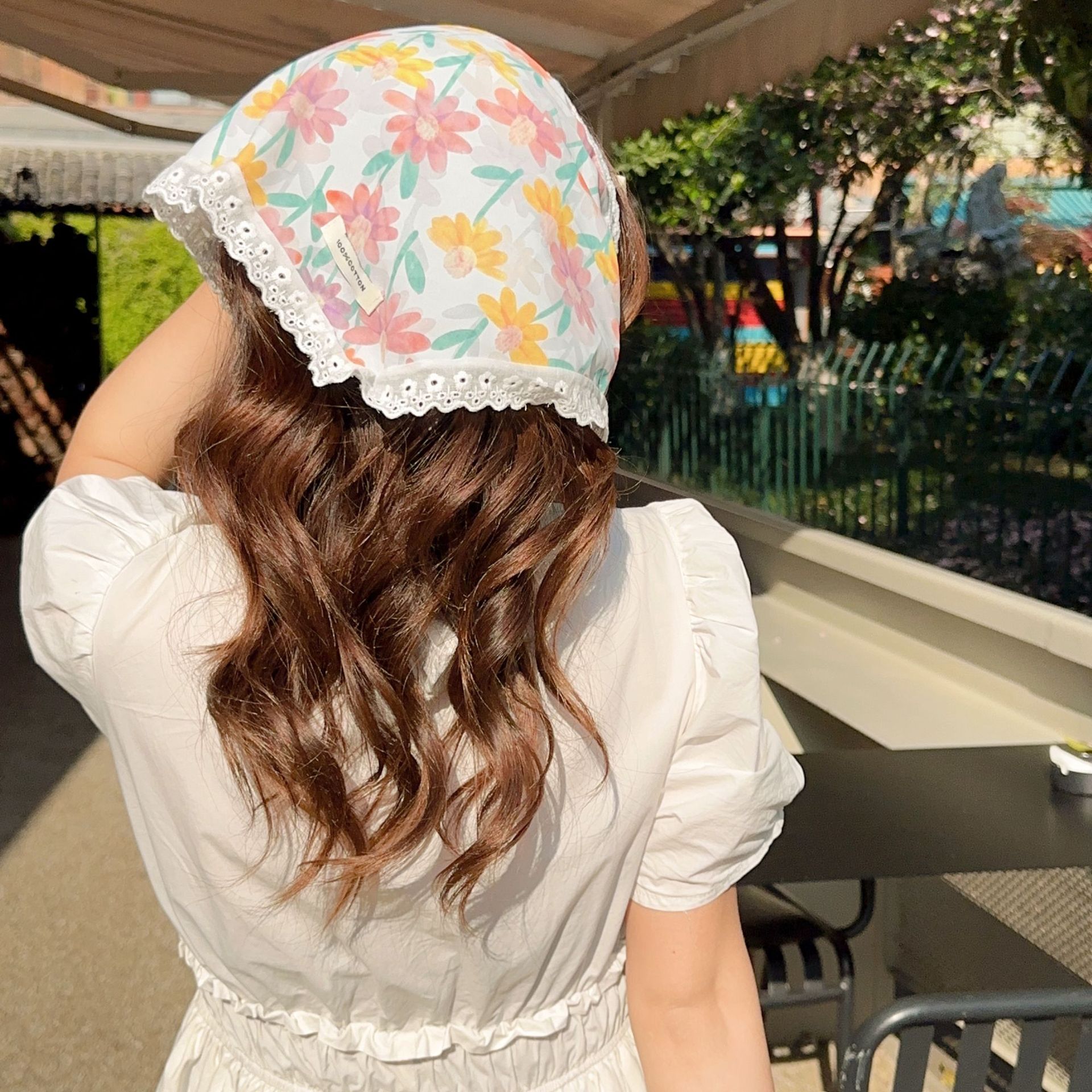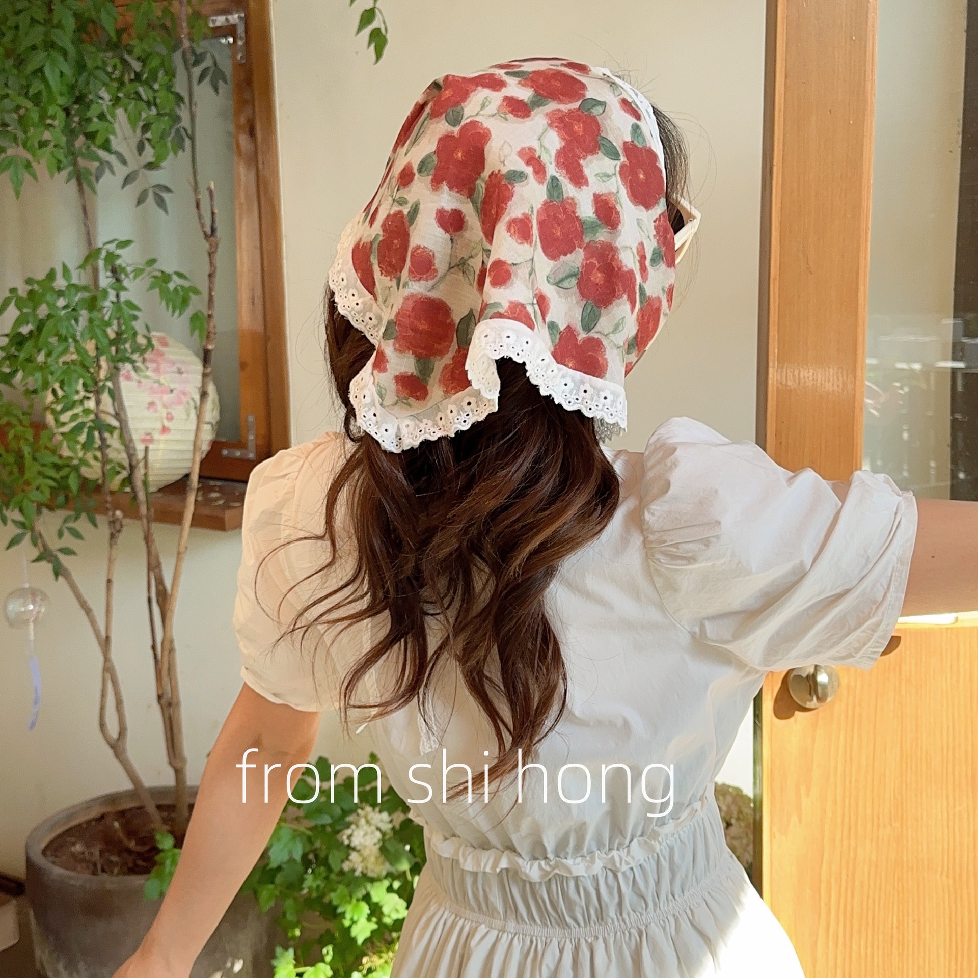 터번 여성의 여름 목회 꽃 삼각형 스카프 인터넷 축하 사진 장식 헤어 넥타이 실크 스카프 프렌치 레트로 테이프