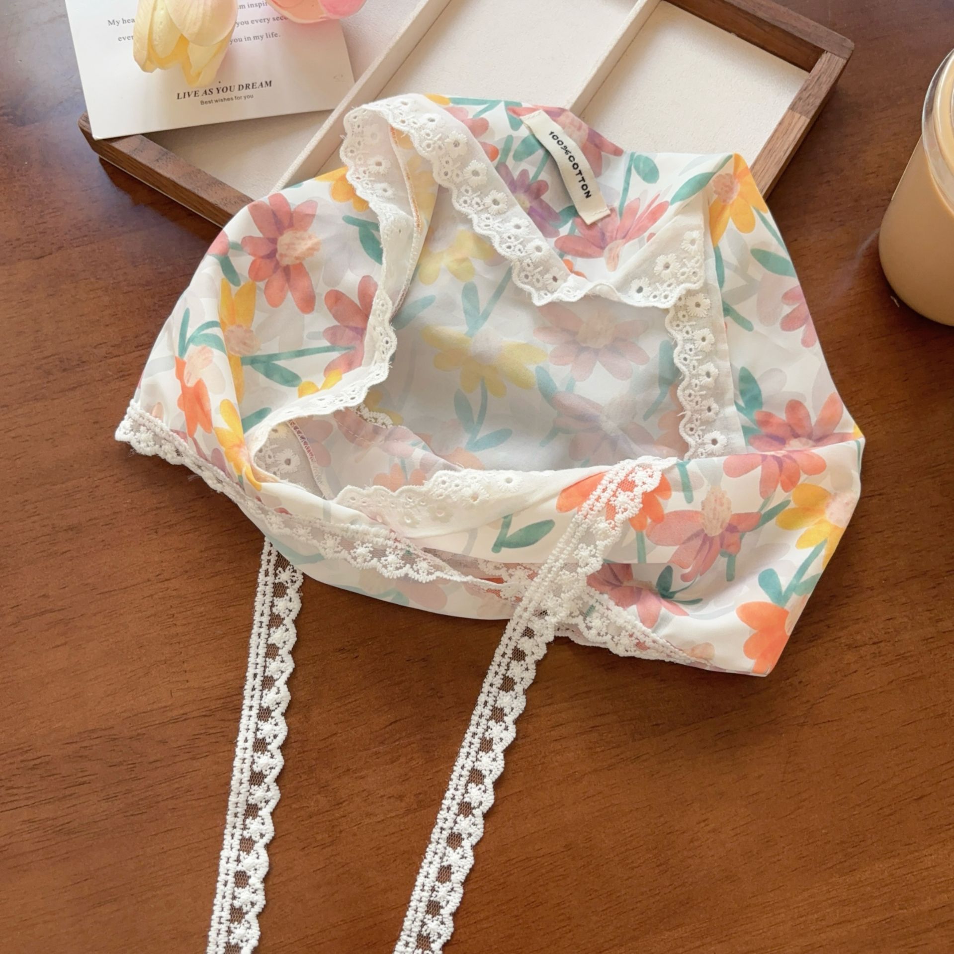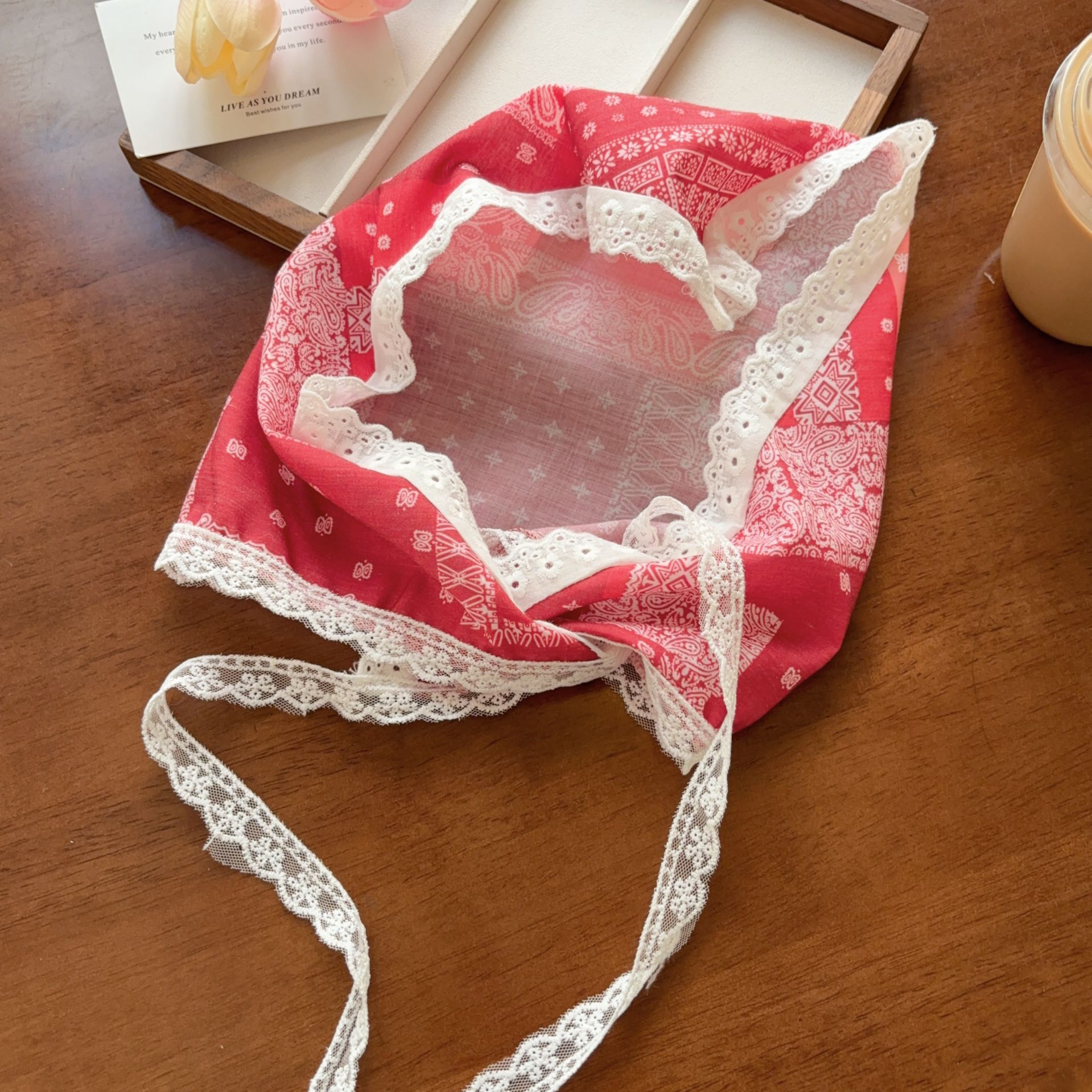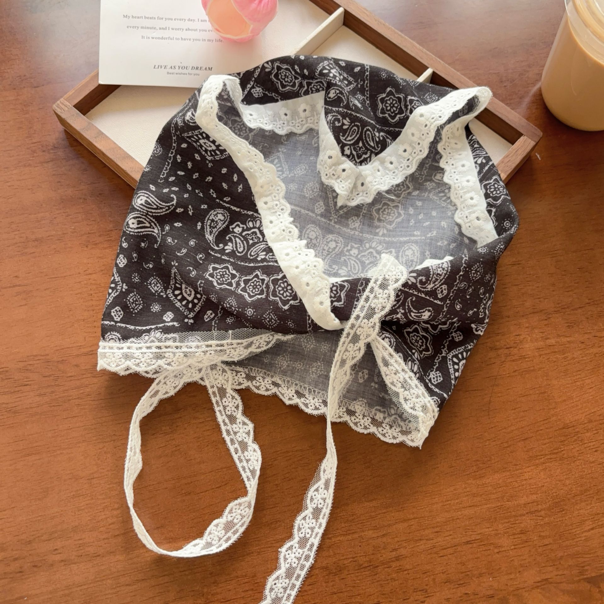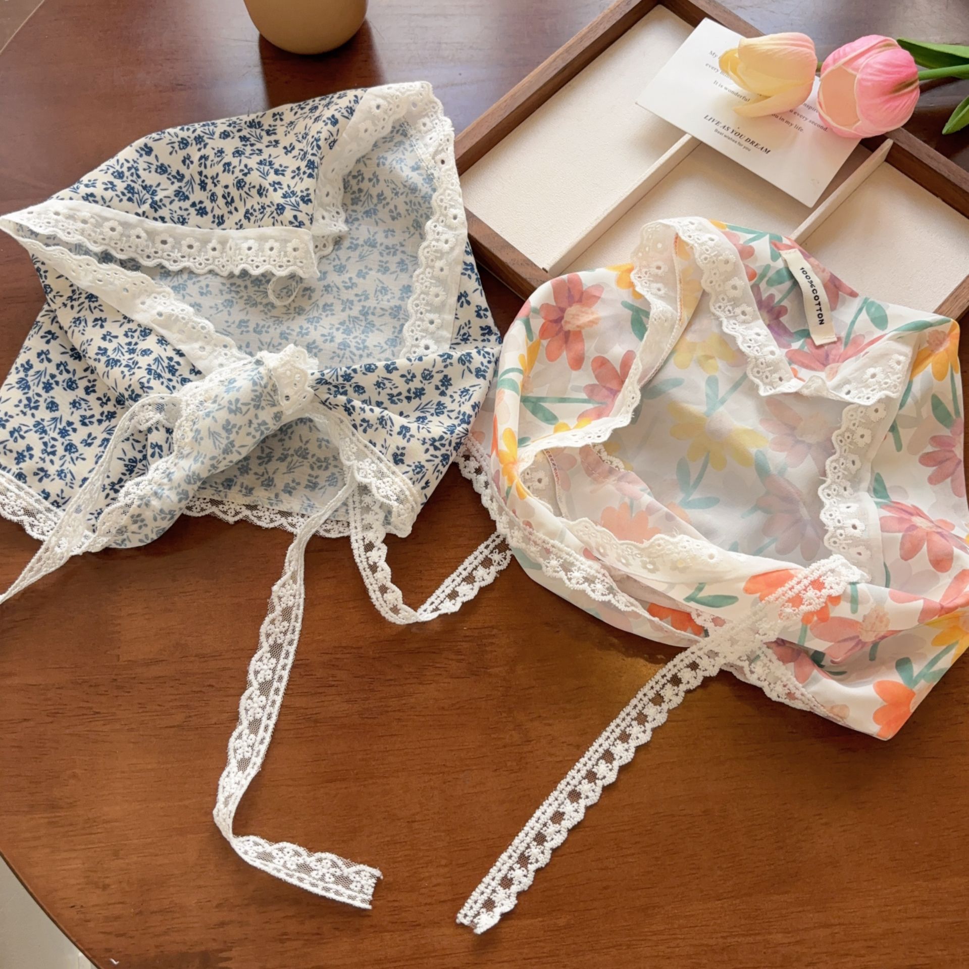 터번 여성의 여름 목회 꽃 삼각형 스카프 인터넷 축하 사진 장식 헤어 넥타이 실크 스카프 프렌치 레트로 테이프