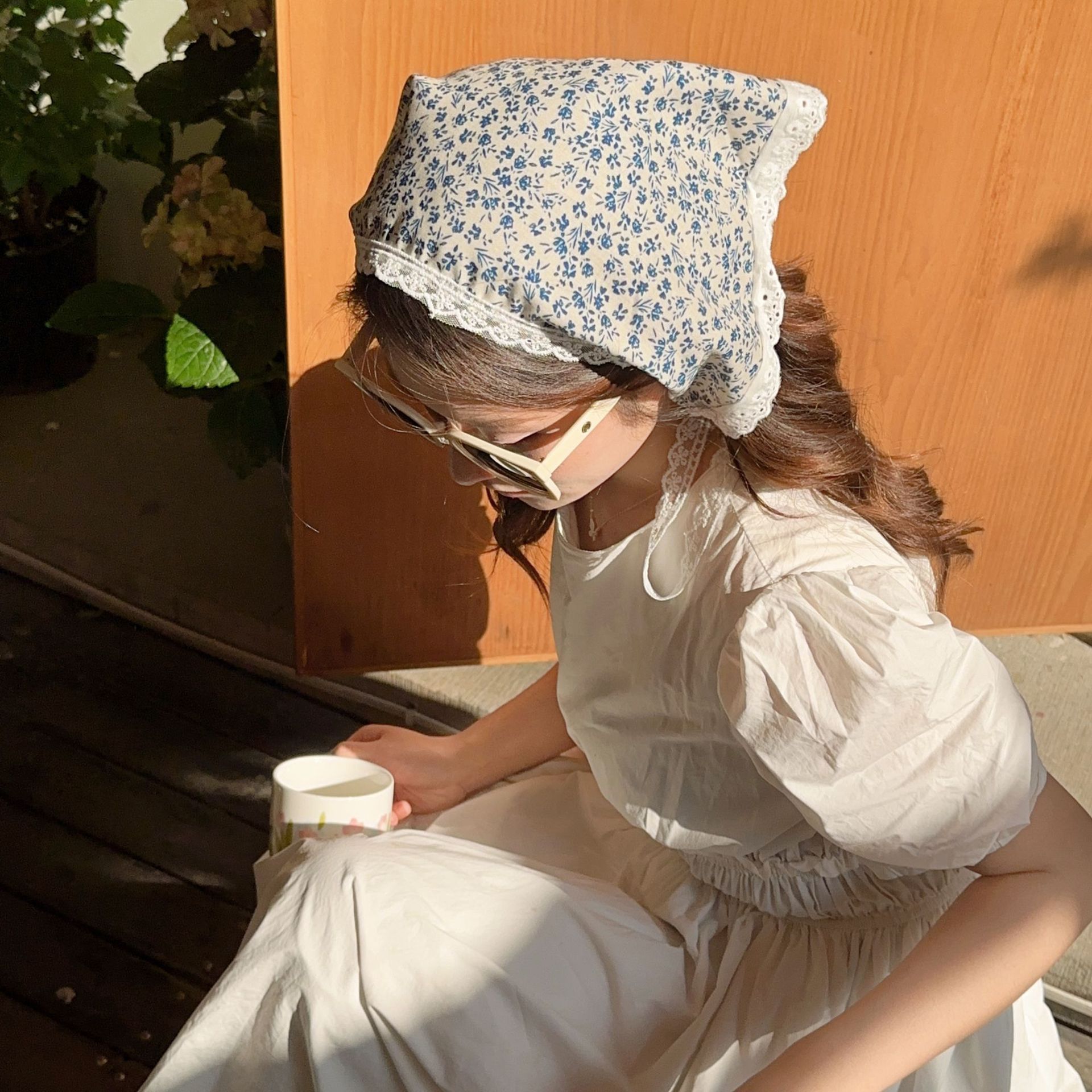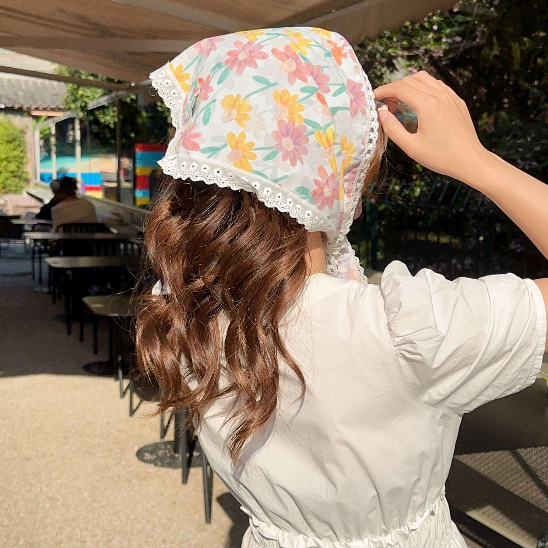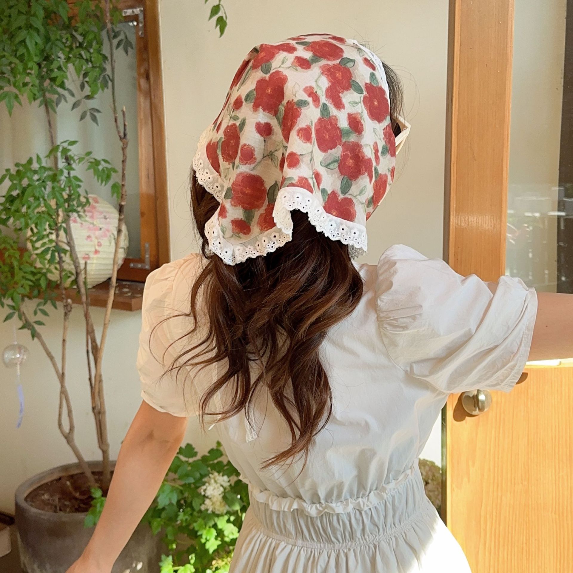터번 여성의 여름 목회 꽃 삼각형 스카프 인터넷 축하 사진 장식 헤어 넥타이 실크 스카프 프렌치 레트로 테이프스토어 가기
