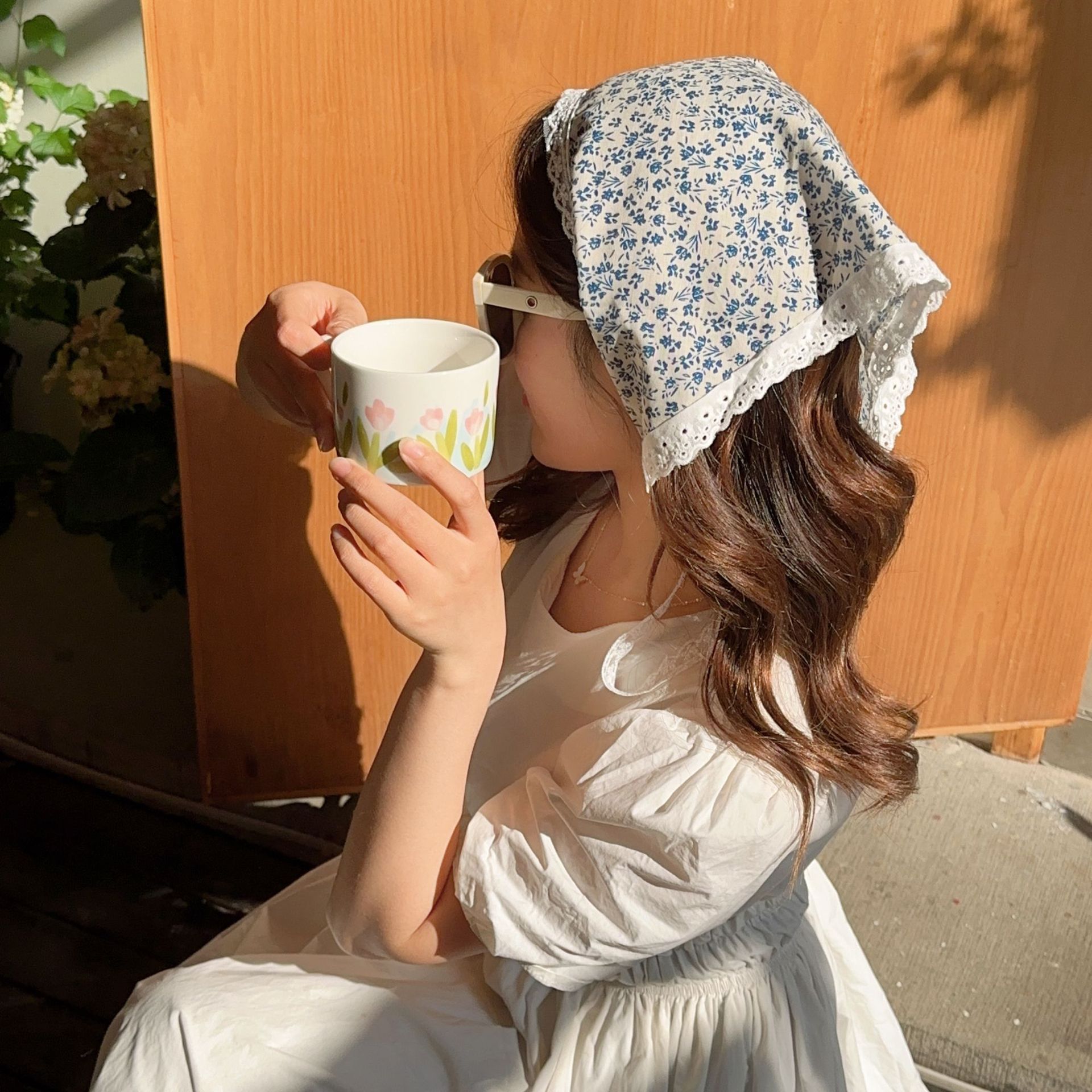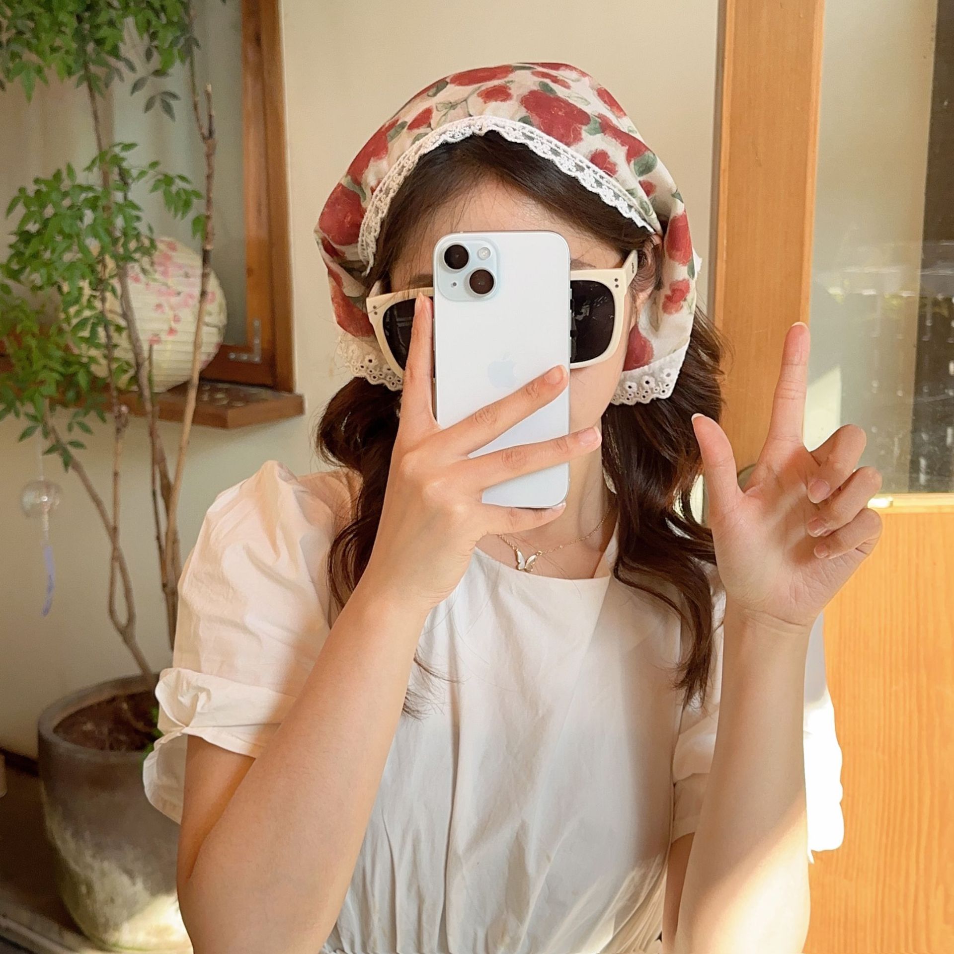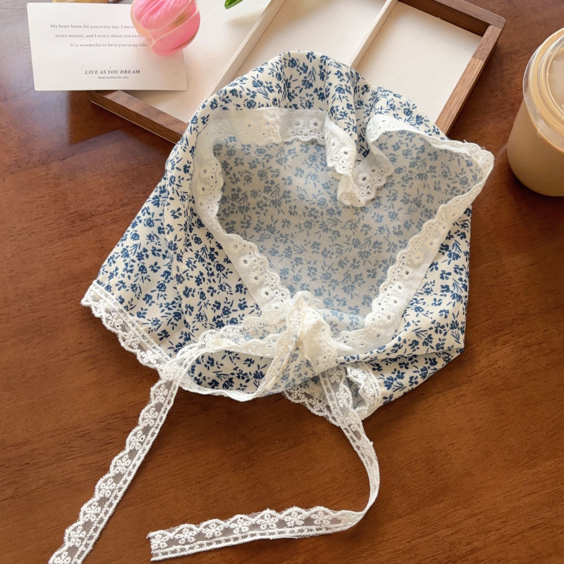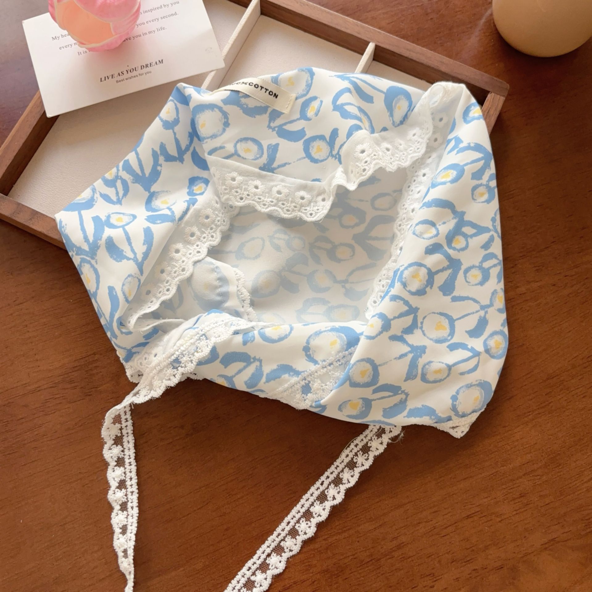 터번 여성의 여름 목회 꽃 삼각형 스카프 인터넷 축하 사진 장식 헤어 넥타이 실크 스카프 프렌치 레트로 테이프스토어 가기