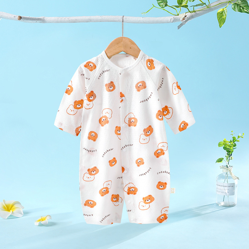 아기의 점프 수트 봄과 여름 얇은 신생아 옷 순면 클래스 긴팔 에어컨 옷 아기의 잠옷