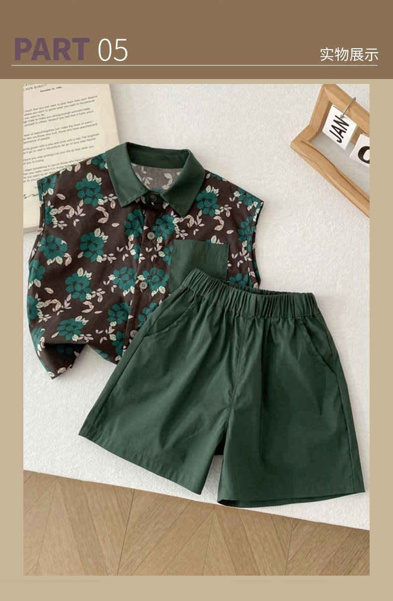 어린이 조끼 세트 2024 새로운 여름 아기 민소매 옷 어린이 의류 어린이 유행 캐주얼 투피스 세트스토어 가기