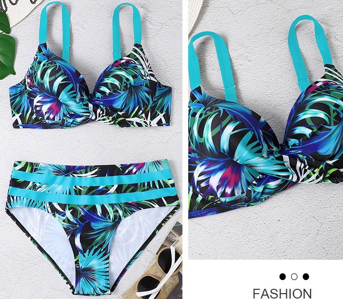 2024 새로운 유럽과 미국의 국경 간 작은 가슴 모임 꽃 수영복 아마존 AliExpress 폭발 비키니 수영복