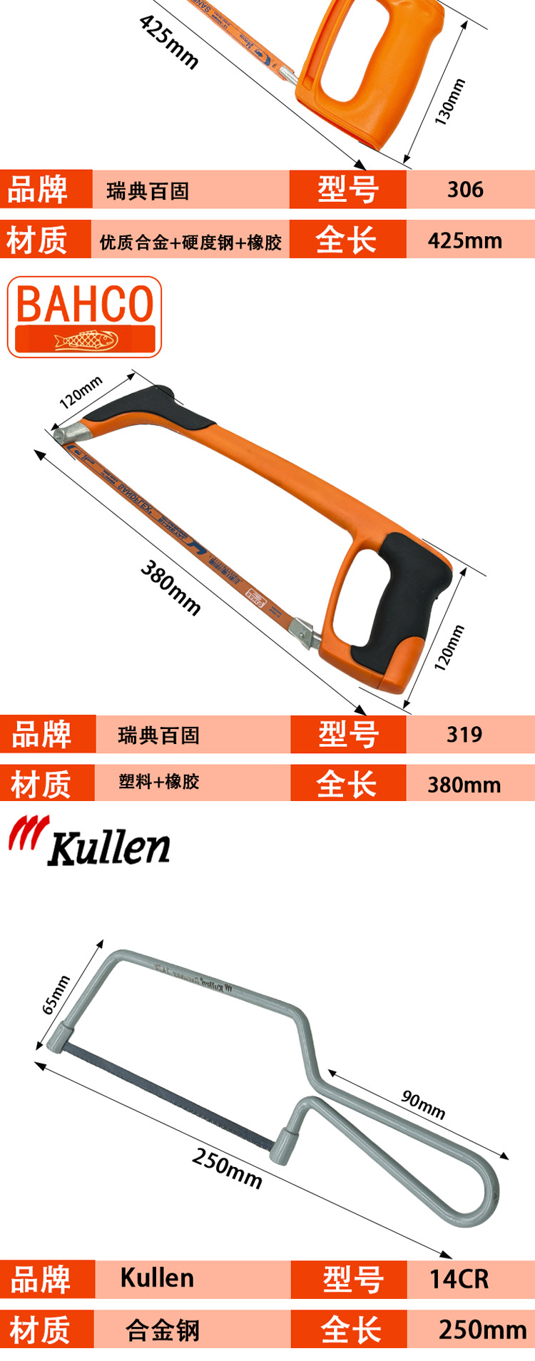 스웨덴 BAHCO Baigu 쇠톱 프레임 수입 알루미늄 합금 수동 본 물고기 마크 본 활 12 인치 톱 306/319 #