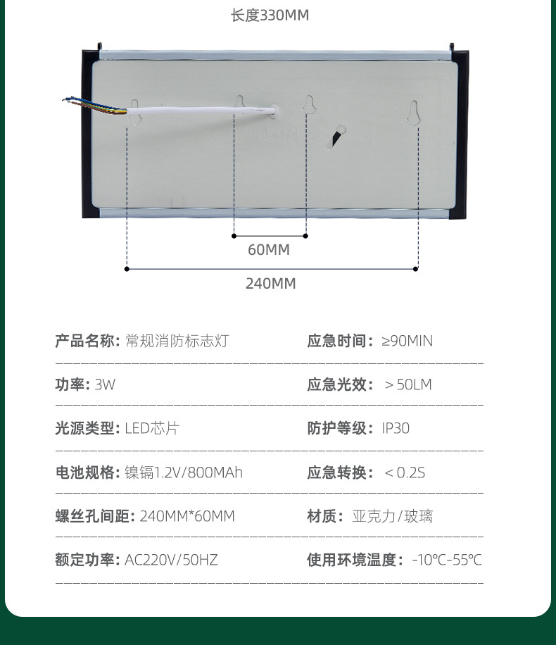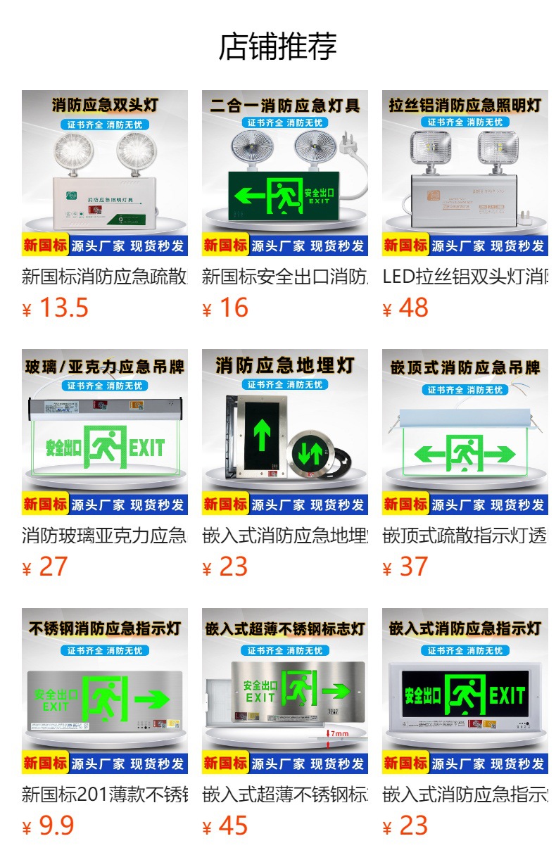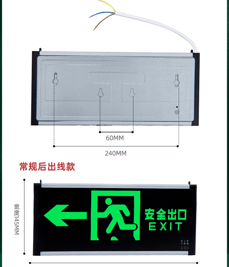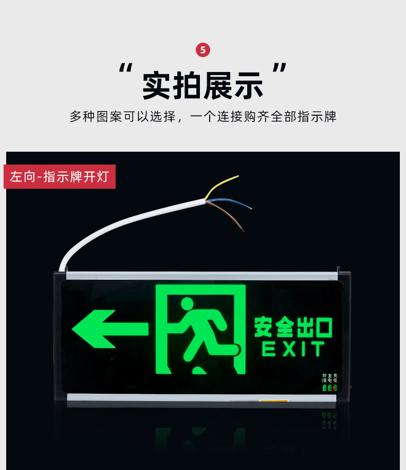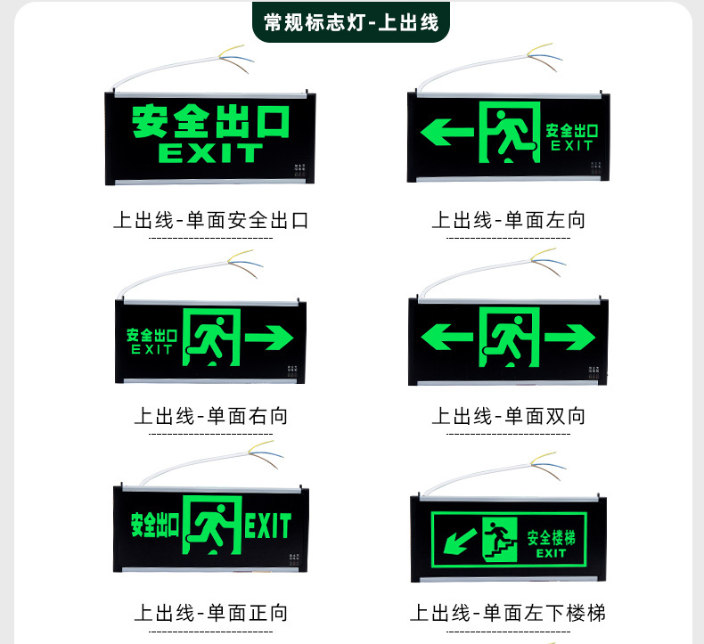 화재 비상 표시기 빛 안전 출구 표지판 LED 유리 아크릴 정전 유도 탈출 표지판스토어 가기