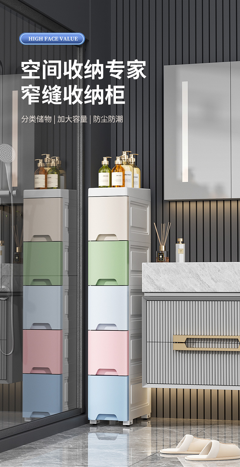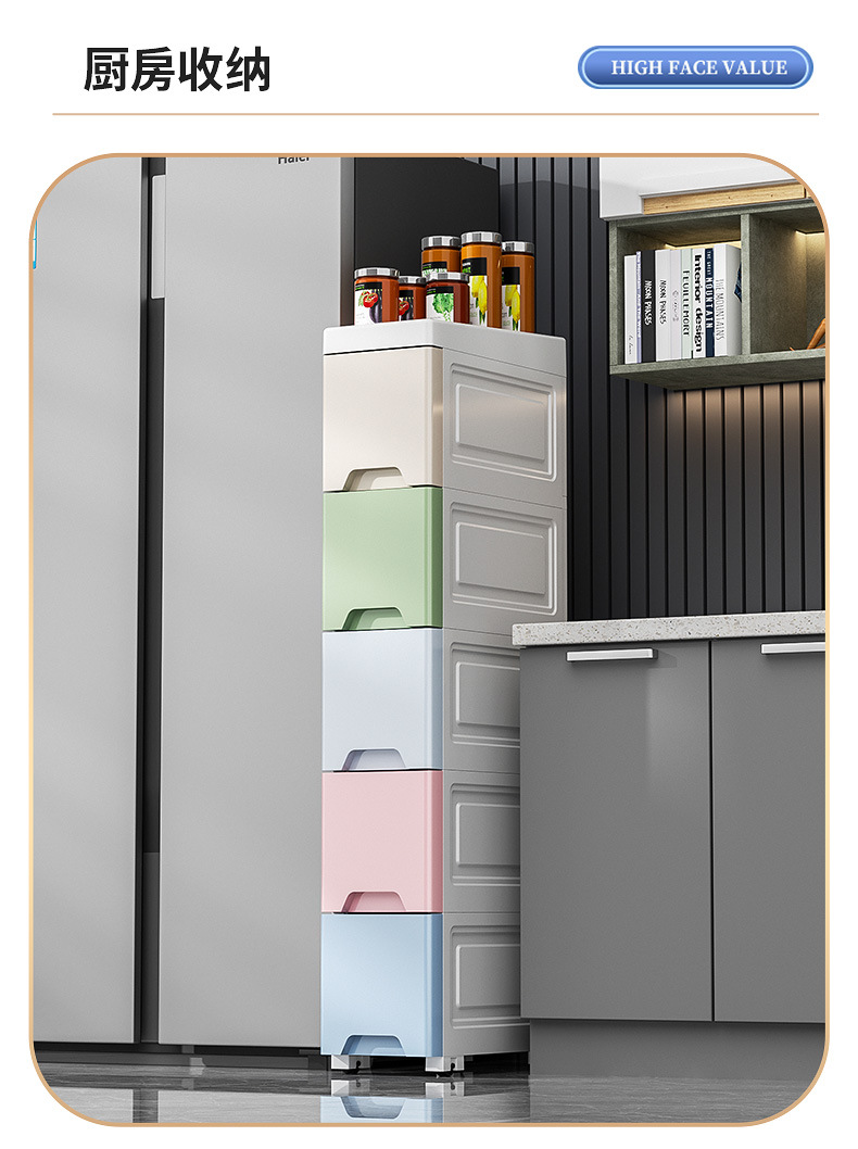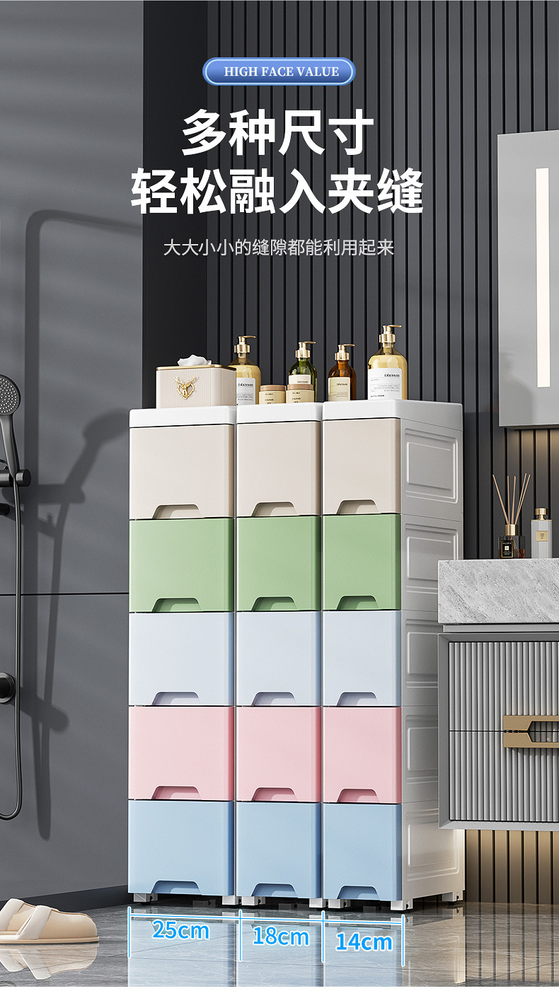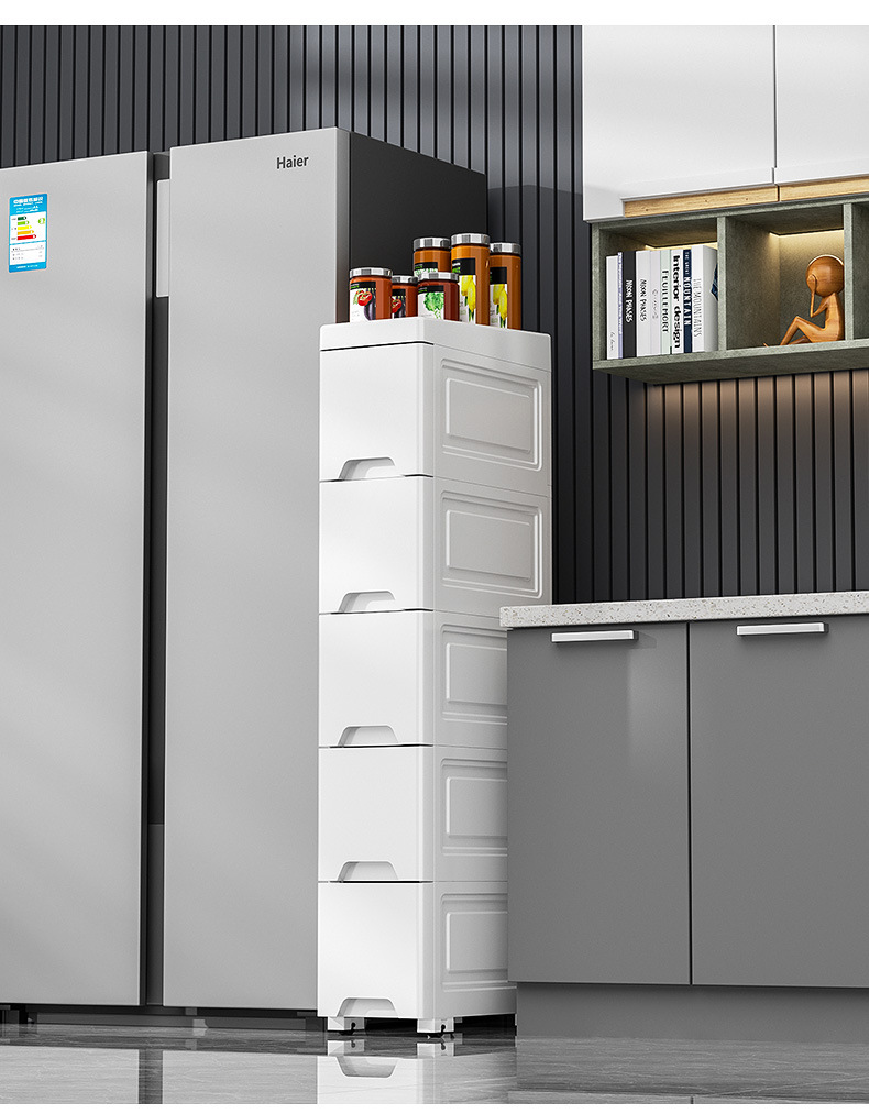 두꺼운 25 넓은 슈퍼 좁은 간격 저장 캐비닛 주방 저장 캐비닛 좁은 캐비닛 플라스틱 화장실 서랍 유형 저장 캐비닛