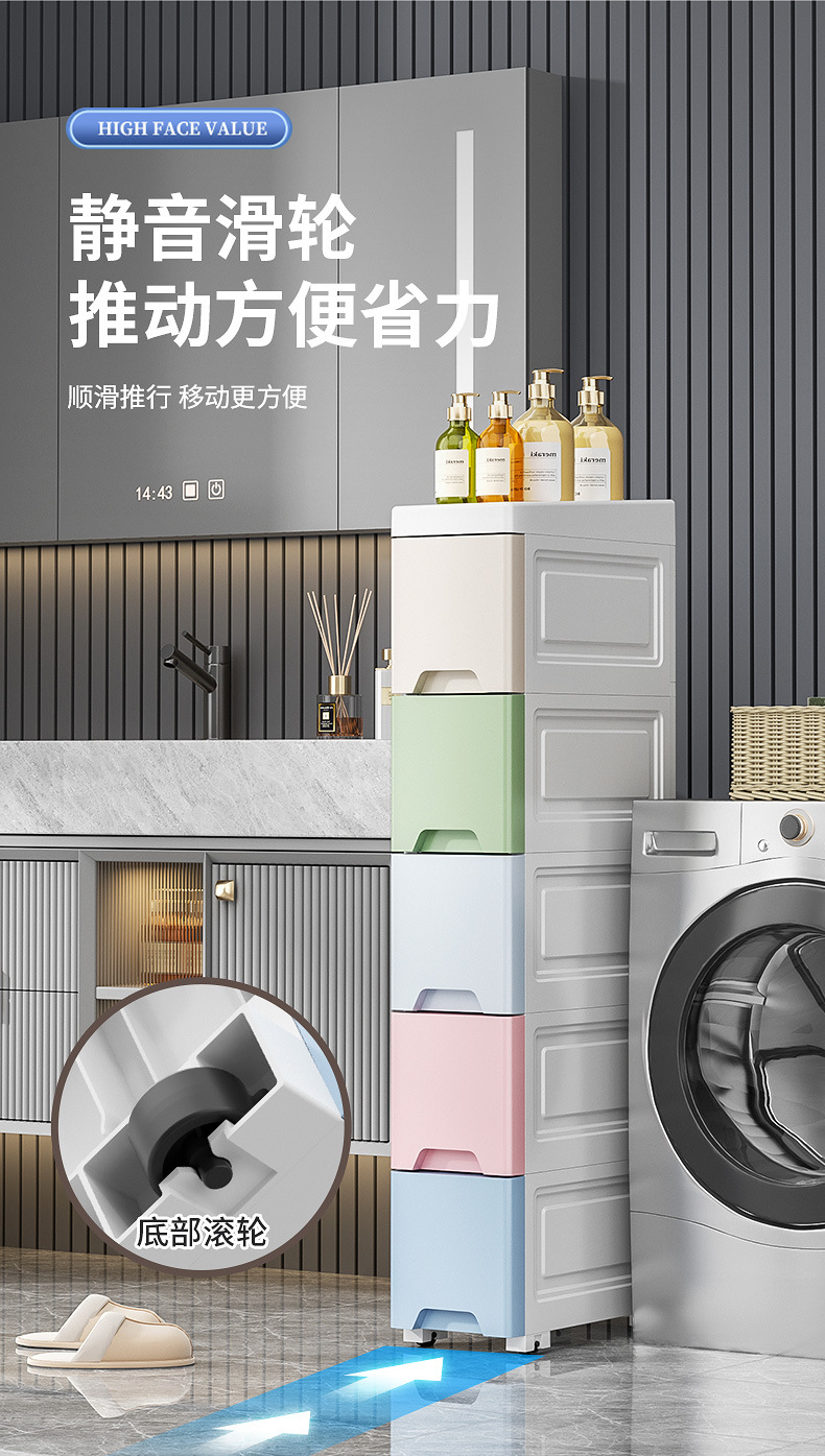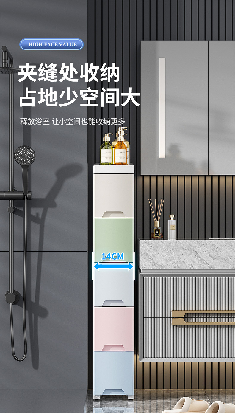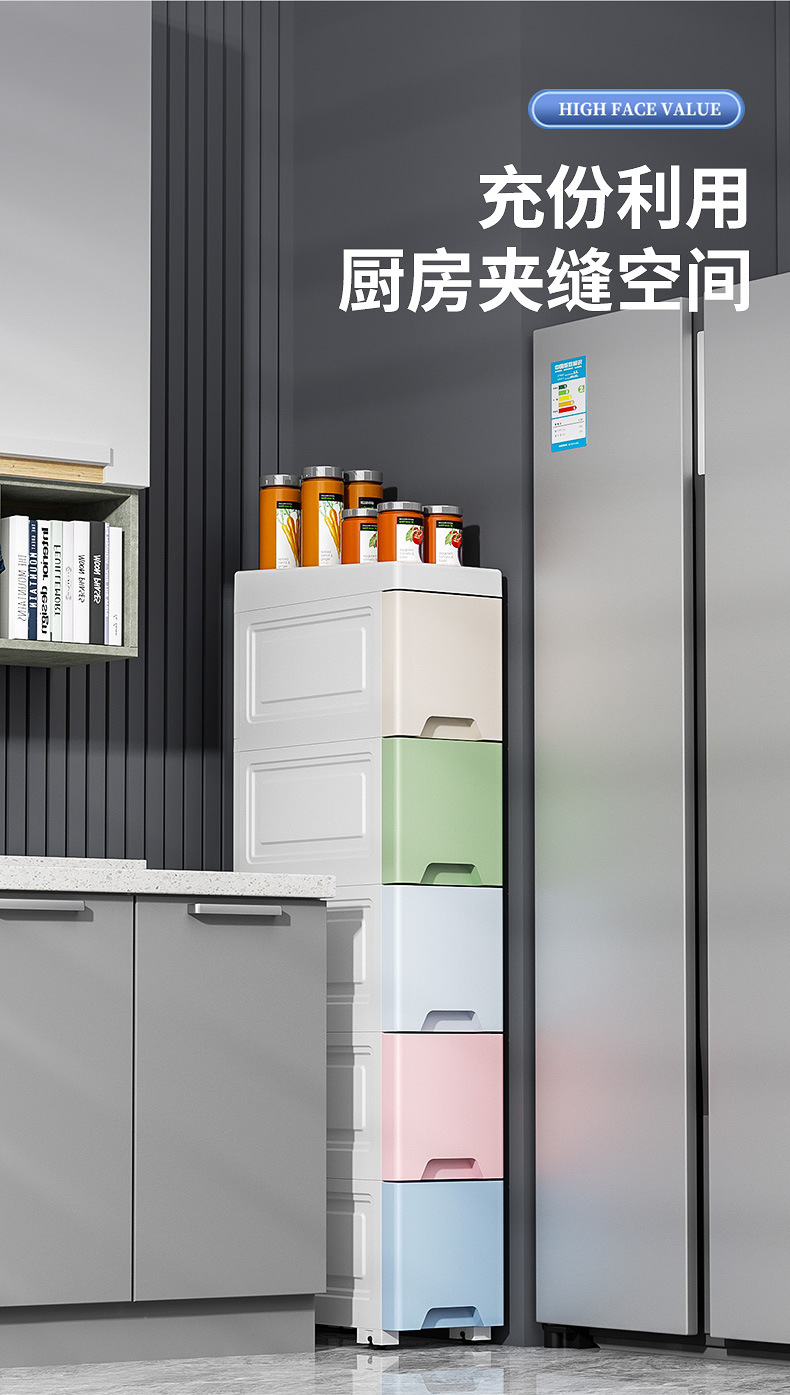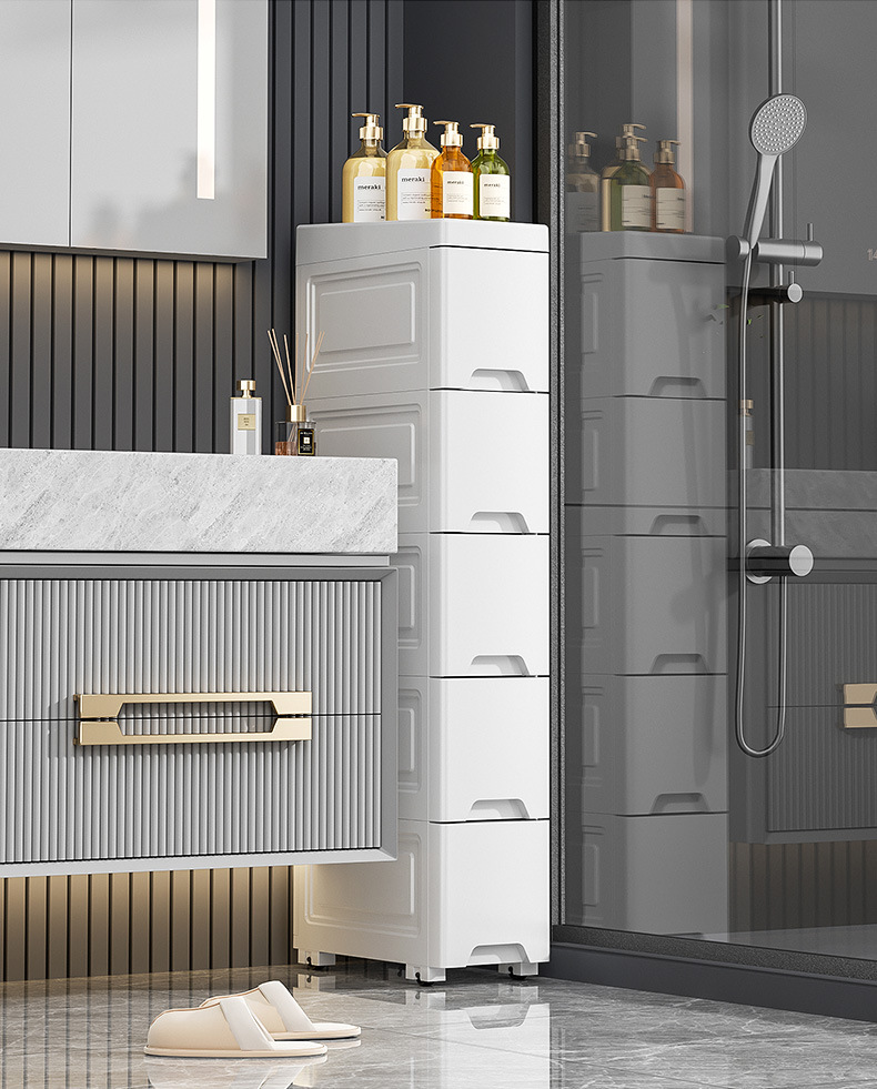 두꺼운 25 넓은 슈퍼 좁은 간격 저장 캐비닛 주방 저장 캐비닛 좁은 캐비닛 플라스틱 화장실 서랍 유형 저장 캐비닛
