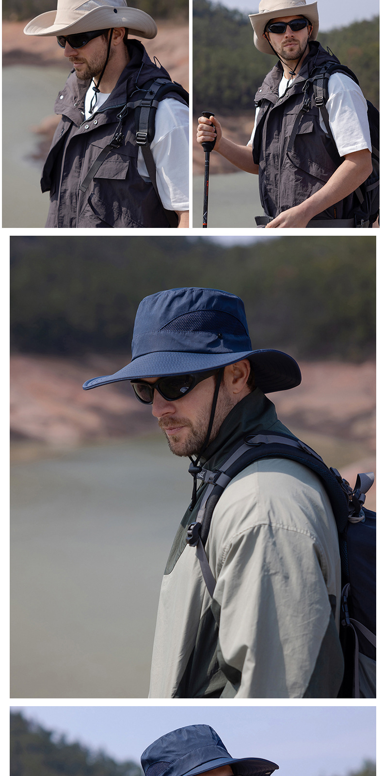 국경 간 봄과 여름 선 스크린 모자 남자 야외 낚시 등산 어부 모자 통기성 큰 브림 태양 모자