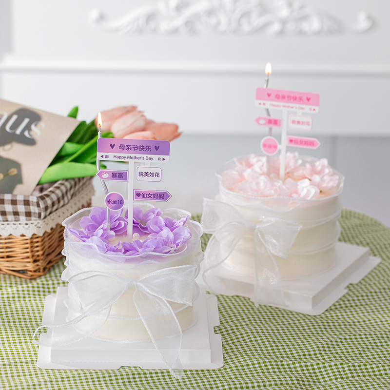 어머니의 날 케이크 장식 도로 보드 플러그인 피쉬 테일 원사 가장자리 엄마 해피 홀리데이 원피스 업 바이올렛 장식품