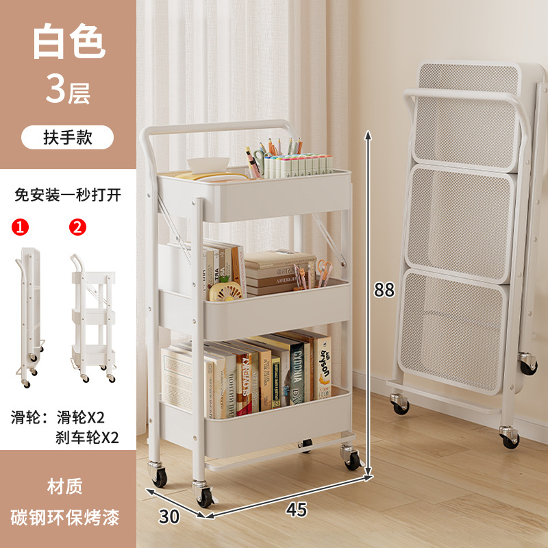 이동식 스토리지 랙 멀티 레이어 구성 선반 접이식 스토리지 랙 옆에 책상 주방 욕실 보관 트롤리
