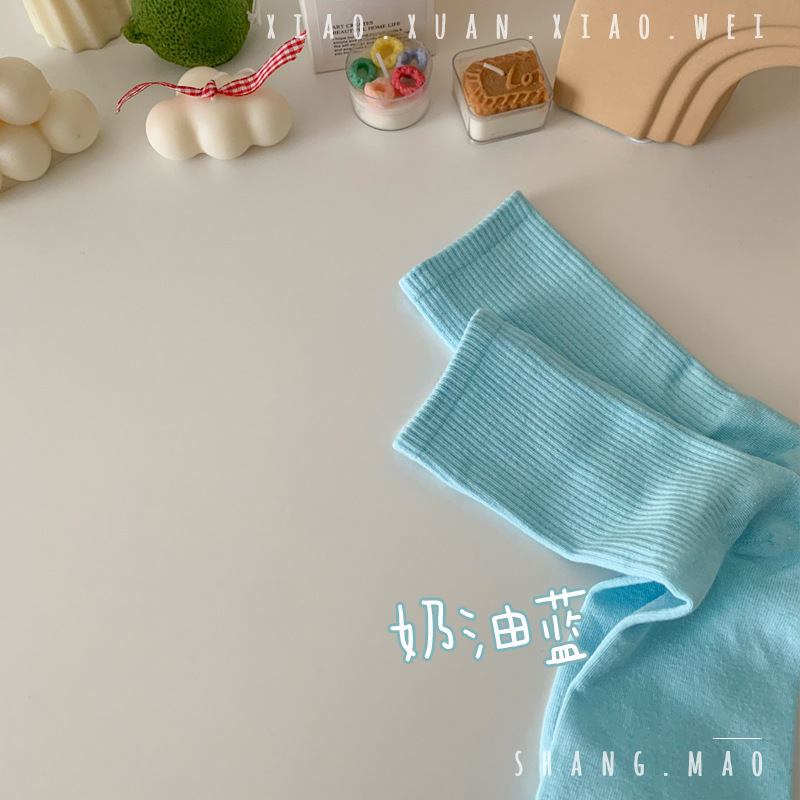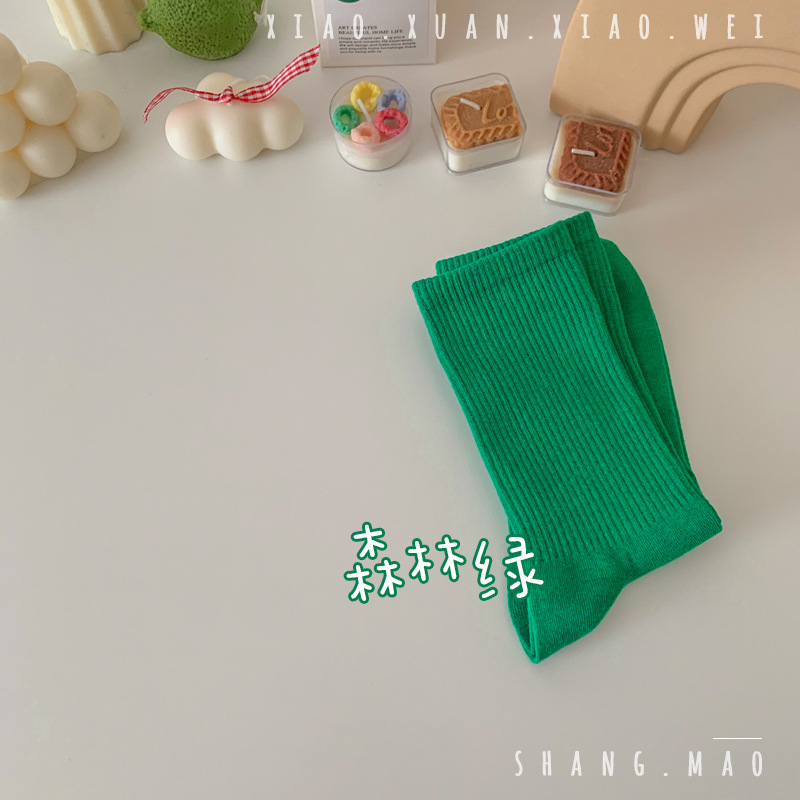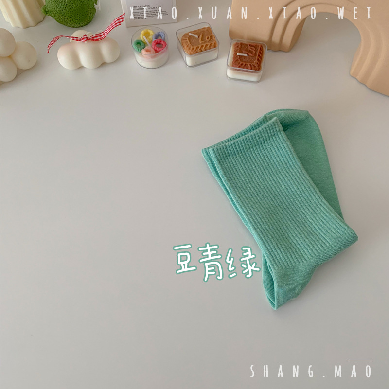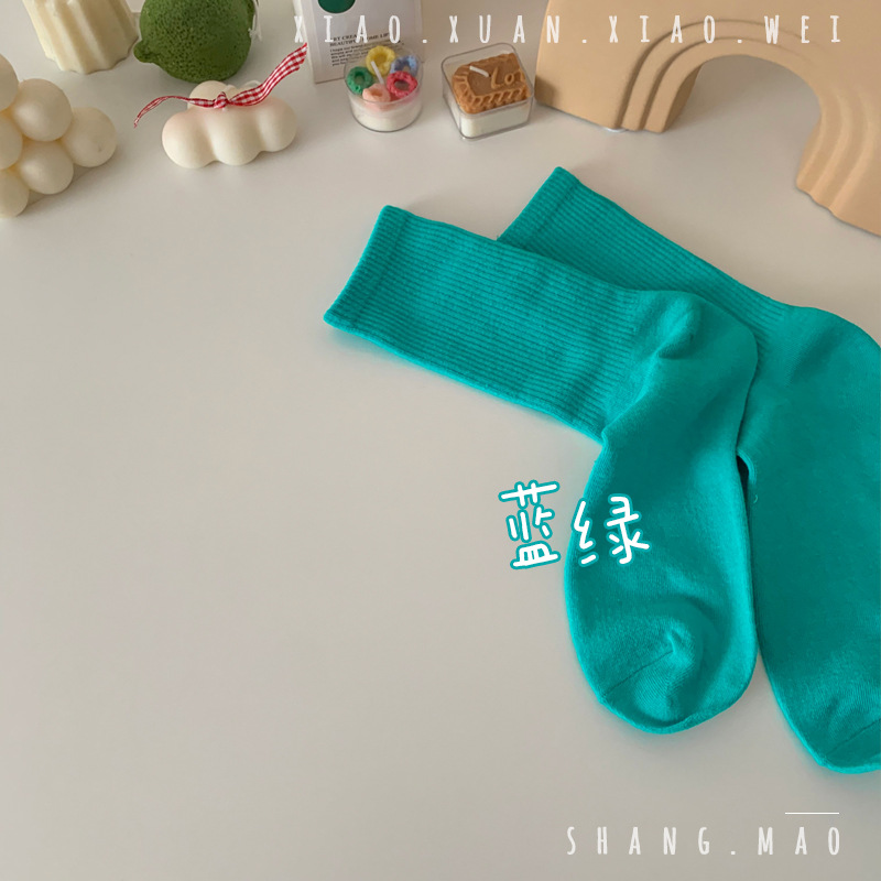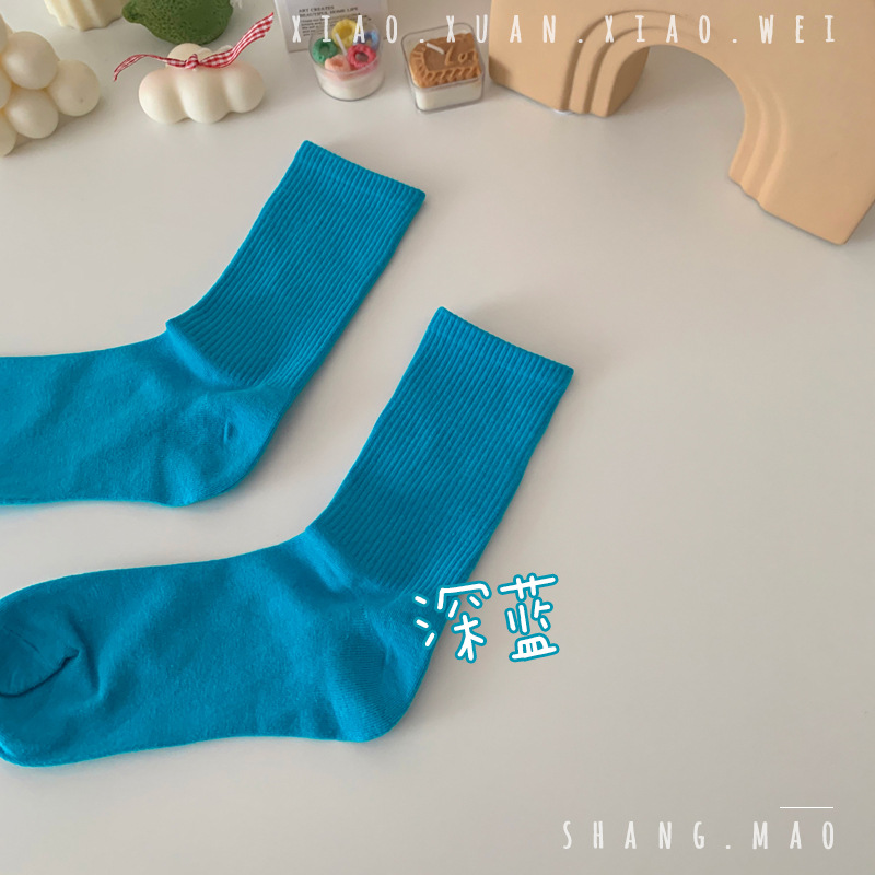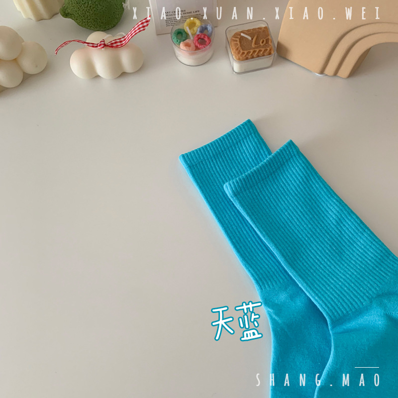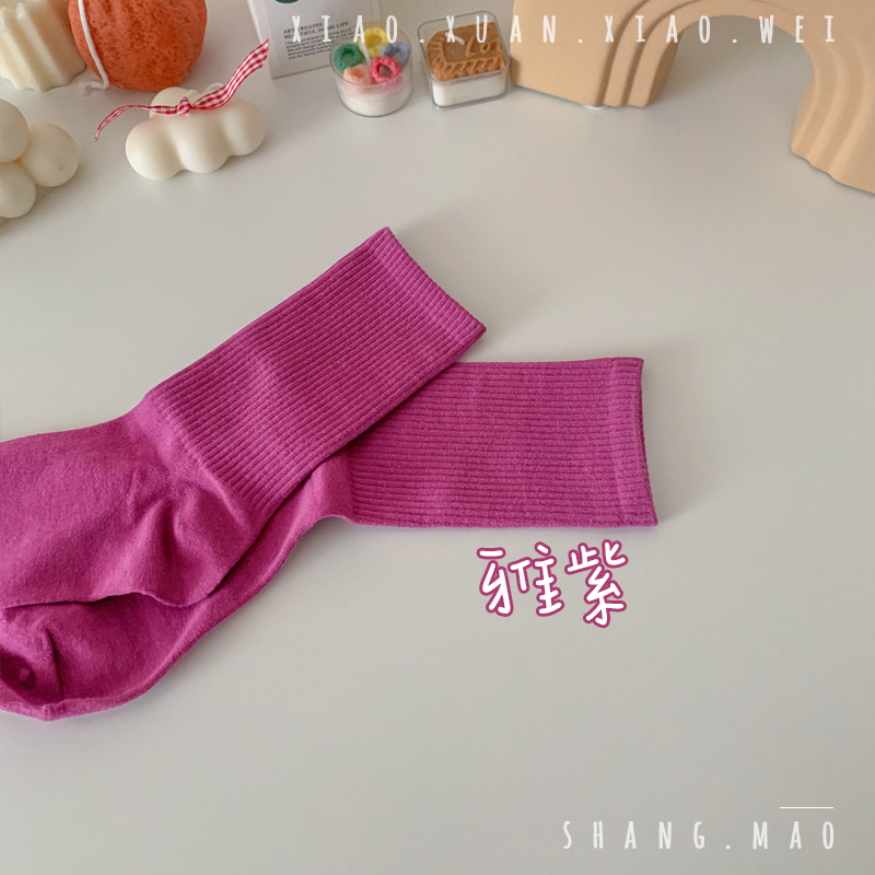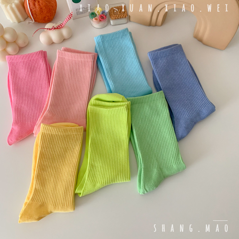 캔디 컬러 양말 여성용 Ins 트렌디 한 높은 고무 솔리드 컬러 미드 양말 다채로운 플랫 코튼 통기성 외부 착용 스택 양말스토어 가기