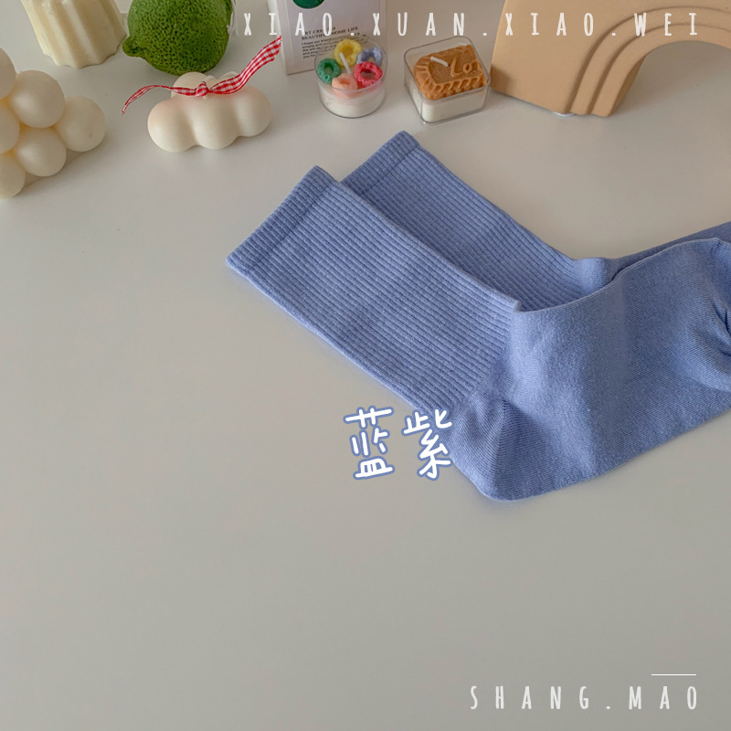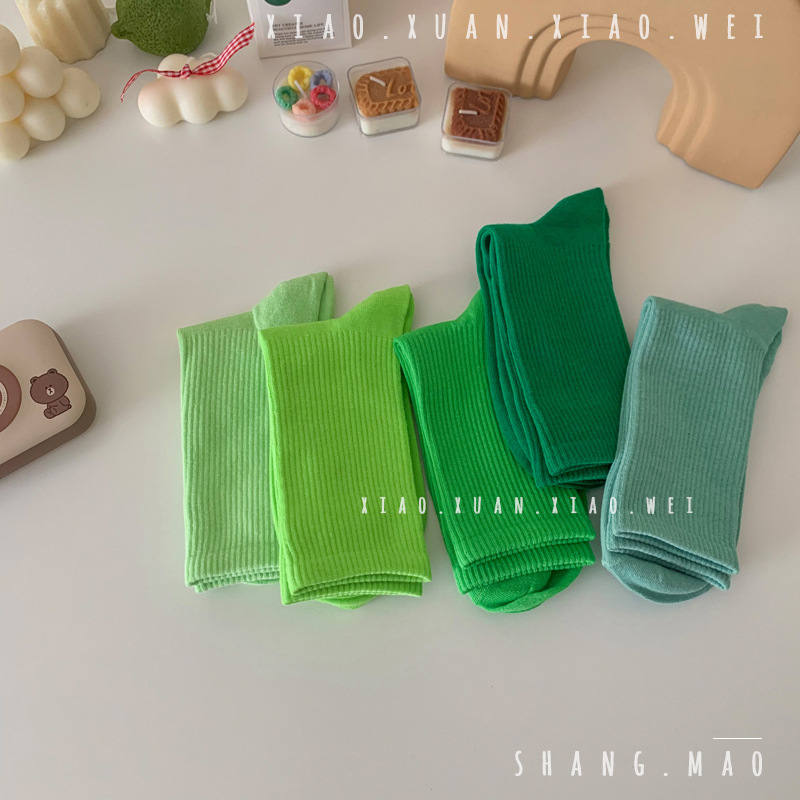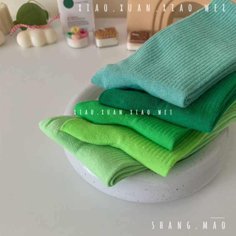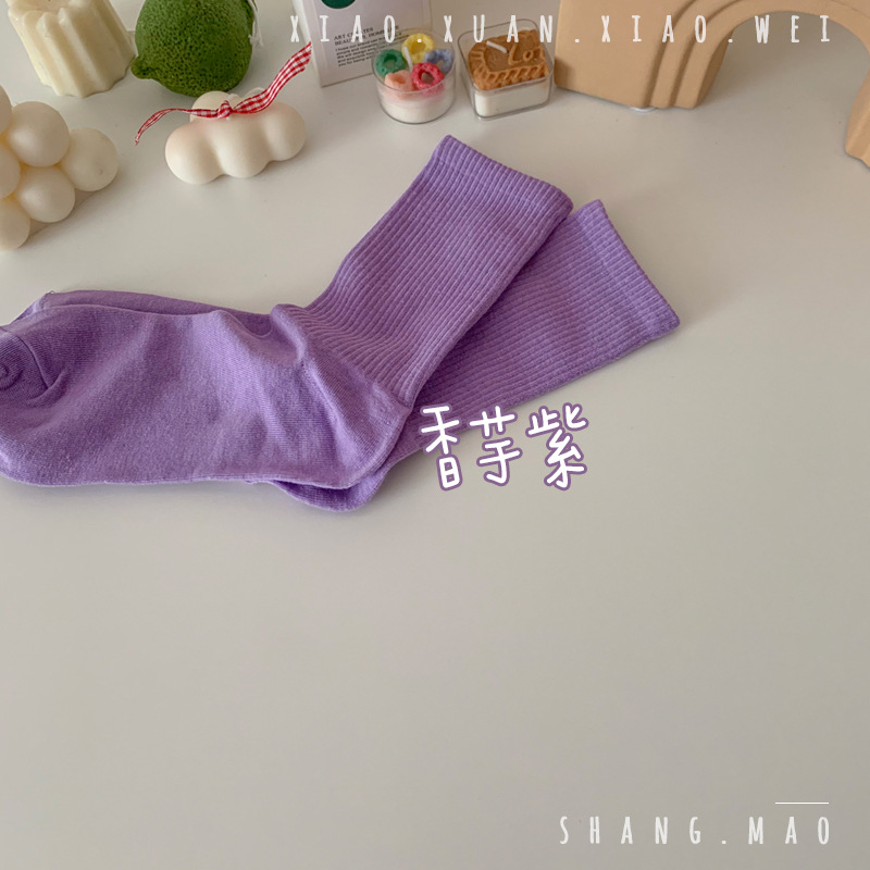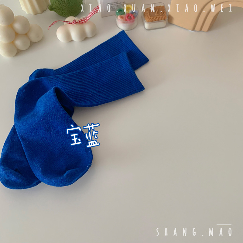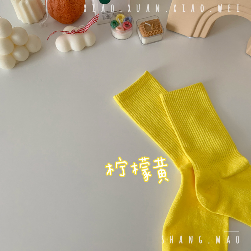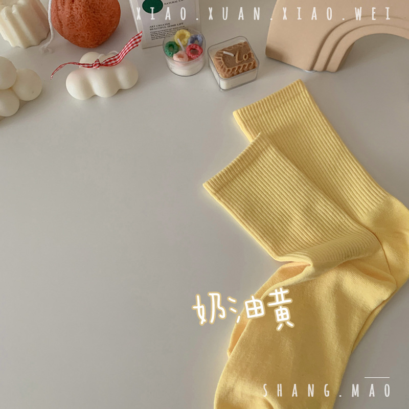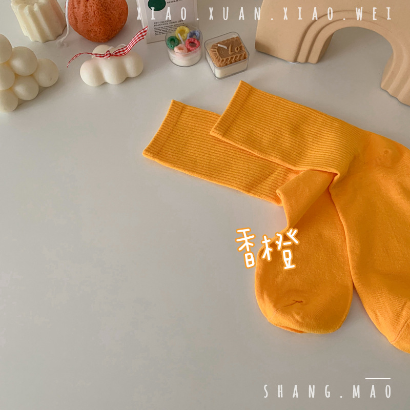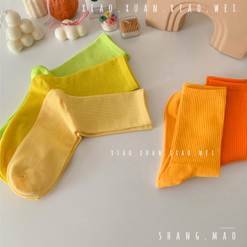 캔디 컬러 양말 여성용 Ins 트렌디 한 높은 고무 솔리드 컬러 미드 양말 다채로운 플랫 코튼 통기성 외부 착용 스택 양말스토어 가기