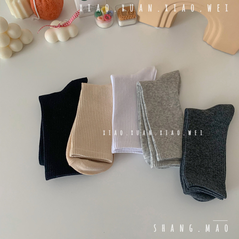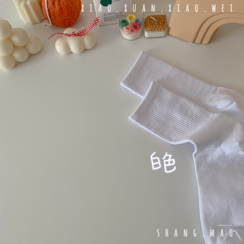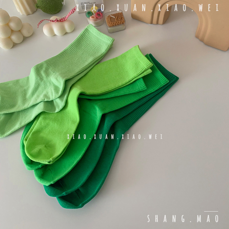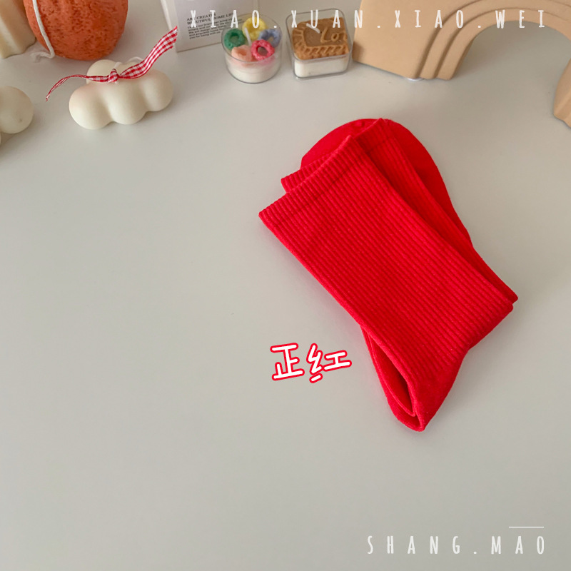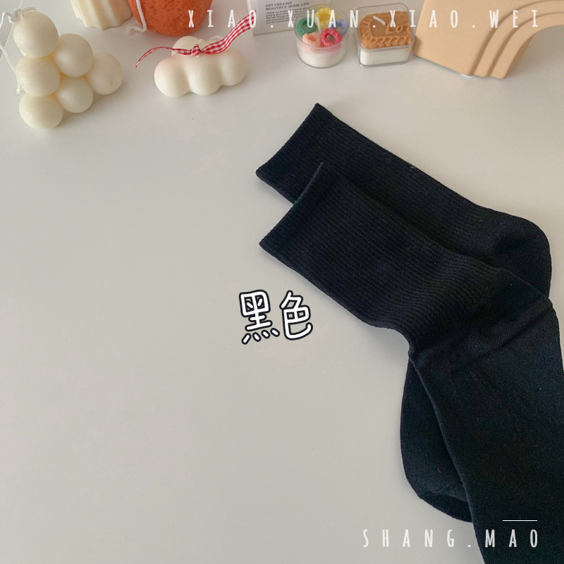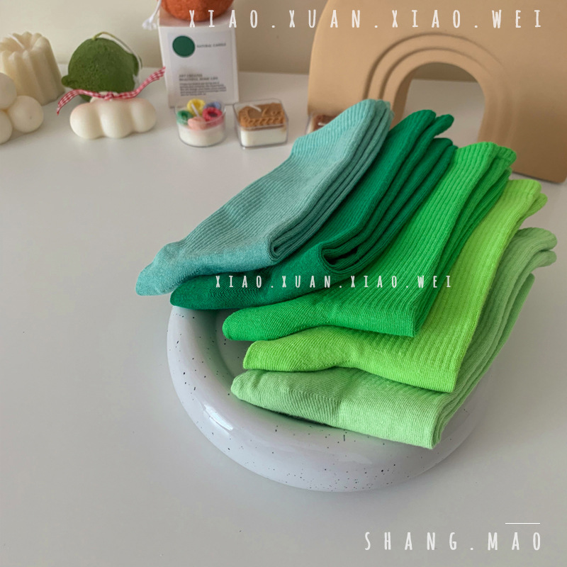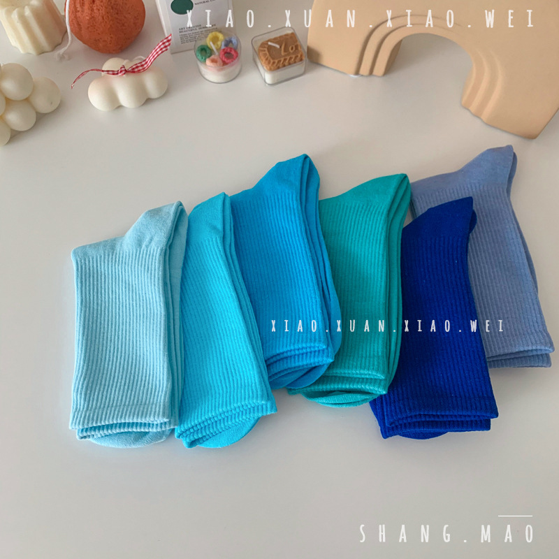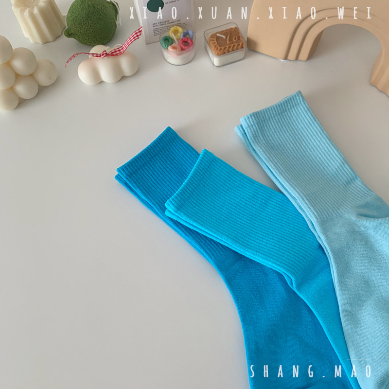 캔디 컬러 양말 여성용 Ins 트렌디 한 높은 고무 솔리드 컬러 미드 양말 다채로운 플랫 코튼 통기성 외부 착용 스택 양말스토어 가기