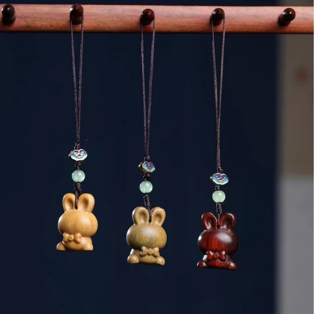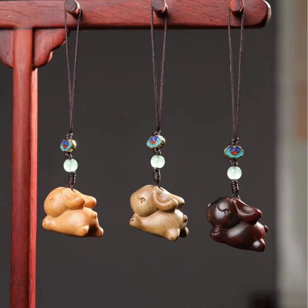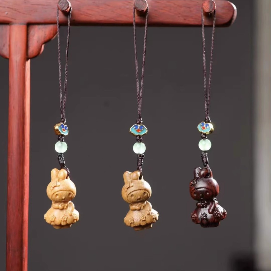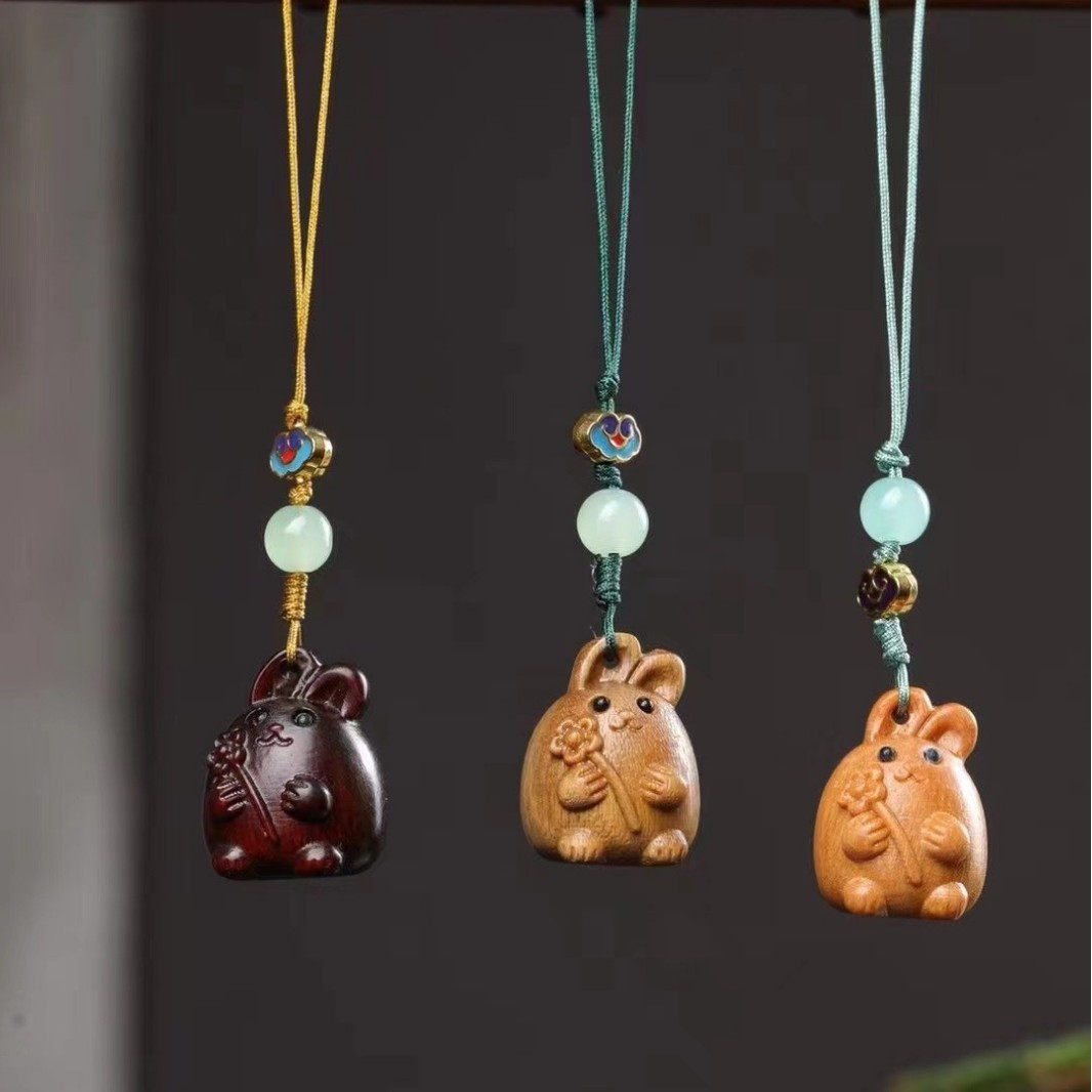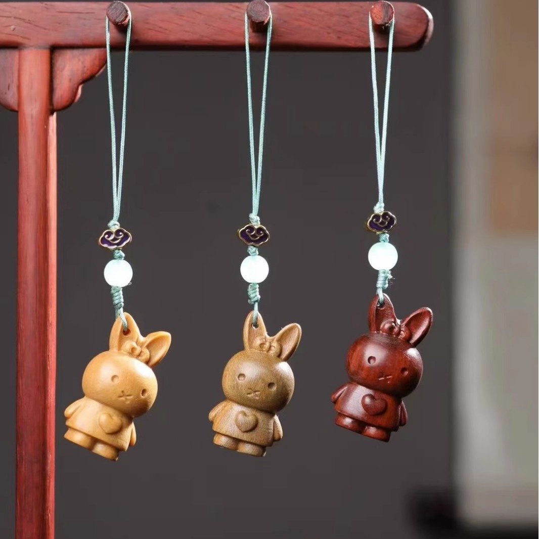 녹색 샌달 우드 토끼 가방 매달려 장식품 빨간 샌달 우드 신 부 휴대 전화 펜던트 DIY 만화 행운의 키 체인 조롱박 보석스토어 가기