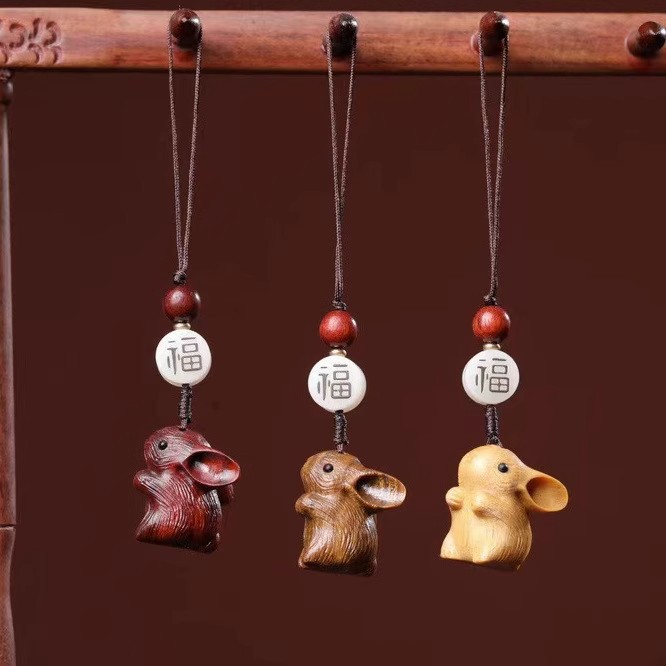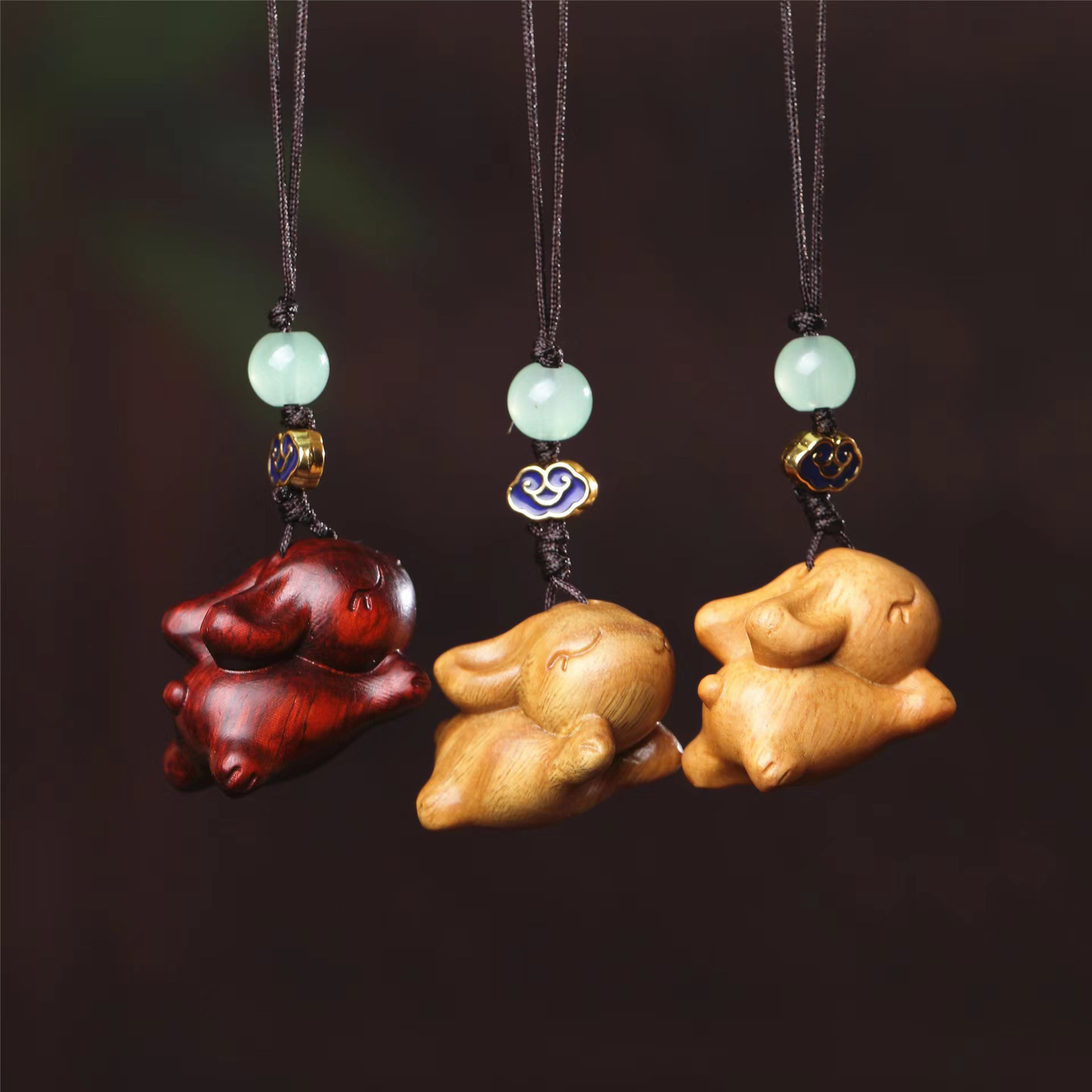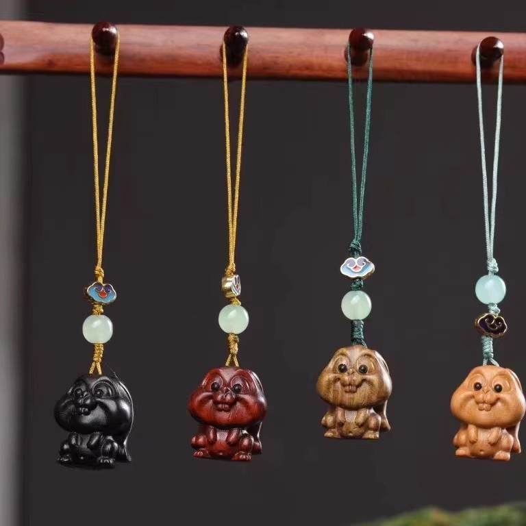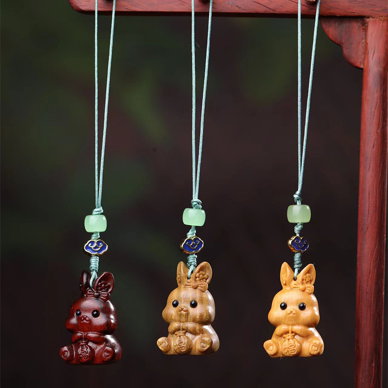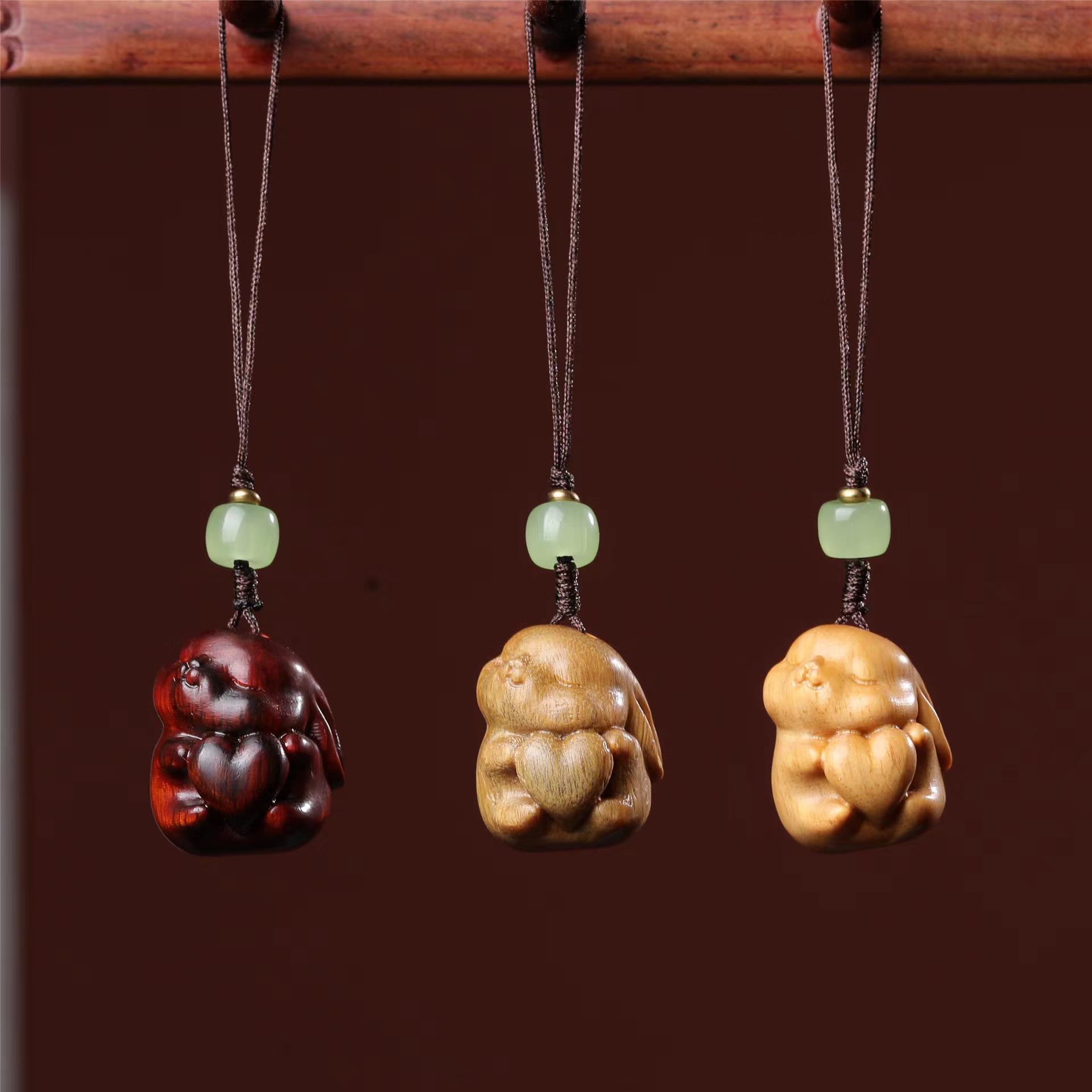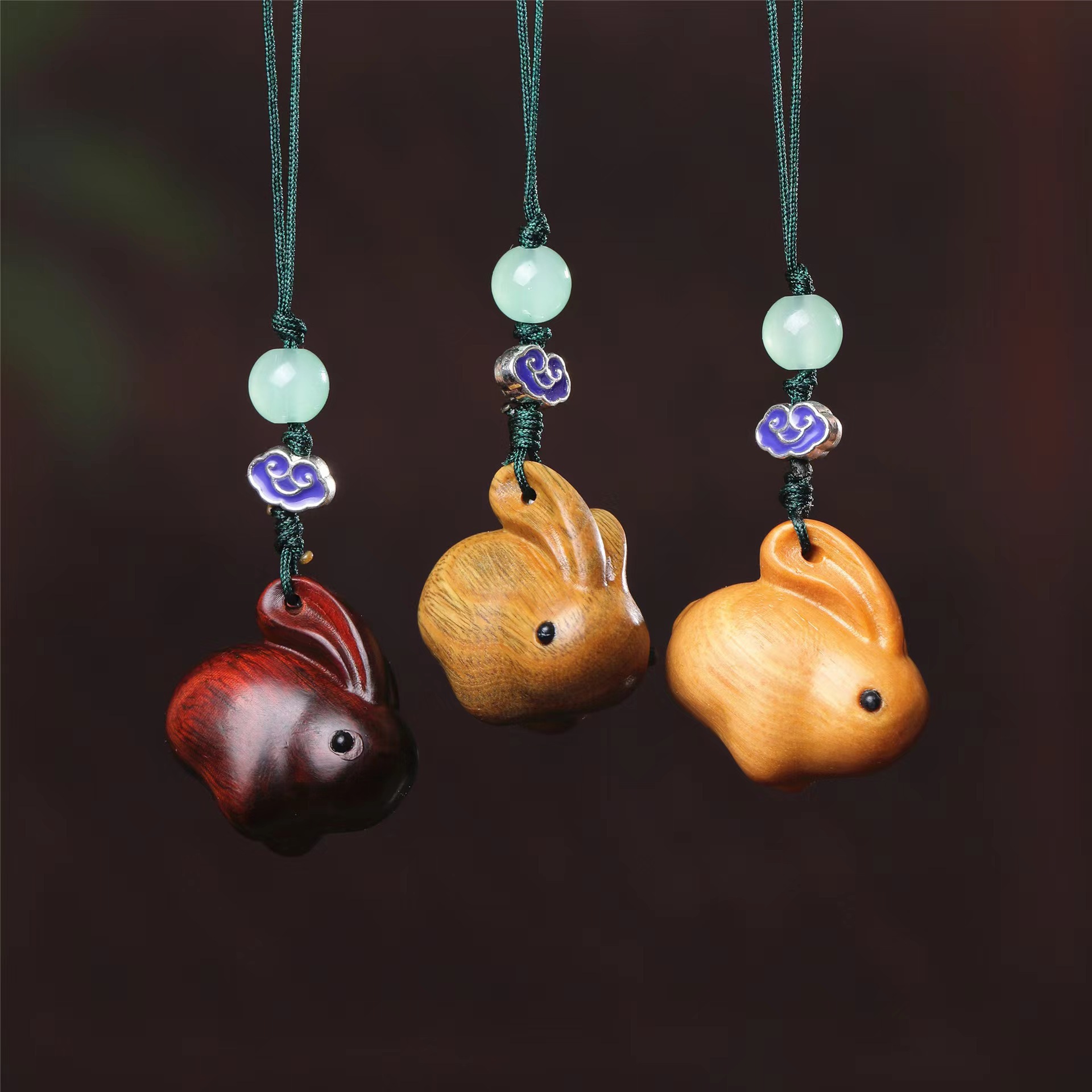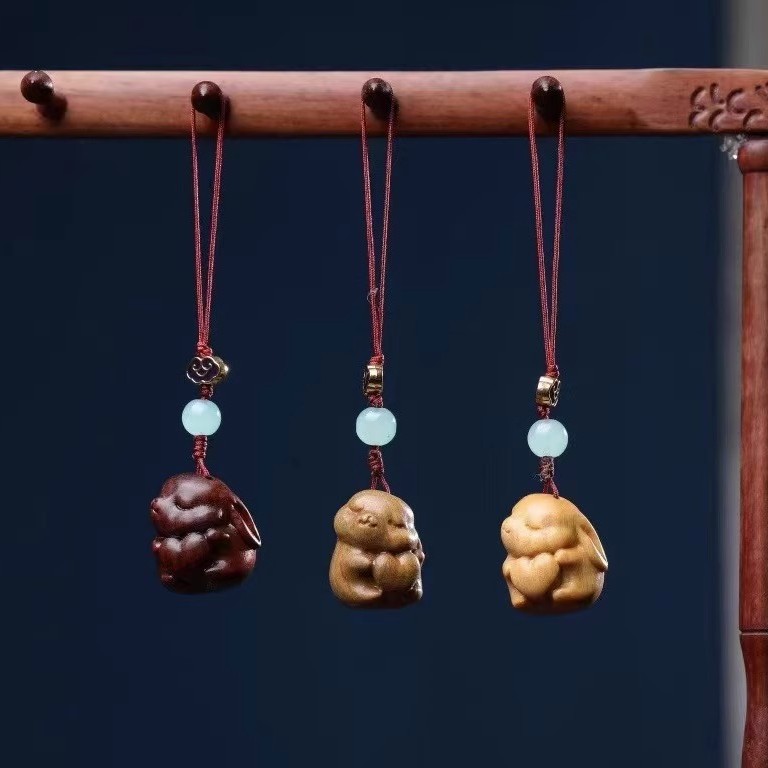 녹색 샌달 우드 토끼 가방 매달려 장식품 빨간 샌달 우드 신 부 휴대 전화 펜던트 DIY 만화 행운의 키 체인 조롱박 보석스토어 가기