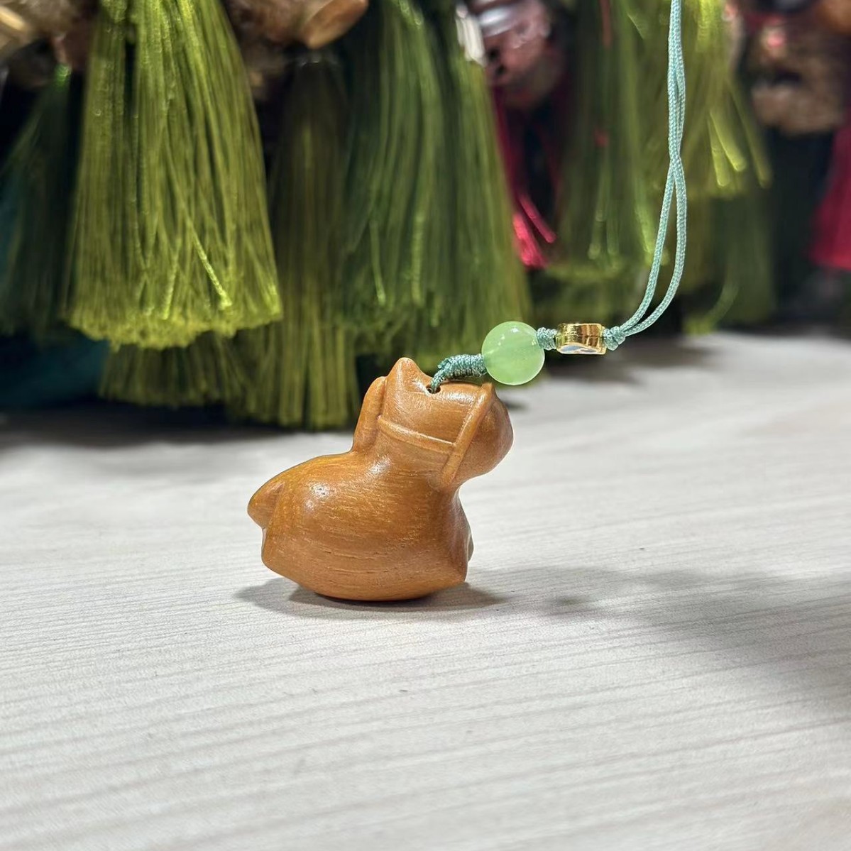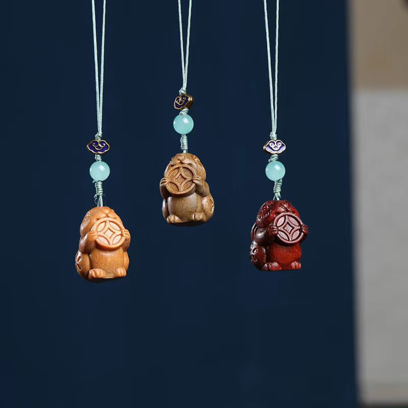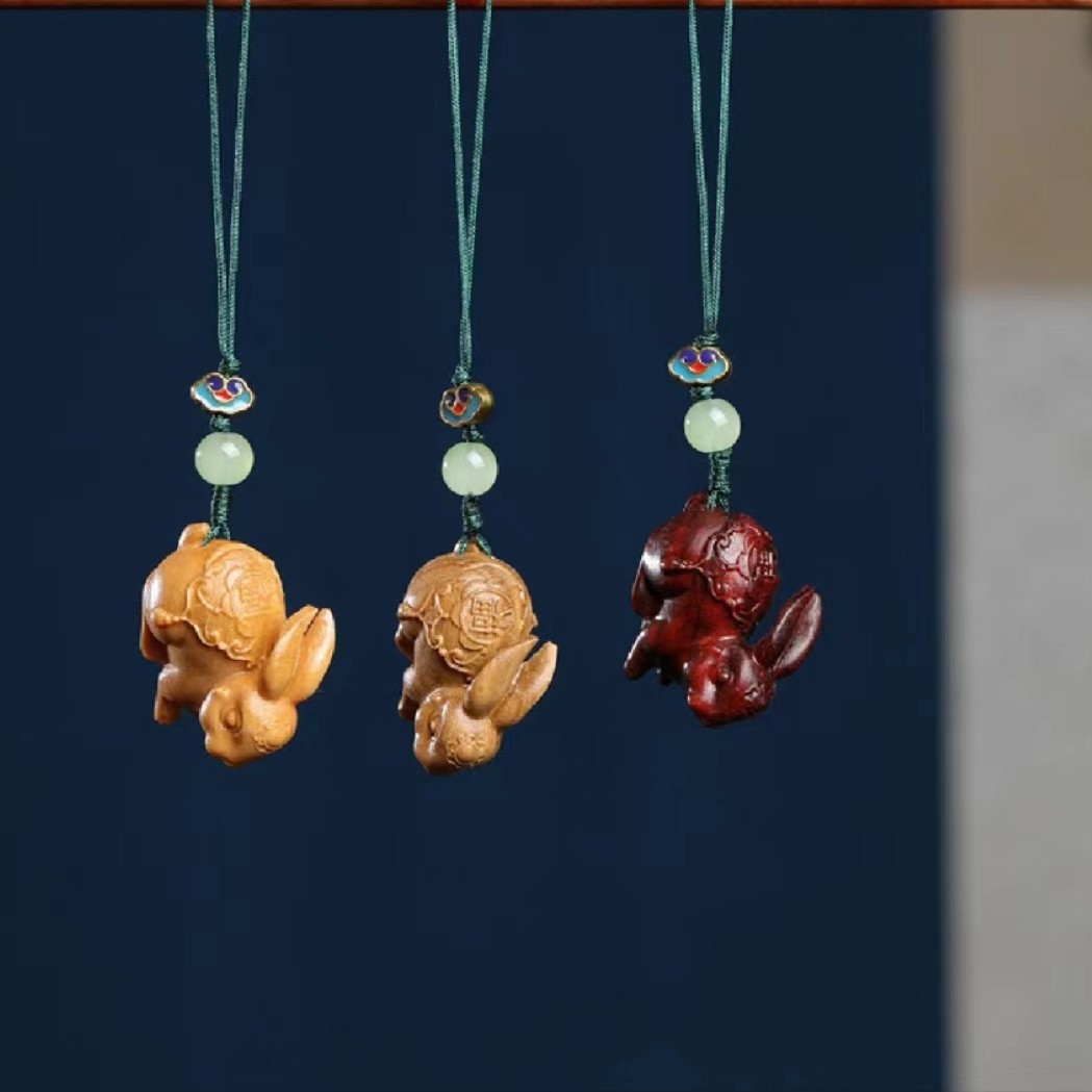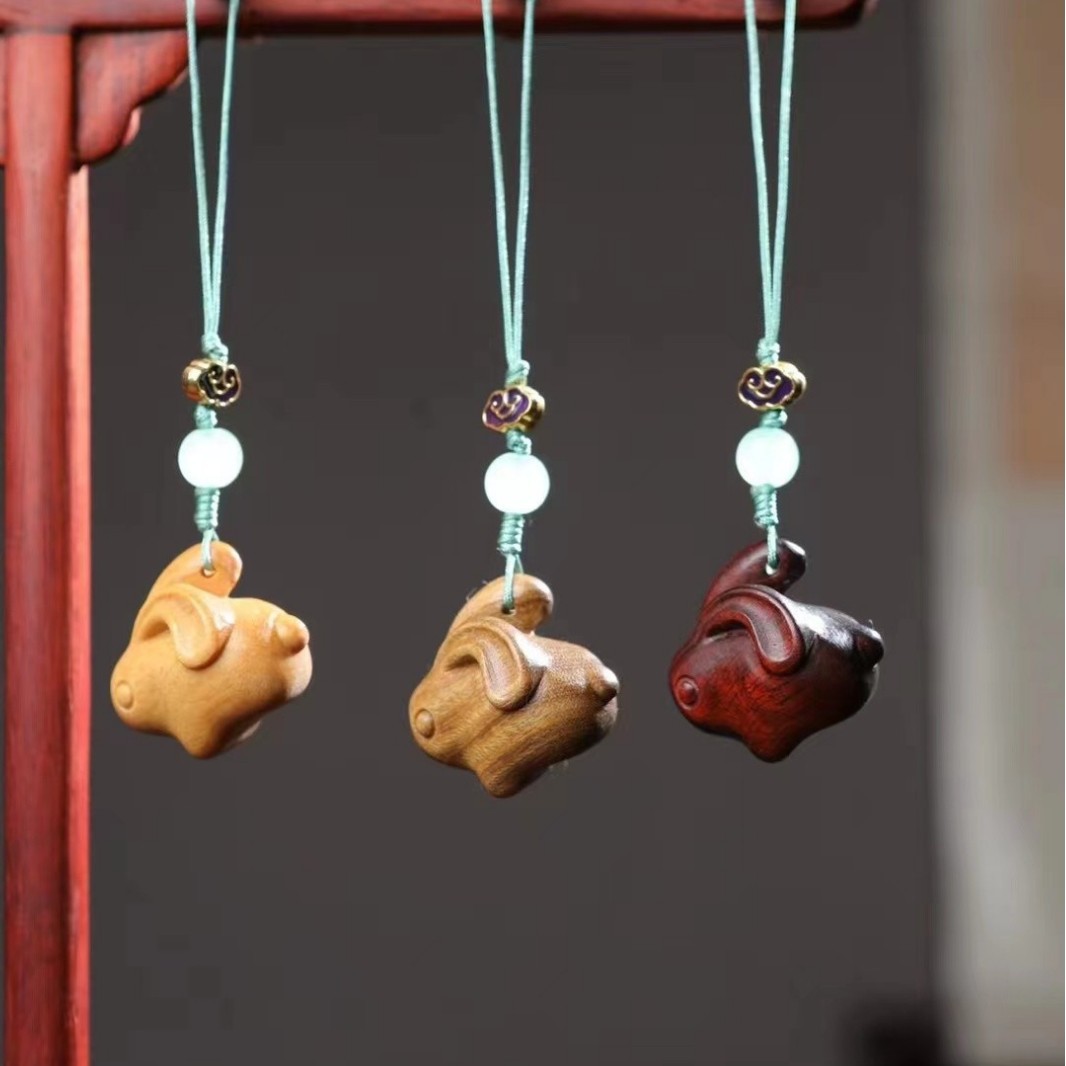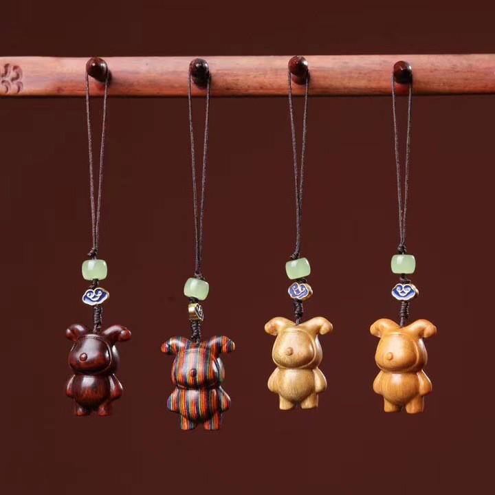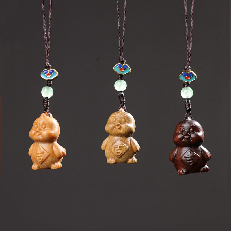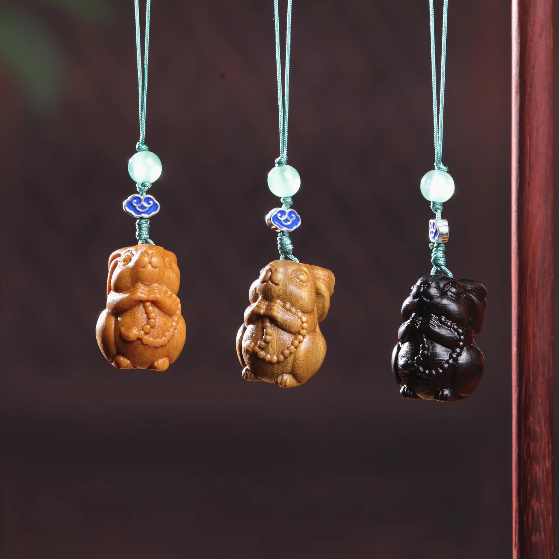 녹색 샌달 우드 토끼 가방 매달려 장식품 빨간 샌달 우드 신 부 휴대 전화 펜던트 DIY 만화 행운의 키 체인 조롱박 보석스토어 가기