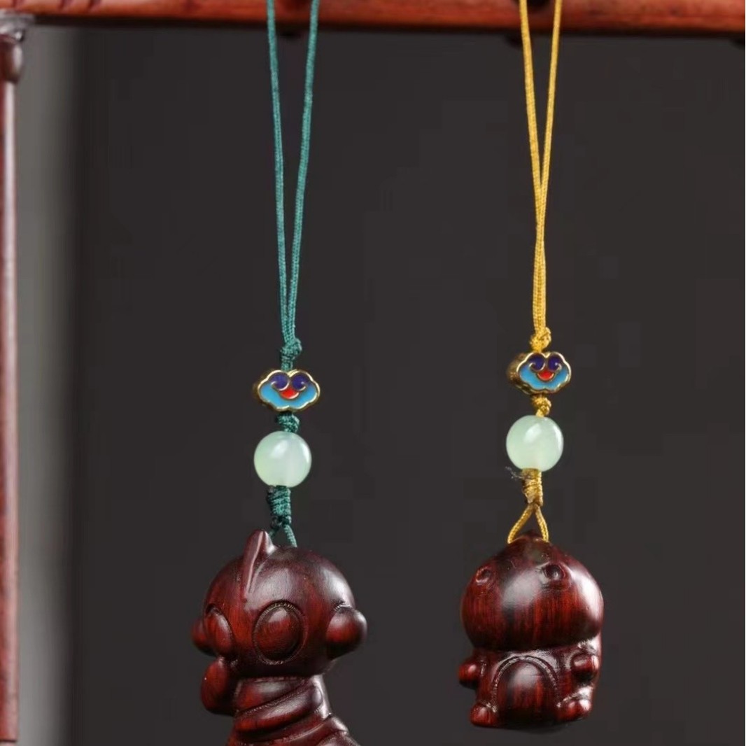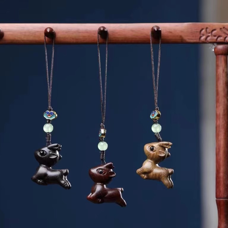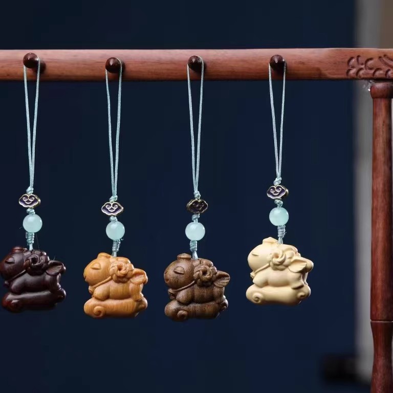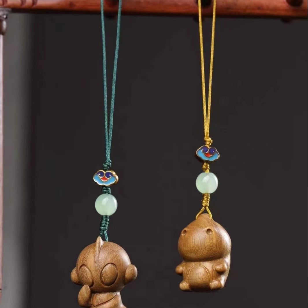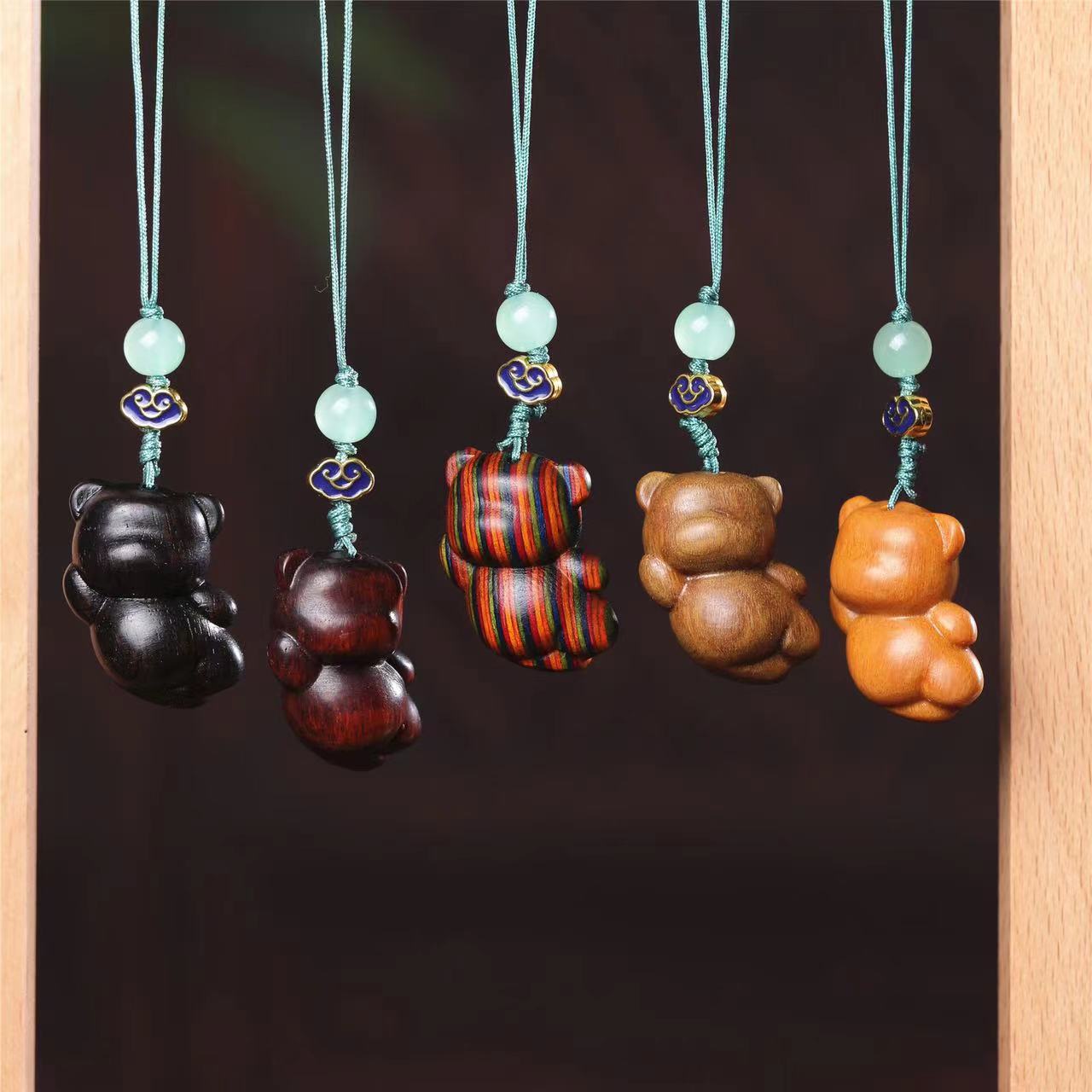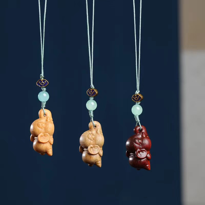 녹색 샌달 우드 토끼 가방 매달려 장식품 빨간 샌달 우드 신 부 휴대 전화 펜던트 DIY 만화 행운의 키 체인 조롱박 보석스토어 가기