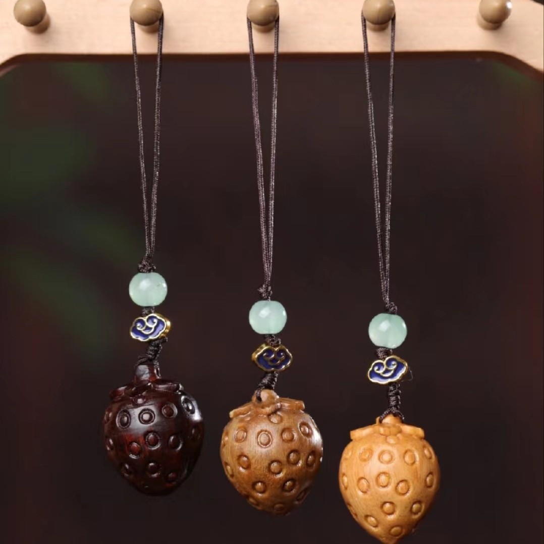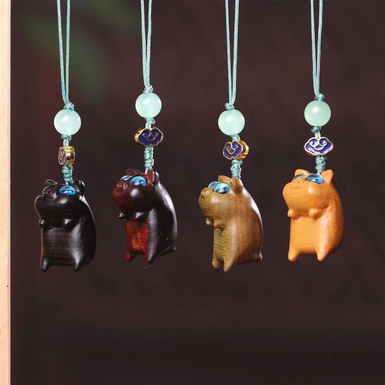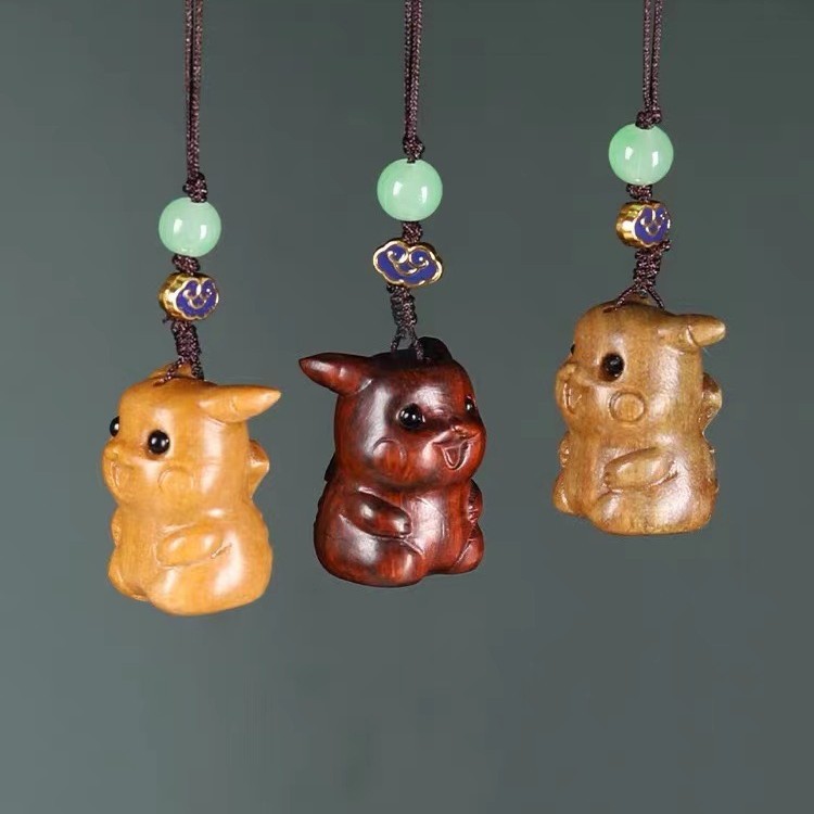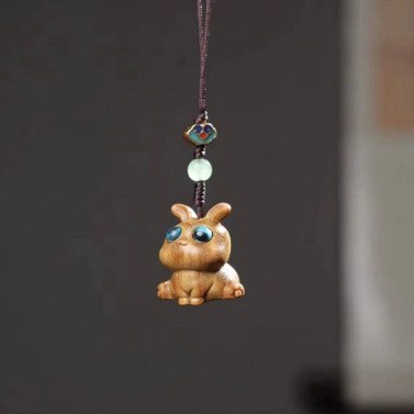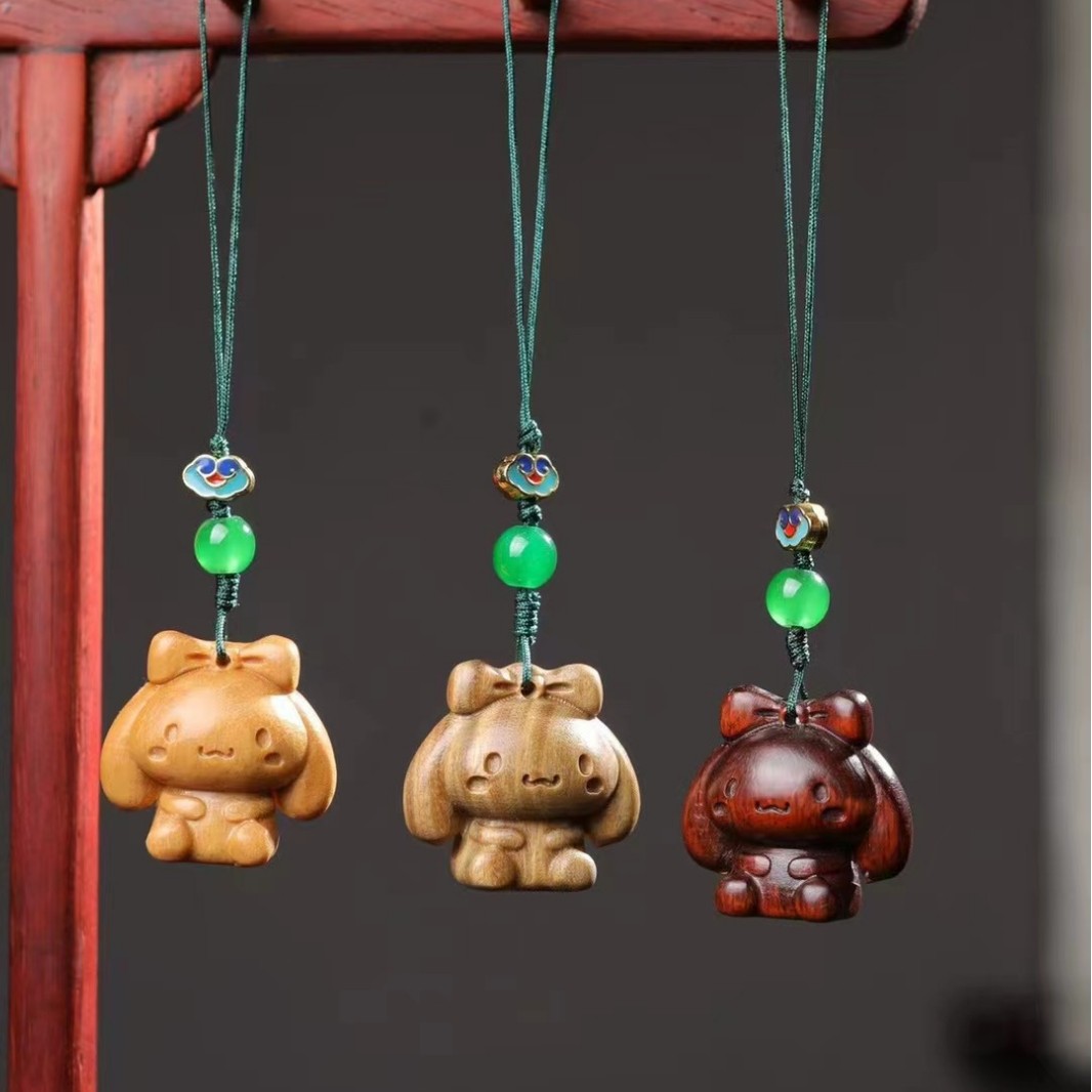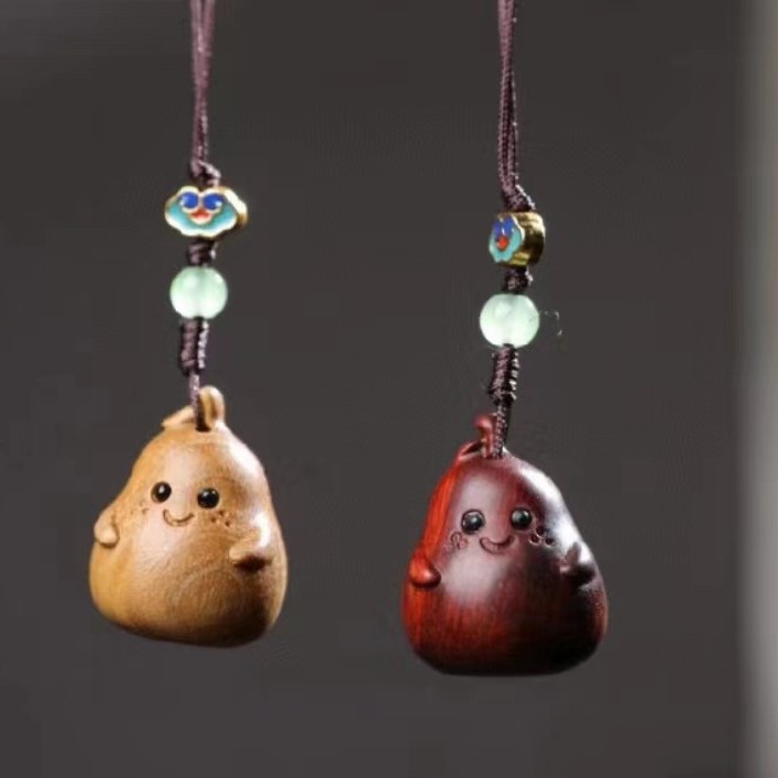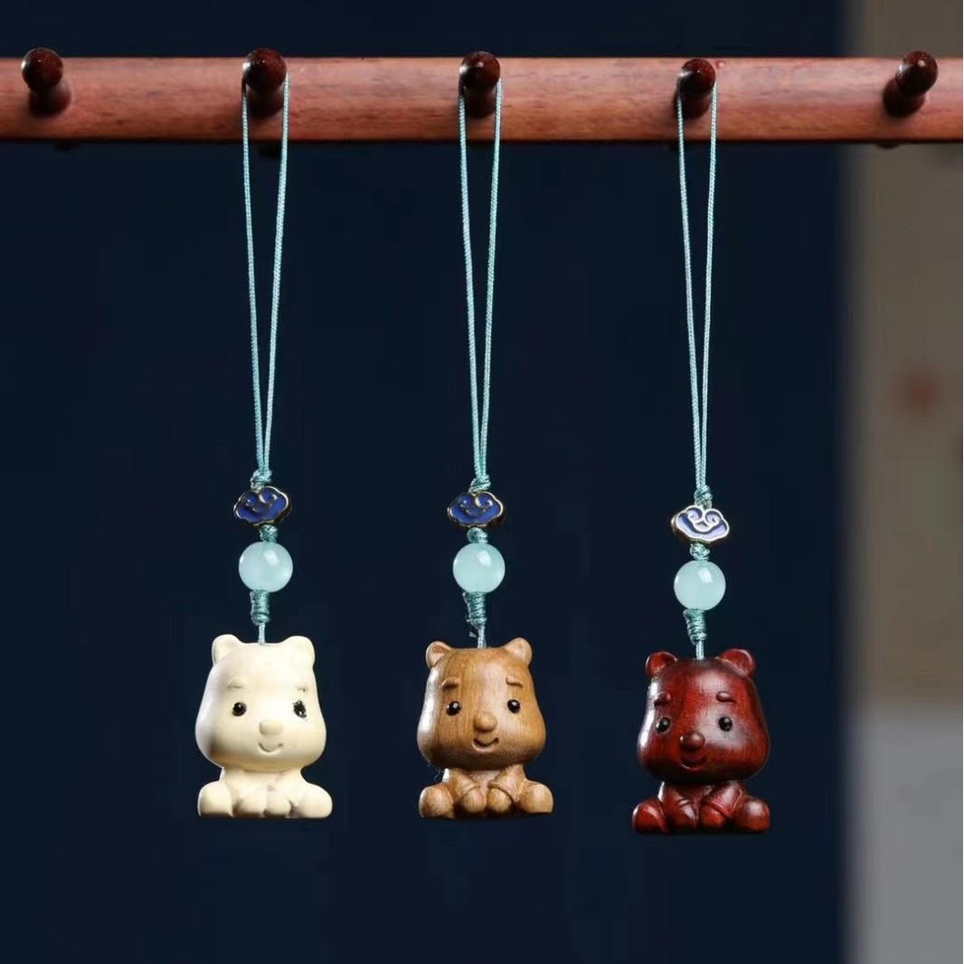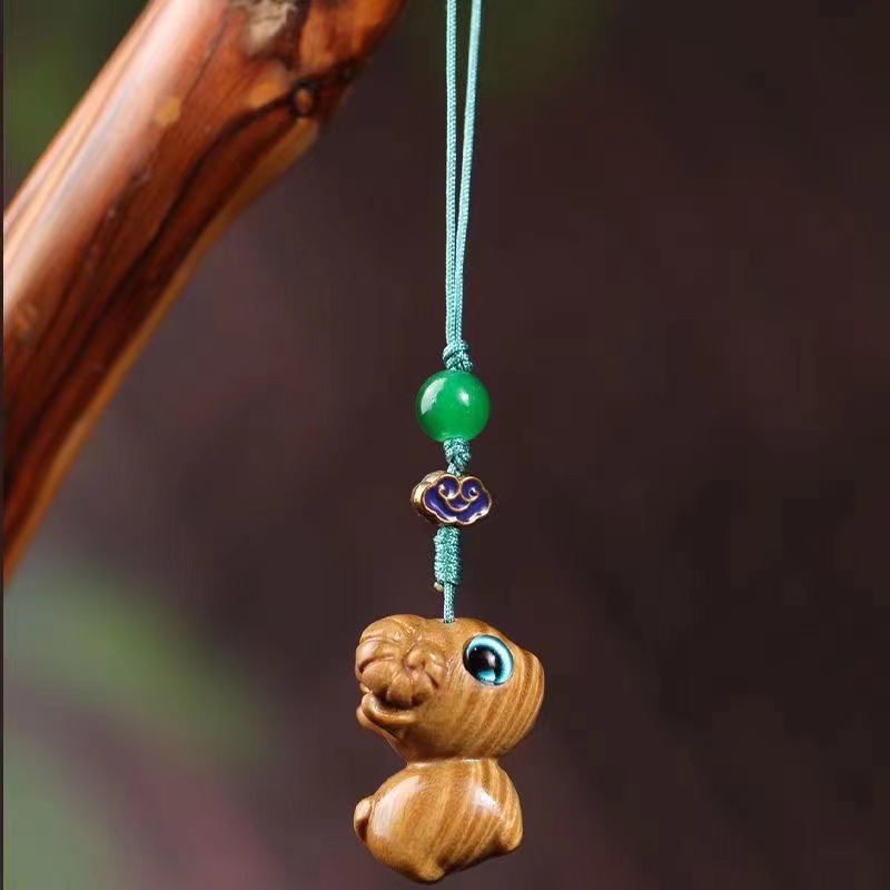 녹색 샌달 우드 토끼 가방 매달려 장식품 빨간 샌달 우드 신 부 휴대 전화 펜던트 DIY 만화 행운의 키 체인 조롱박 보석스토어 가기