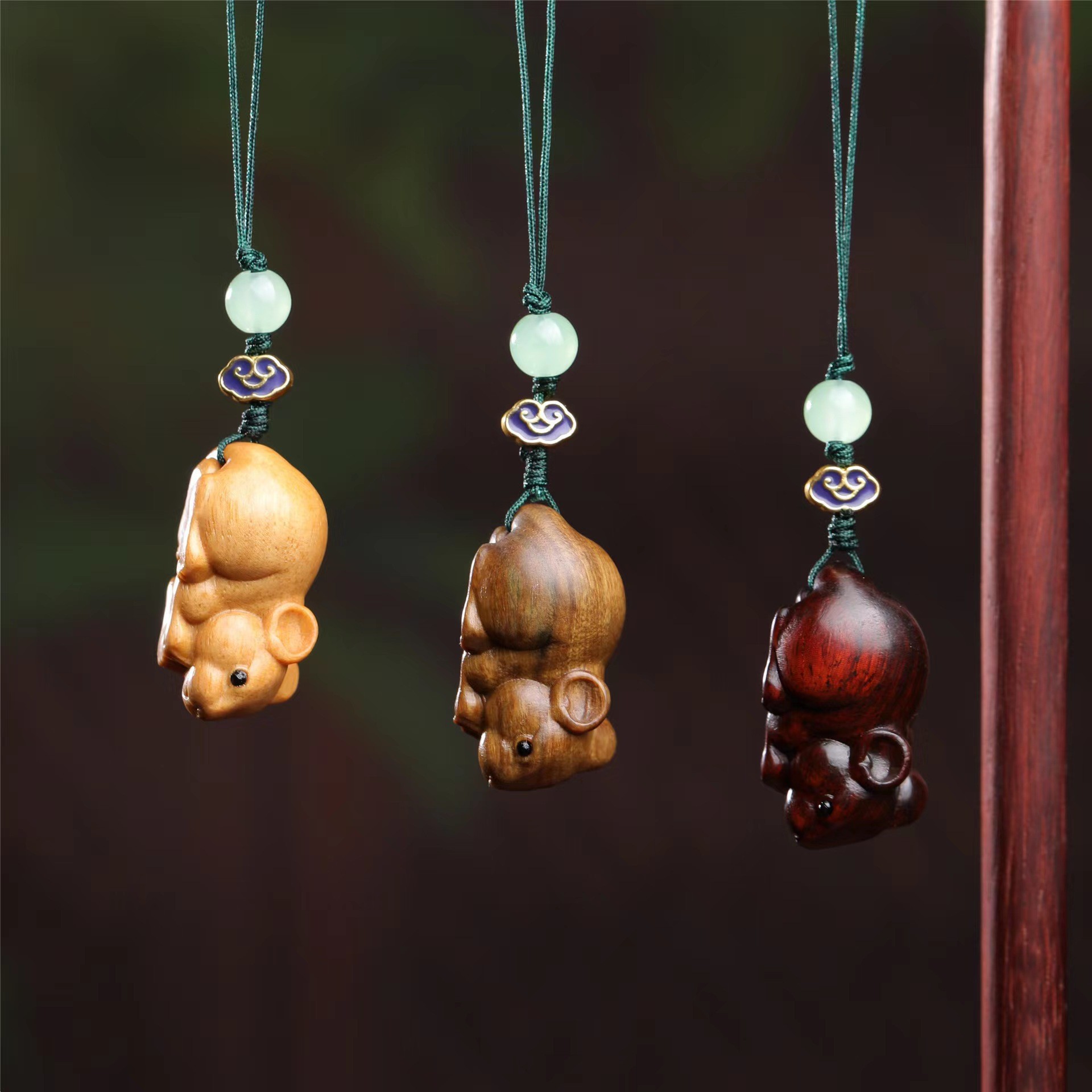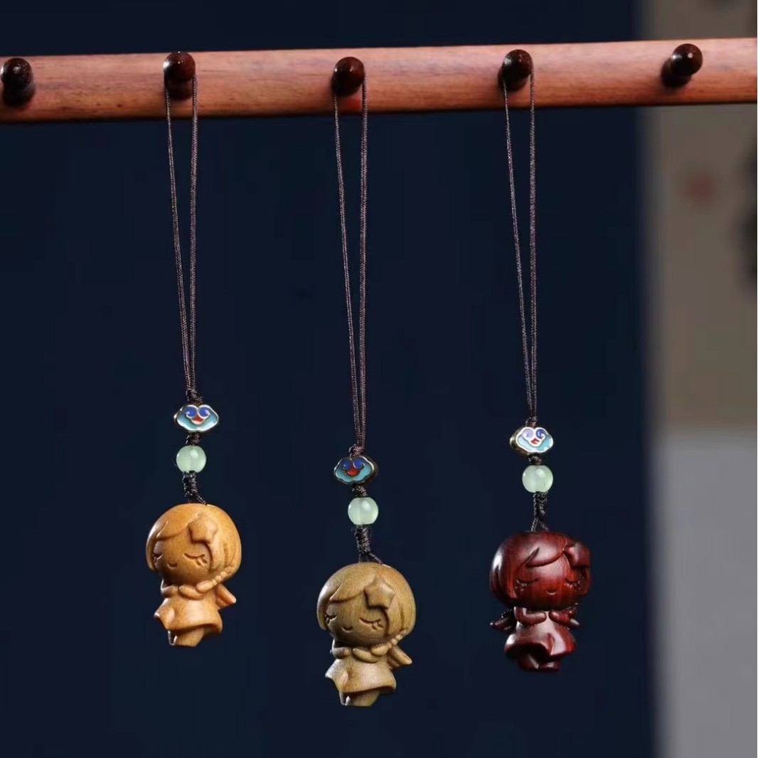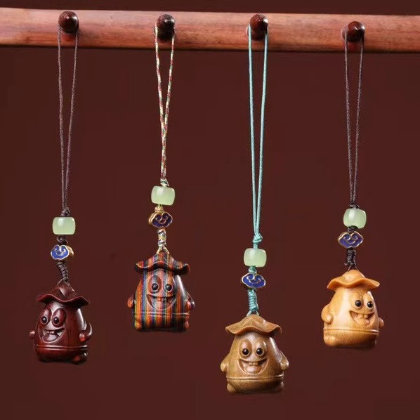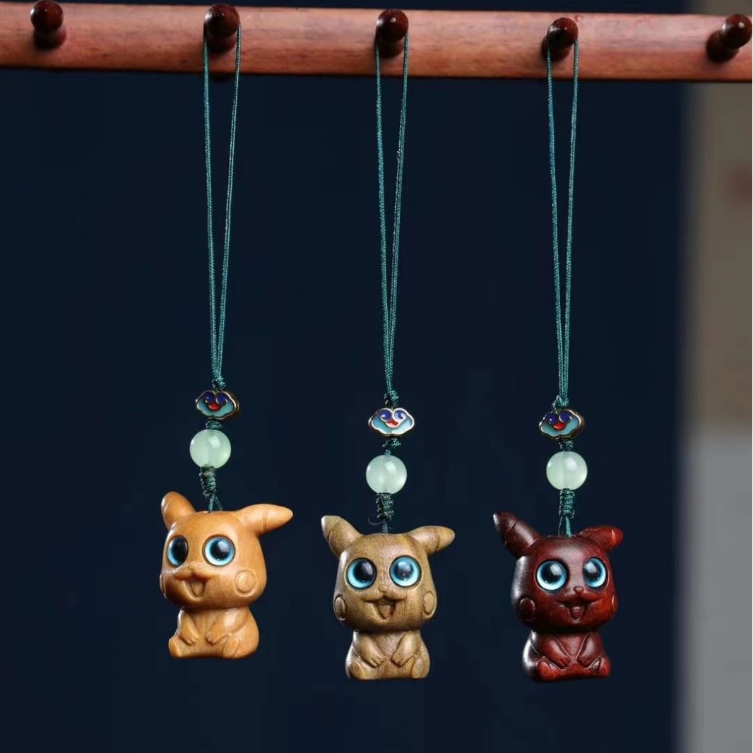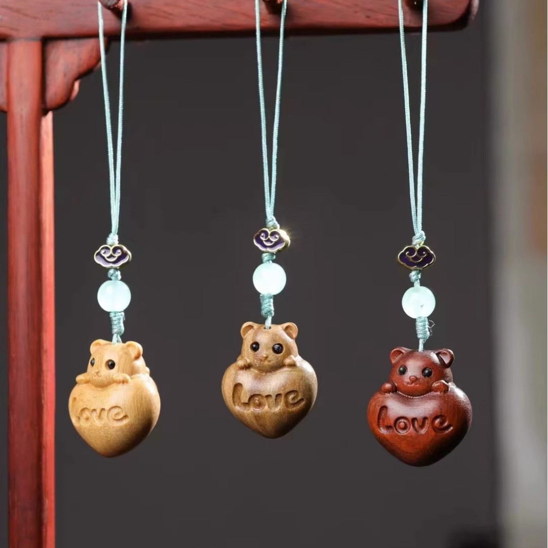녹색 샌달 우드 토끼 가방 매달려 장식품 빨간 샌달 우드 신 부 휴대 전화 펜던트 DIY 만화 행운의 키 체인 조롱박 보석스토어 가기