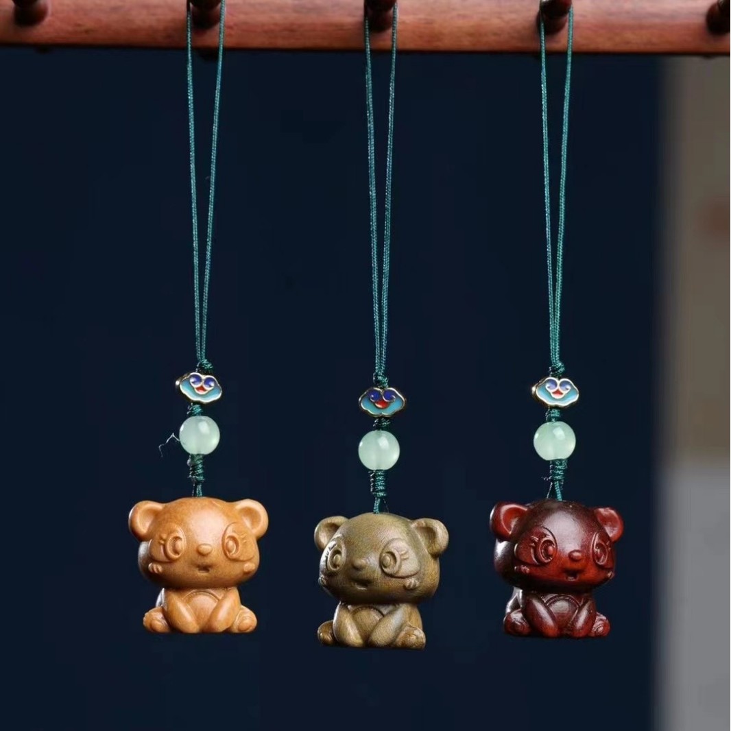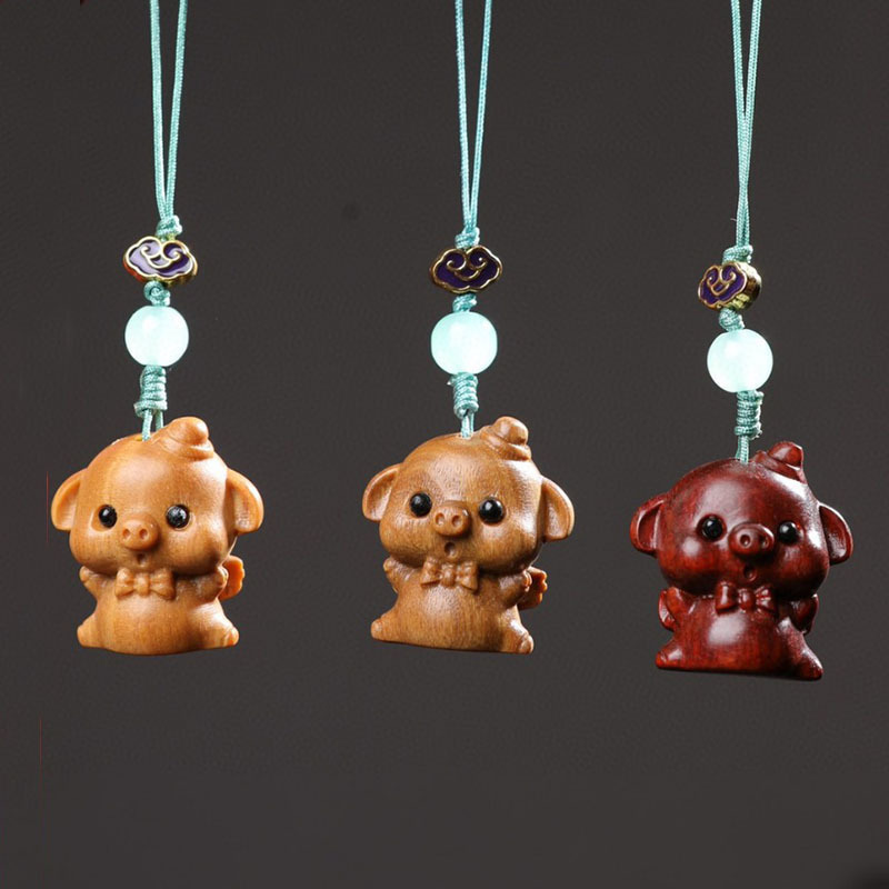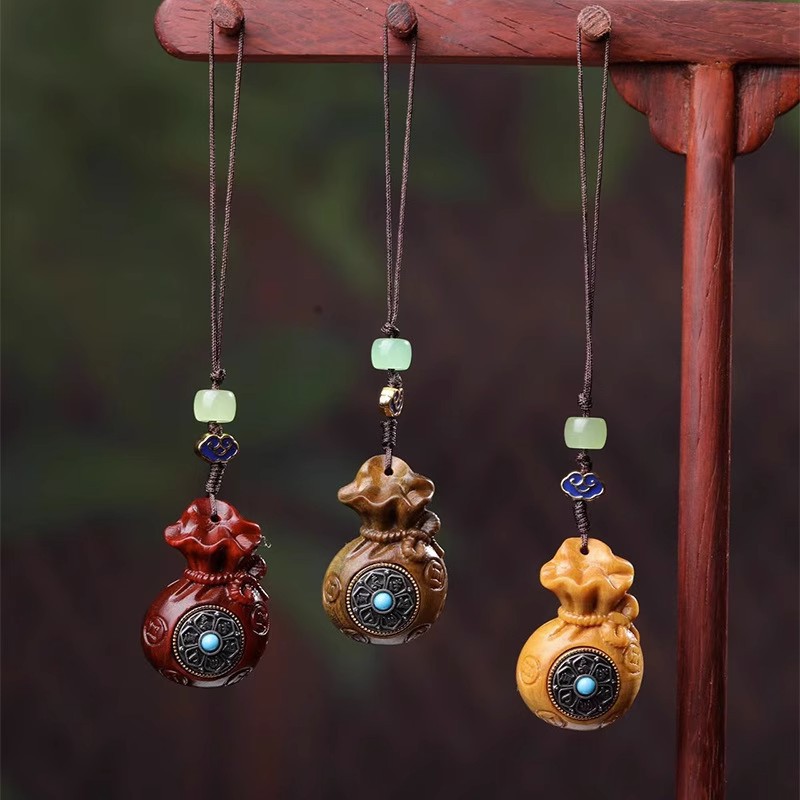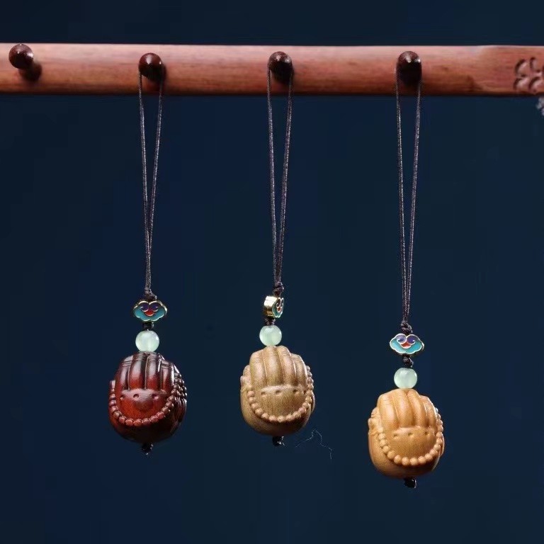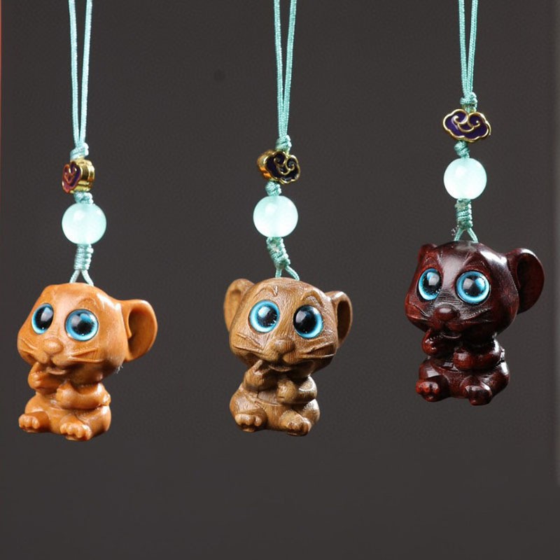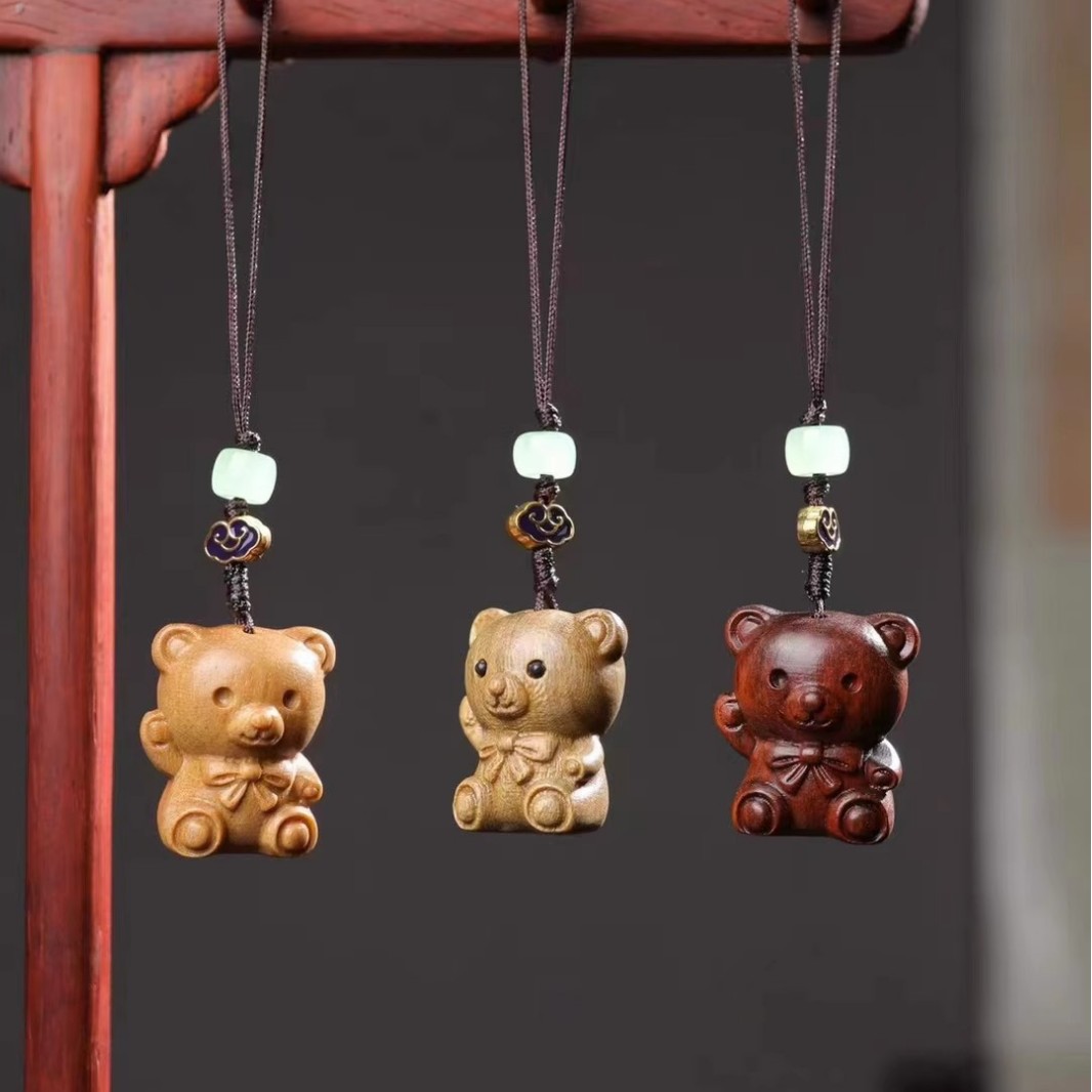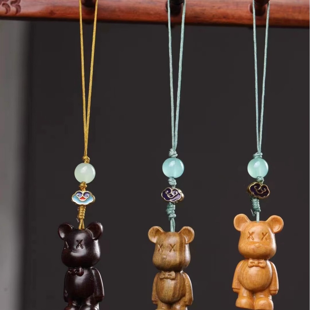 녹색 샌달 우드 토끼 가방 매달려 장식품 빨간 샌달 우드 신 부 휴대 전화 펜던트 DIY 만화 행운의 키 체인 조롱박 보석스토어 가기