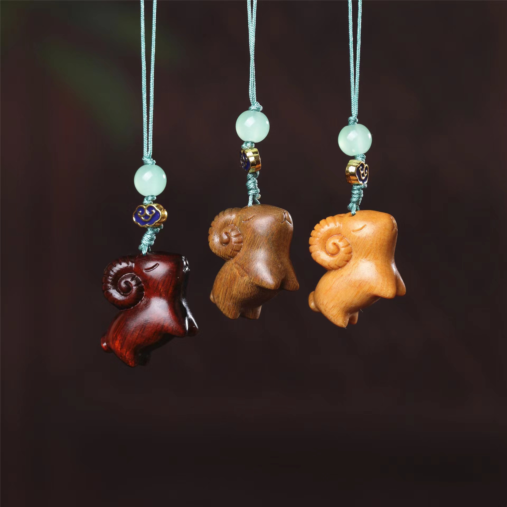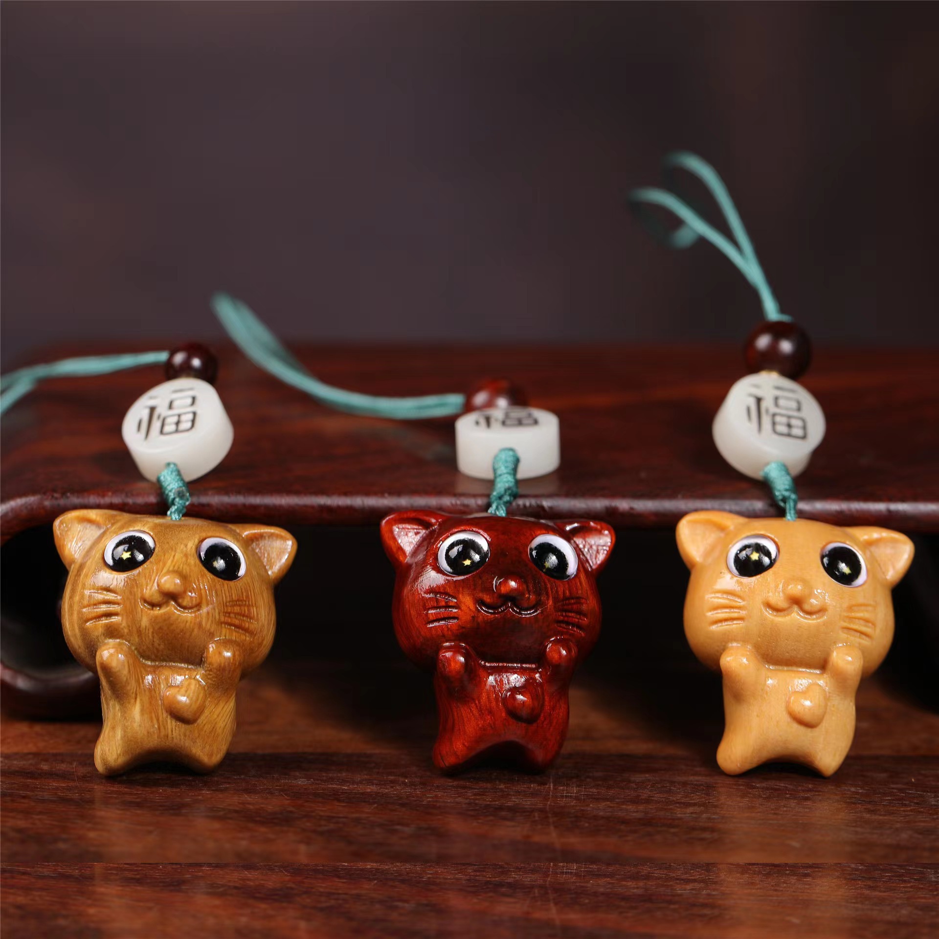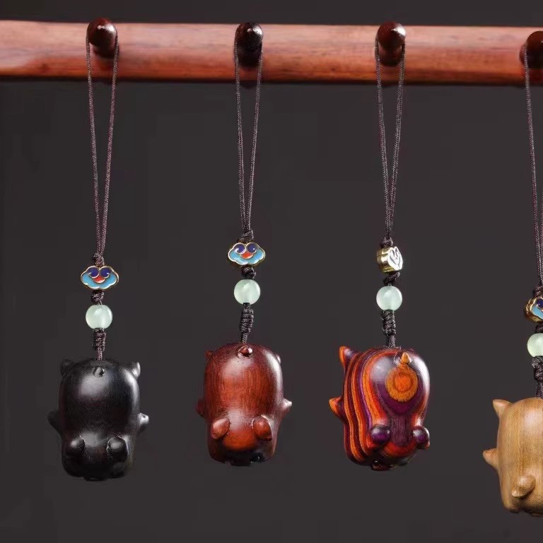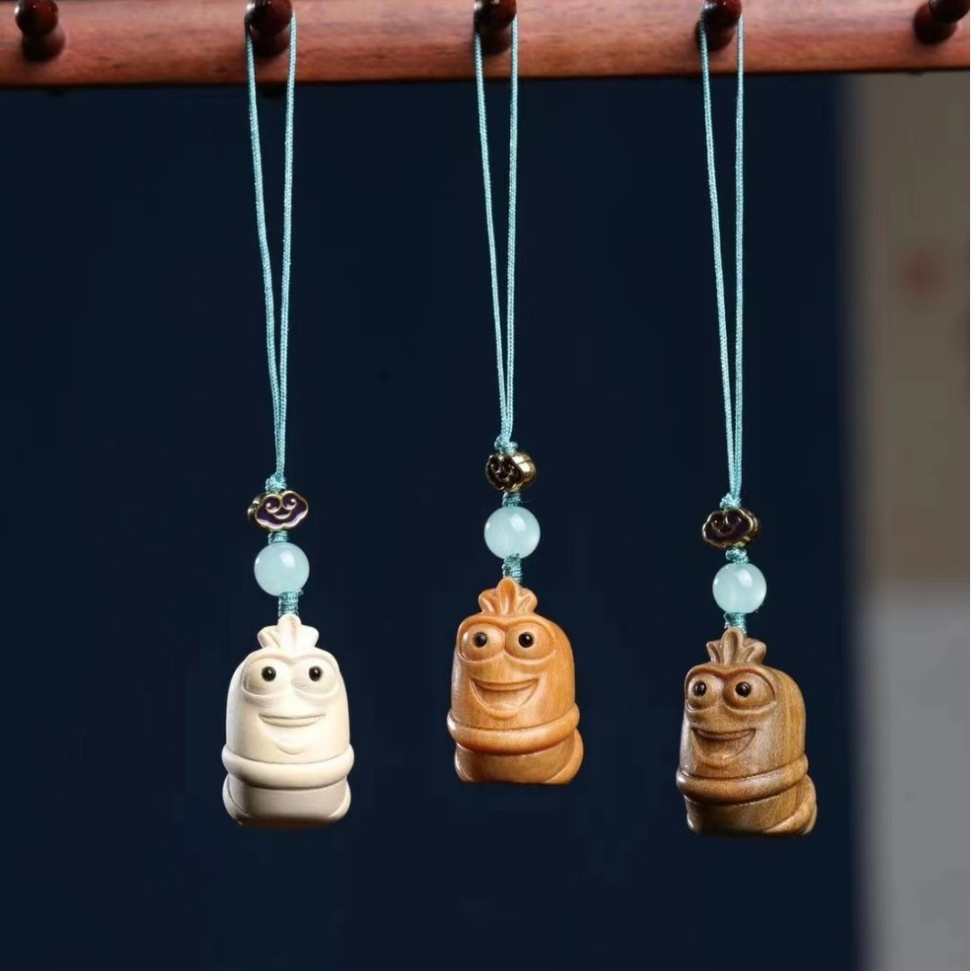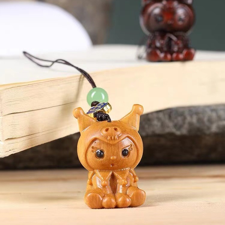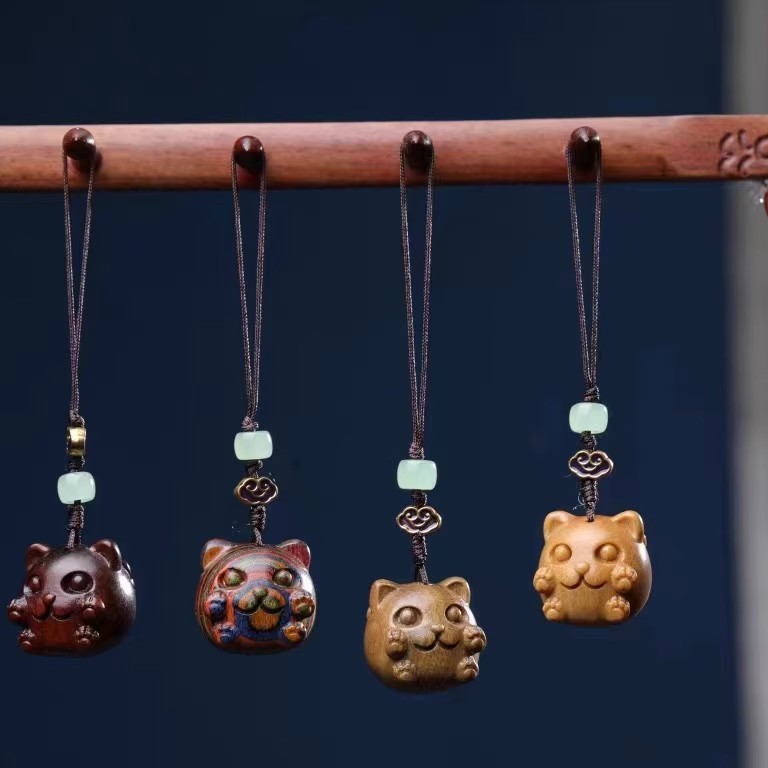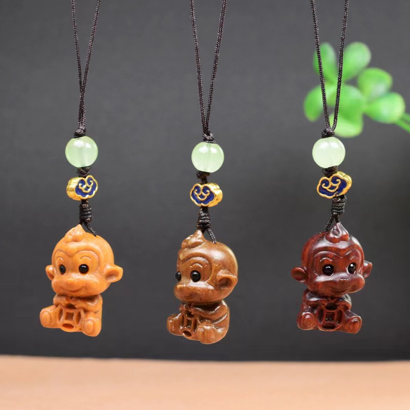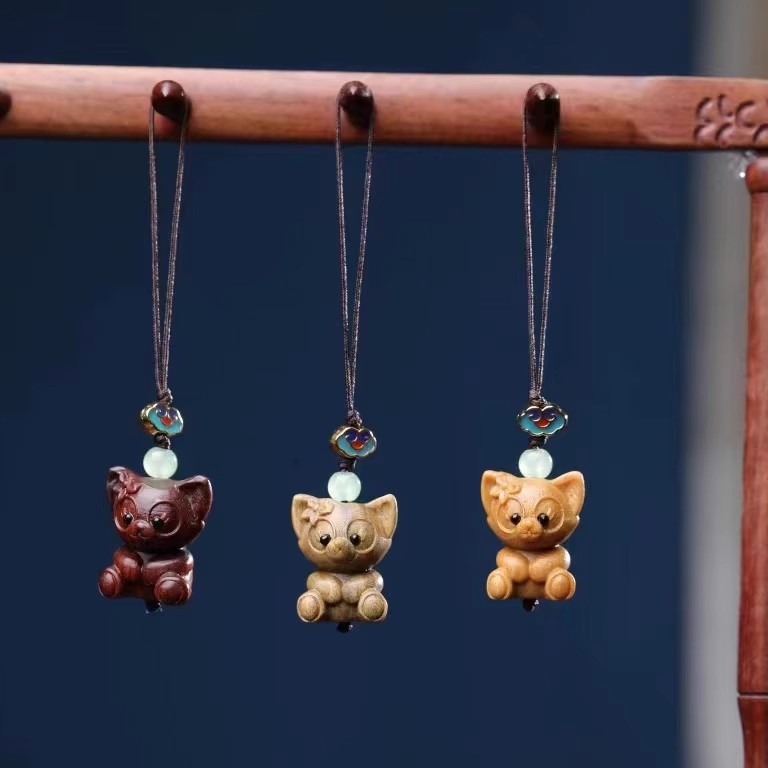 녹색 샌달 우드 토끼 가방 매달려 장식품 빨간 샌달 우드 신 부 휴대 전화 펜던트 DIY 만화 행운의 키 체인 조롱박 보석스토어 가기