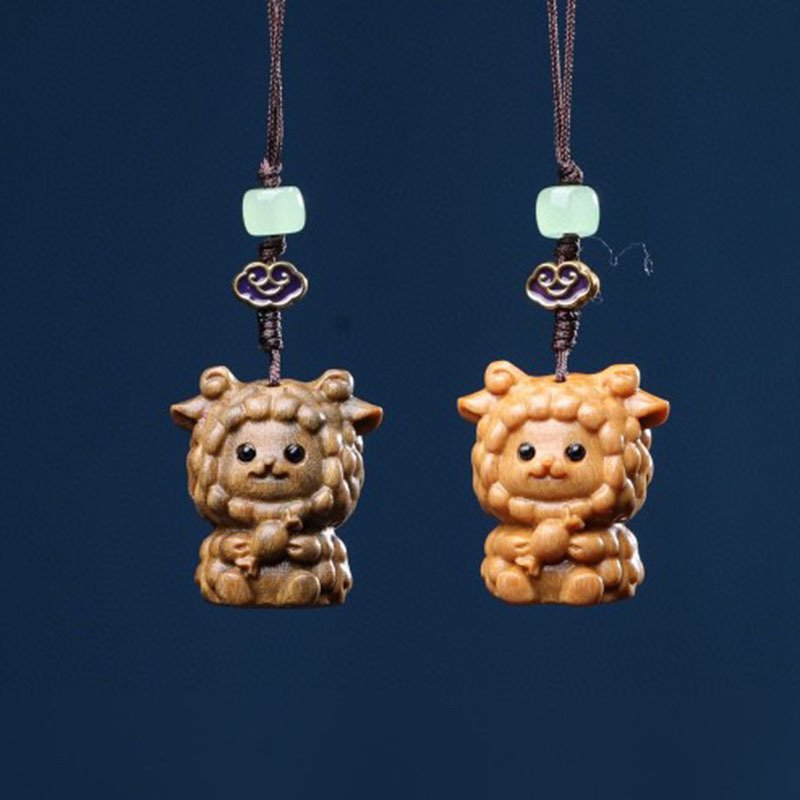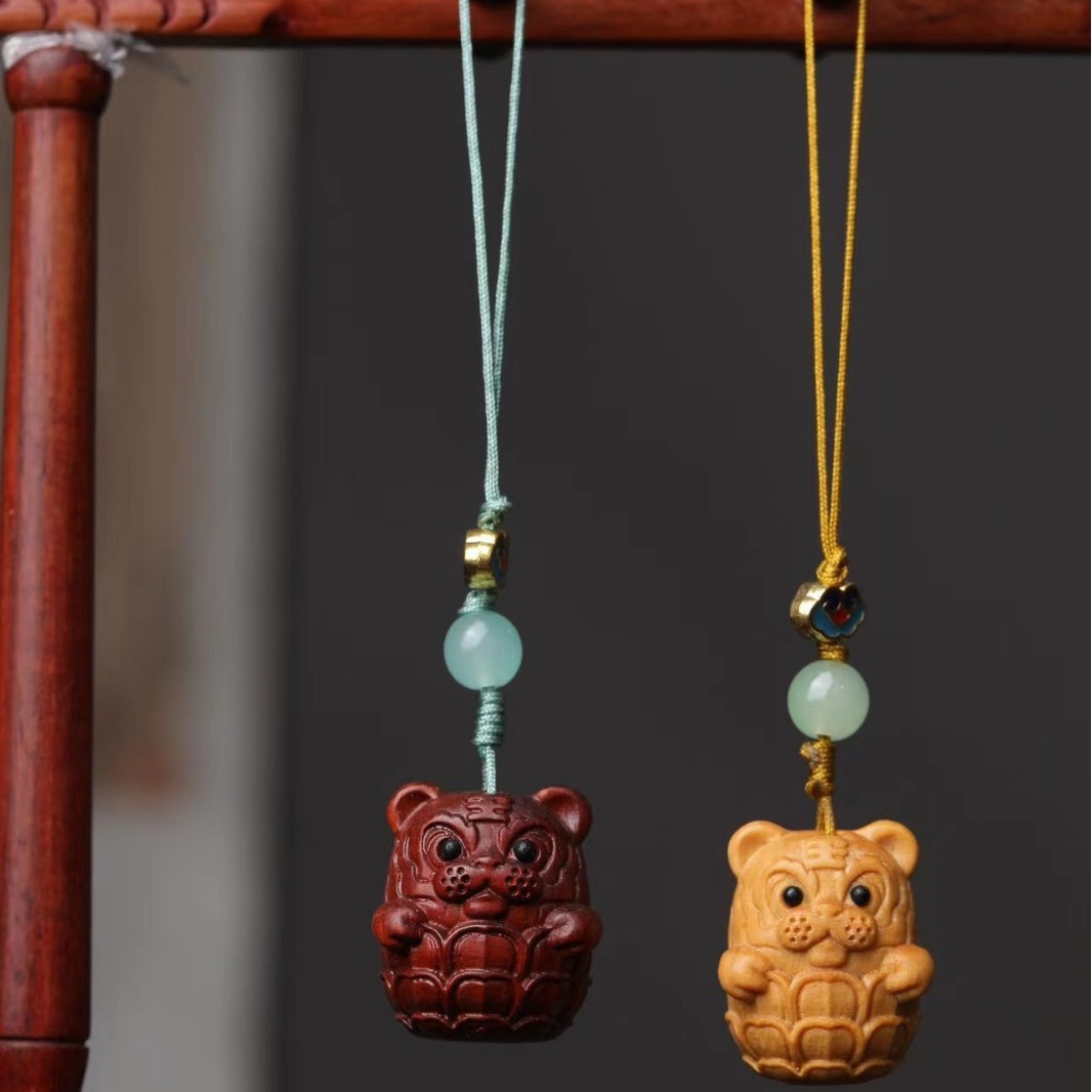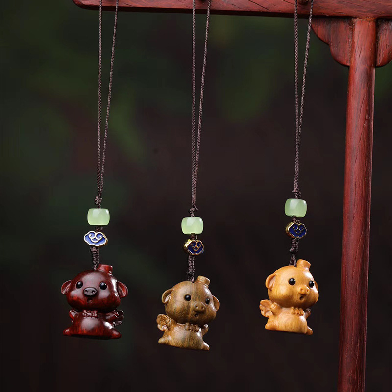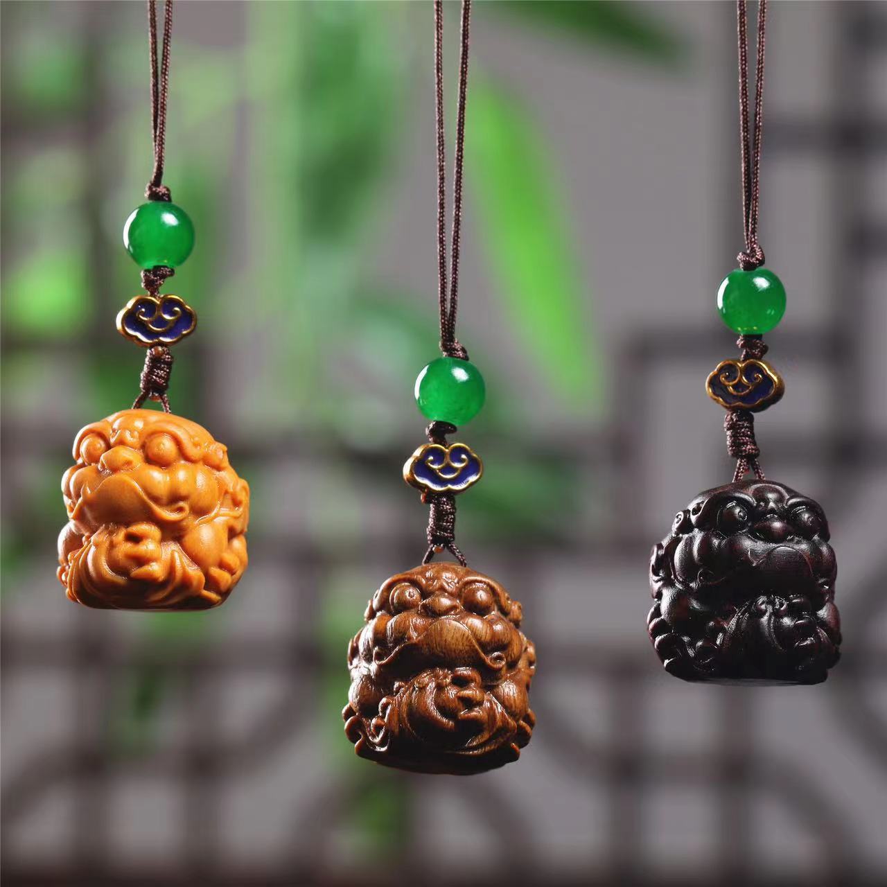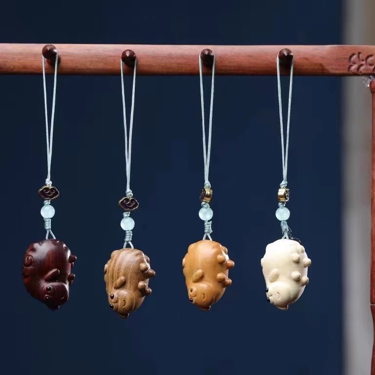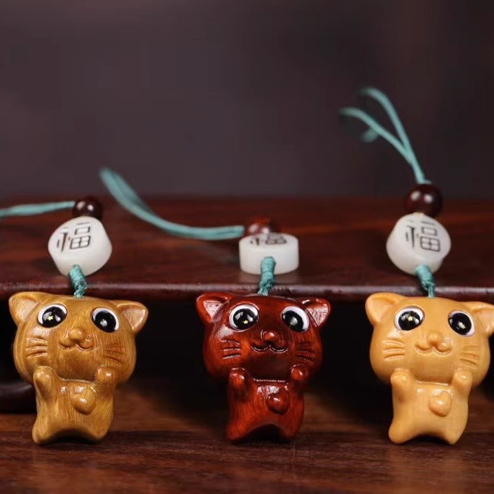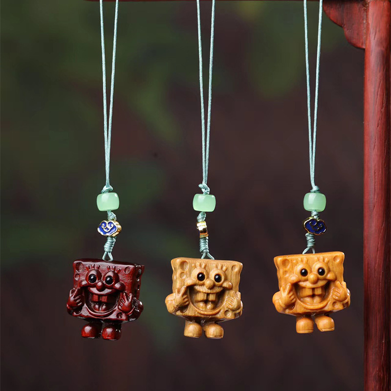 녹색 샌달 우드 토끼 가방 매달려 장식품 빨간 샌달 우드 신 부 휴대 전화 펜던트 DIY 만화 행운의 키 체인 조롱박 보석스토어 가기