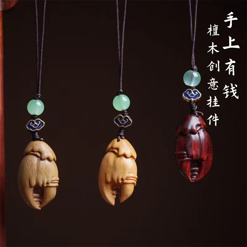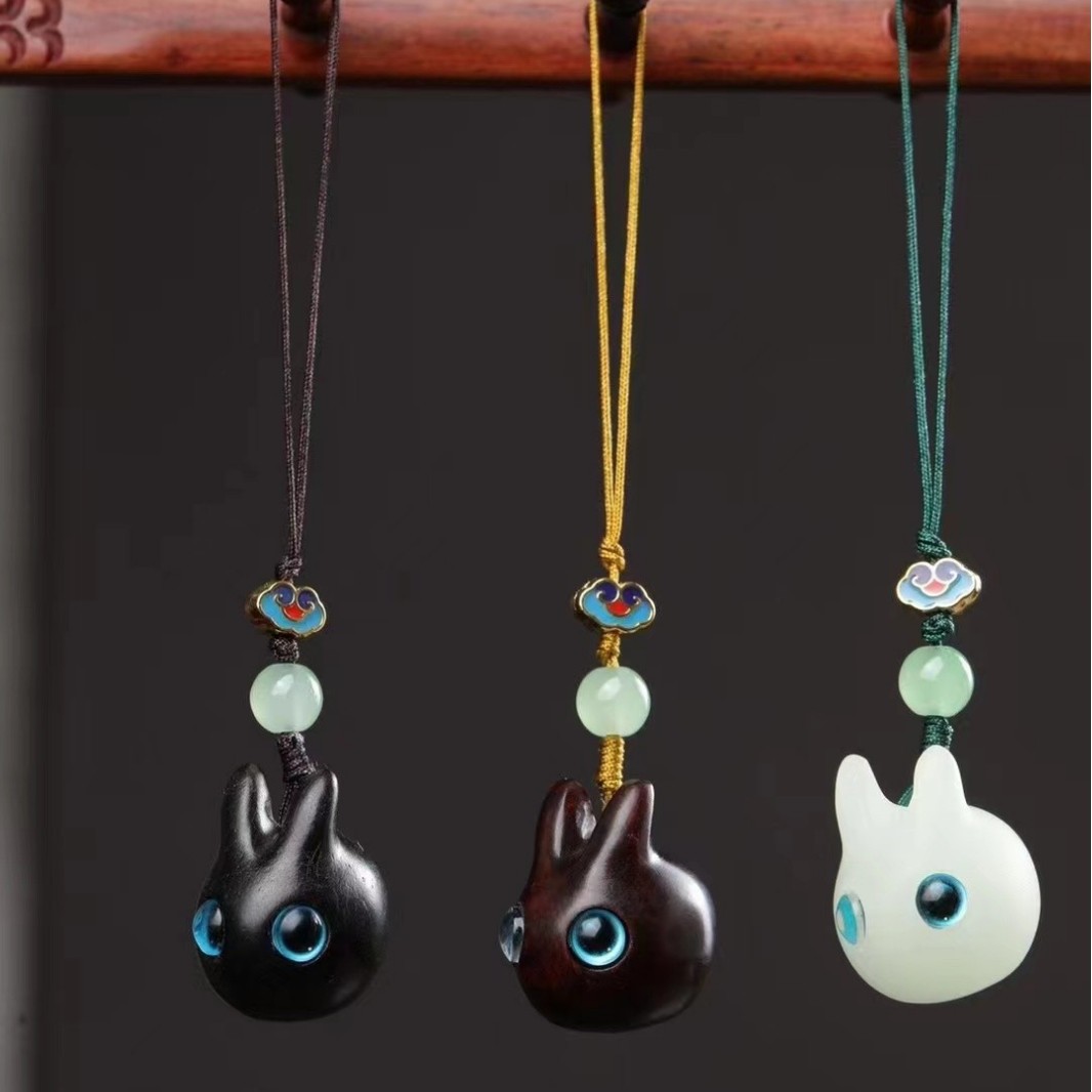 녹색 샌달 우드 토끼 가방 매달려 장식품 빨간 샌달 우드 신 부 휴대 전화 펜던트 DIY 만화 행운의 키 체인 조롱박 보석