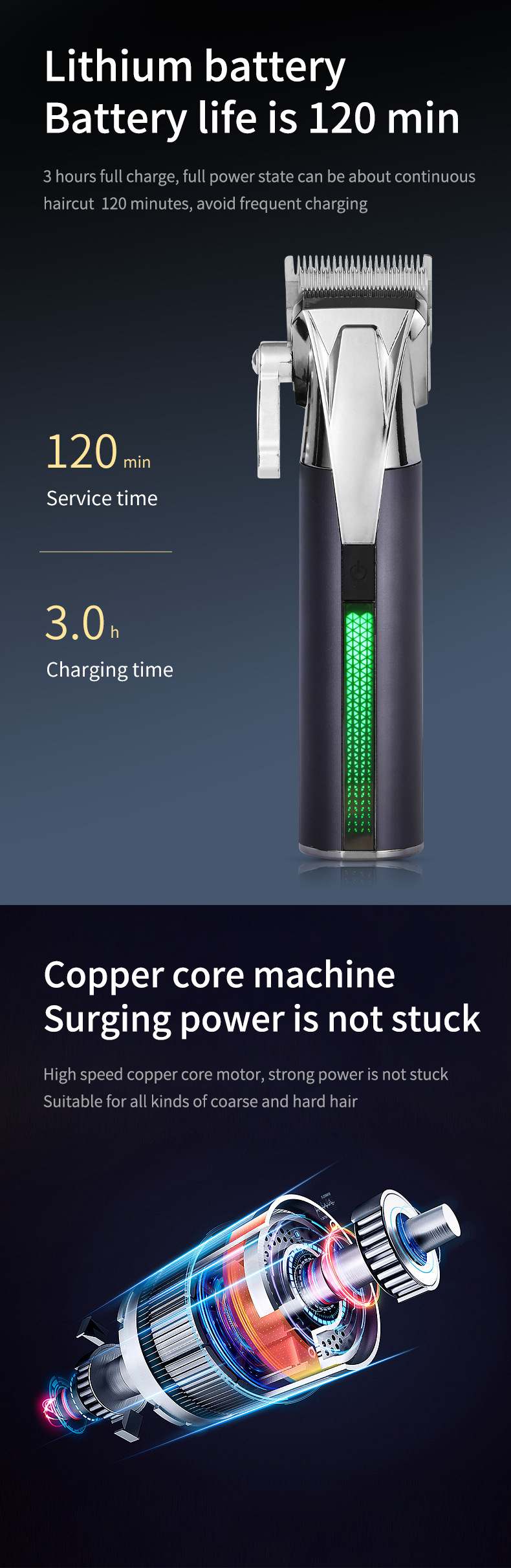 국경 간 전기 충전 헤어 클리퍼 그라디언트 파워 디스플레이 빛 전문 전기 클리퍼 헤어 클리퍼스토어 가기