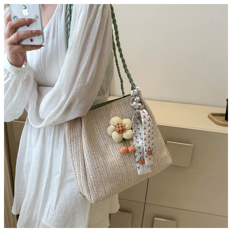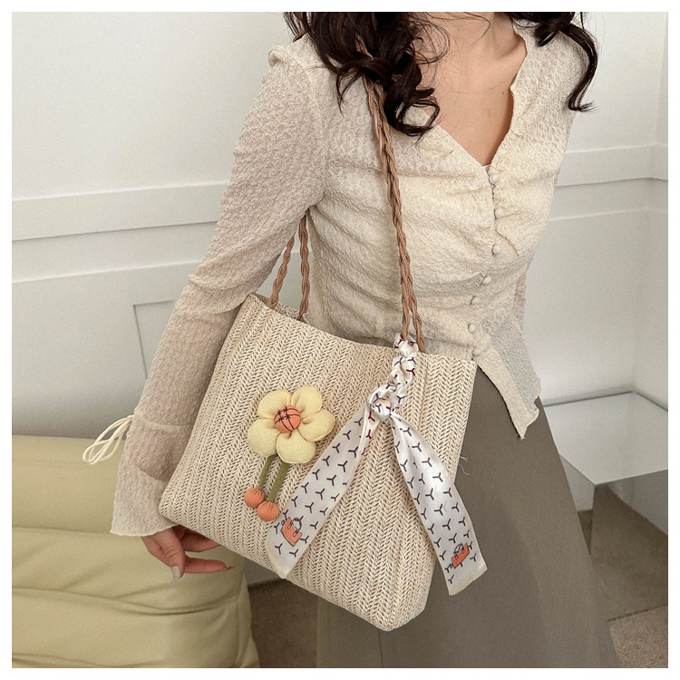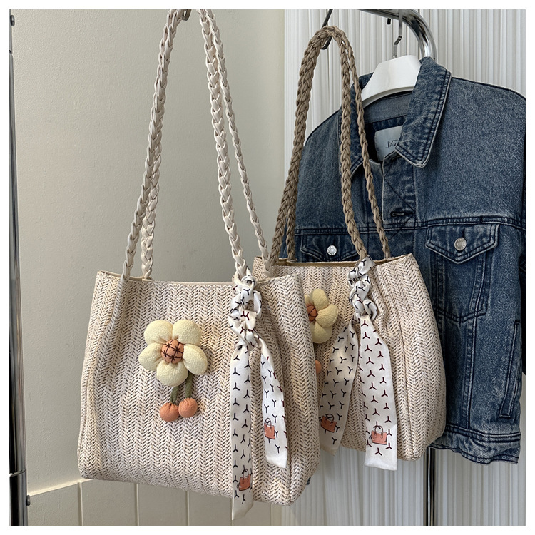 여름 인기 숲풍 밀짚가방, 심플한 대용량 가방, 여성용 해변 캐주얼 휴가 토트백, 여성용 직조 가방스토어 가기