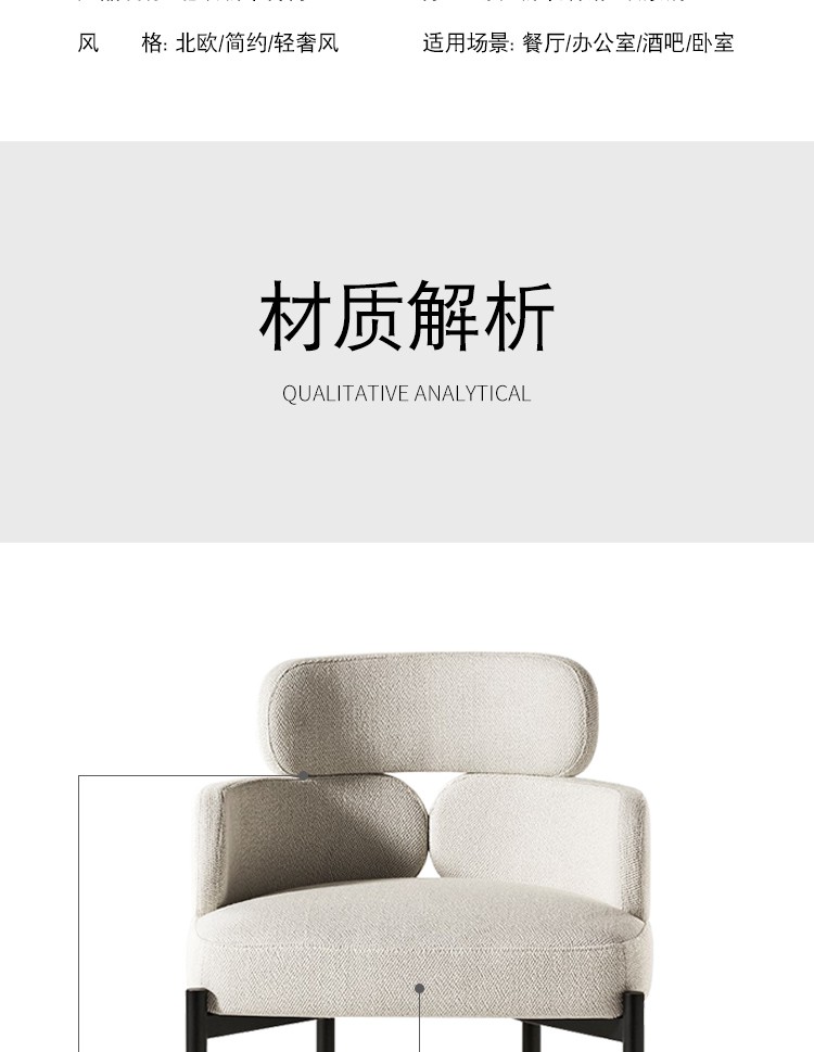 가벼운 고급 식당 의자 현대 간단한 홈 레스토랑 등받이 의자 모델 룸 레저 협상 원단 의자 디자이너스토어 가기