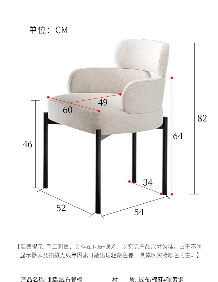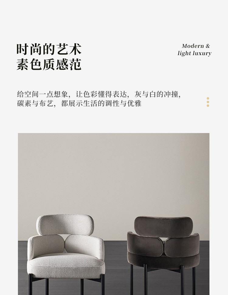 가벼운 고급 식당 의자 현대 간단한 홈 레스토랑 등받이 의자 모델 룸 레저 협상 원단 의자 디자이너