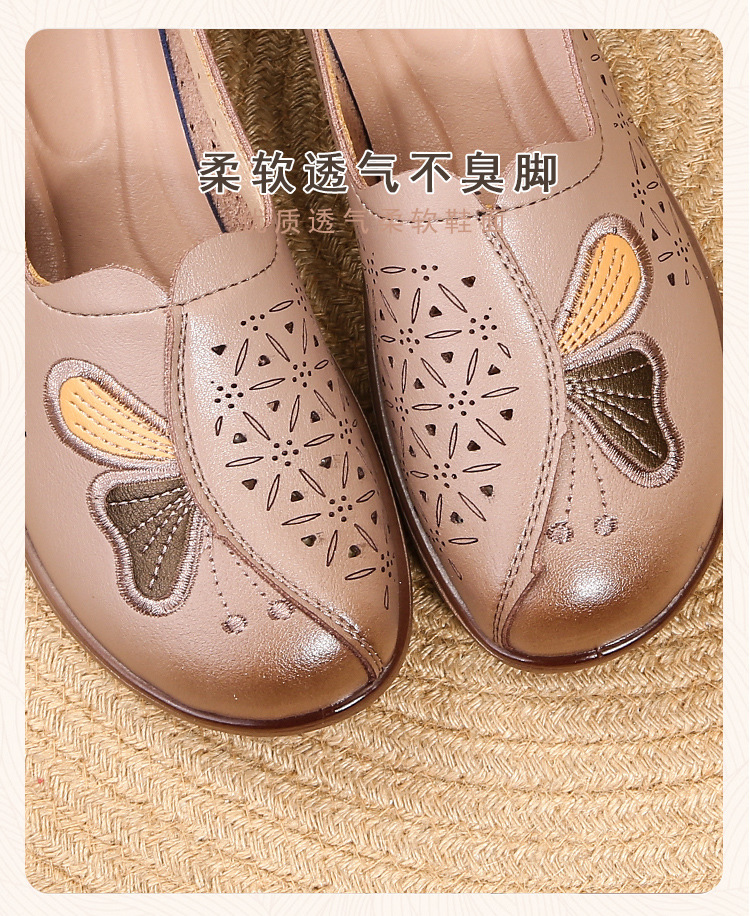 어머니 신발 봄과 가을 편안한 중년 및 노인 싱글 레이어 신발 미끄럼 방지 여름 정품 가죽 샌들 홀 샌들