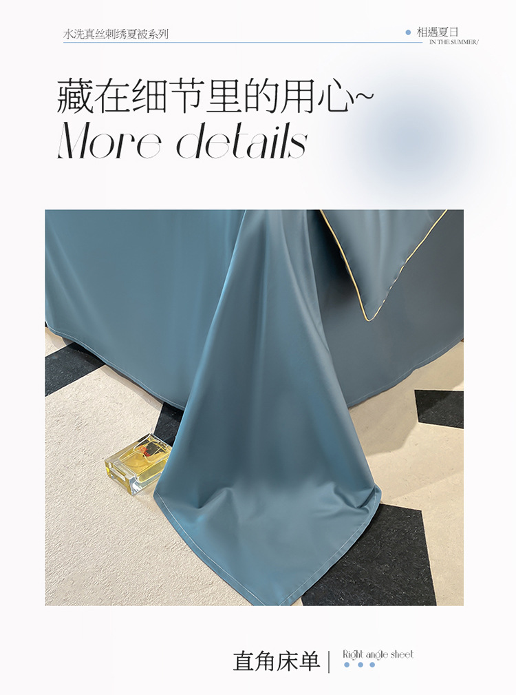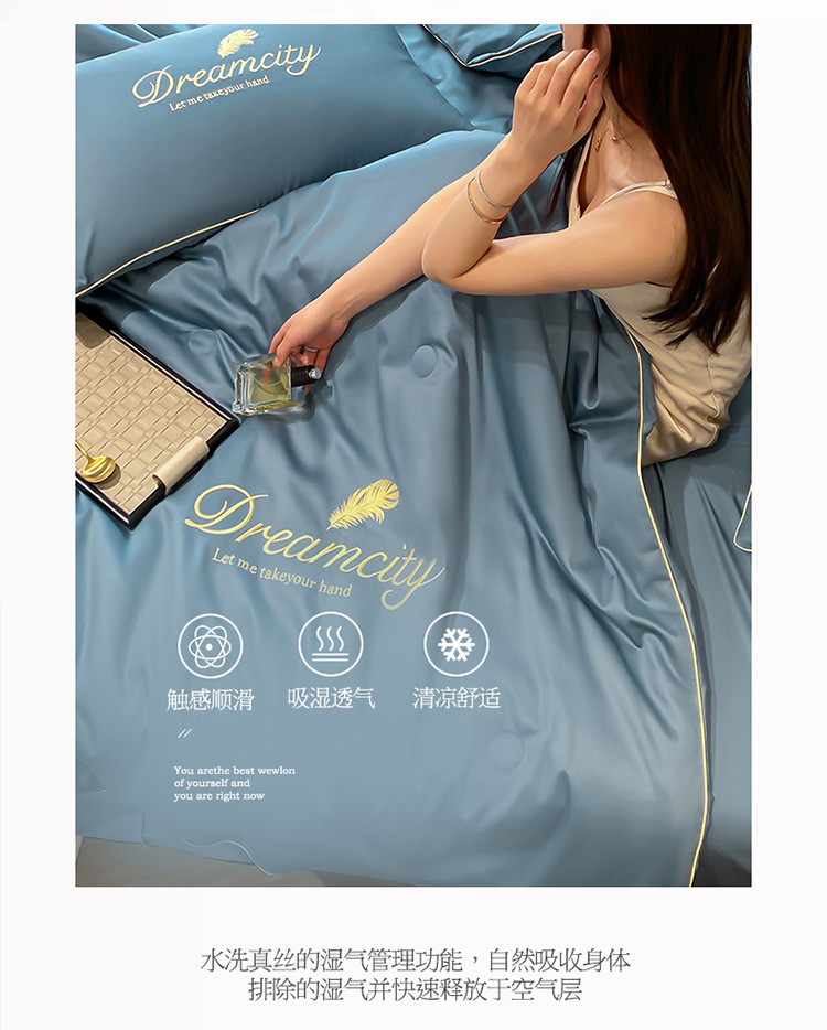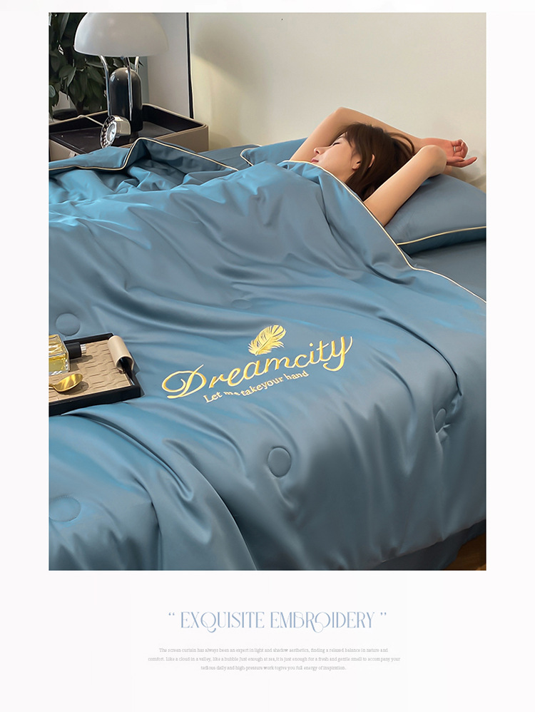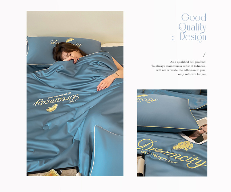 현대적인 심플한 워시 실크 여름 이불, 아이스 실크 여름 시원한 이불, 4피스 여름 이불, 세탁기로 세탁 가능한 텐셀 에어컨 이불