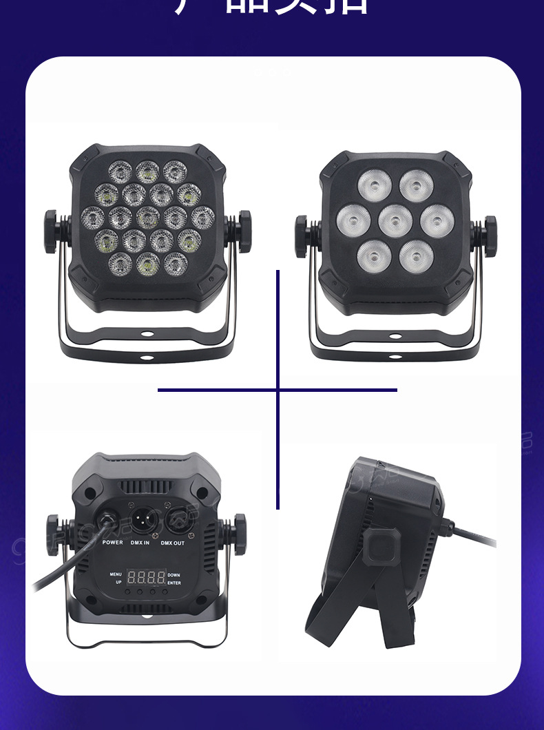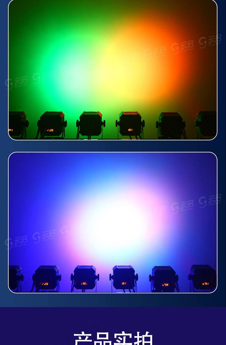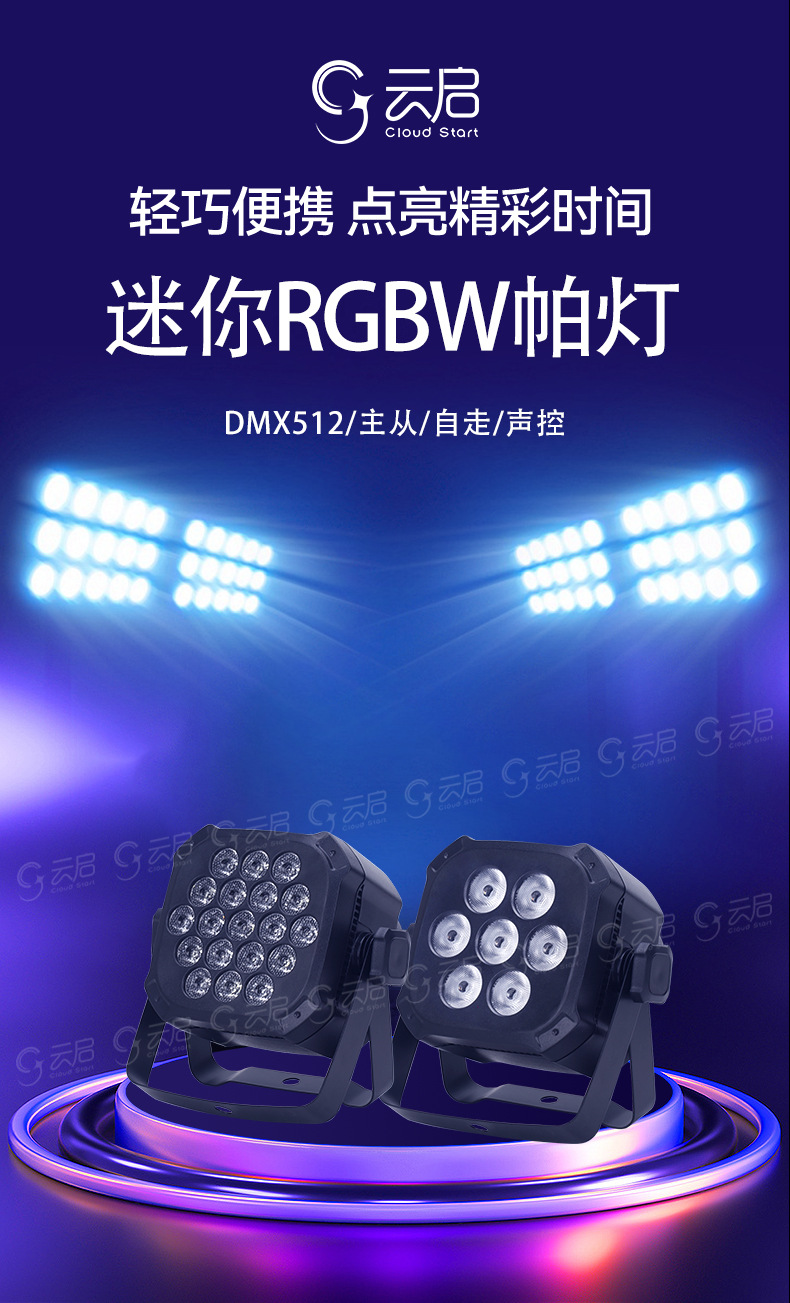 국경 미니 램프 미니 염색 램프 다채로운 회전 램프 웨딩 성능 표면 빛 빛 채우기 조명 무대 조명