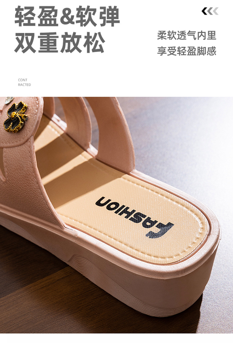 여성용 하이힐 슬리퍼 여름 외부 착용 두꺼운 밑창 유행 홈 미끄럼 방지 어머니 신발 부드러운 밑창 소셜 웨지 슬리퍼스토어 가기