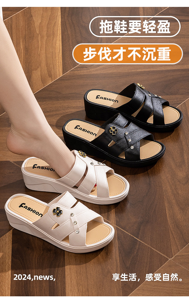 여성용 하이힐 슬리퍼 여름 외부 착용 두꺼운 밑창 유행 홈 미끄럼 방지 어머니 신발 부드러운 밑창 소셜 웨지 슬리퍼
