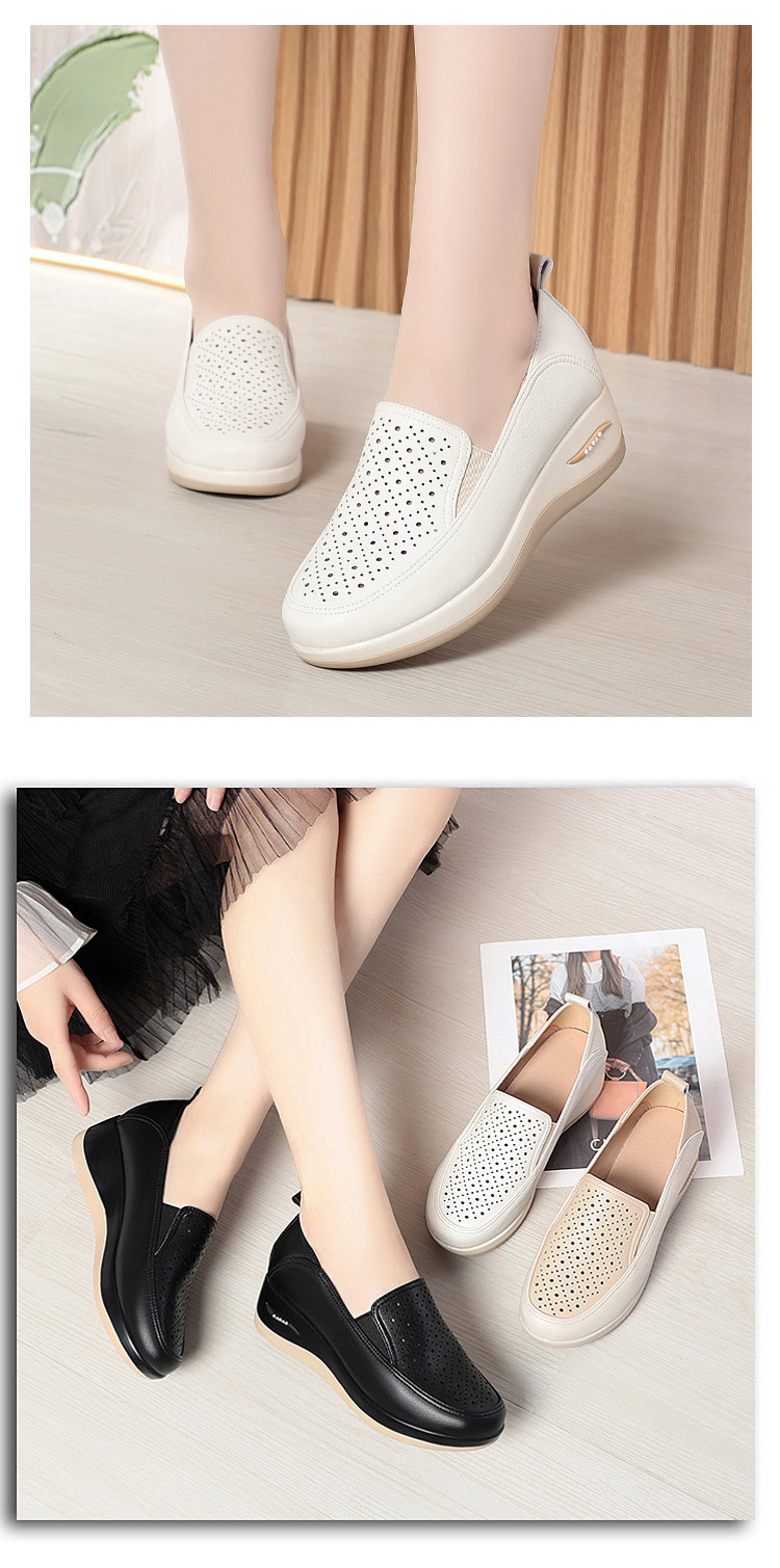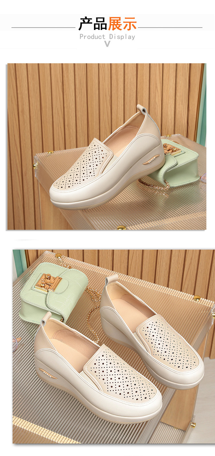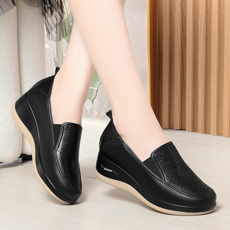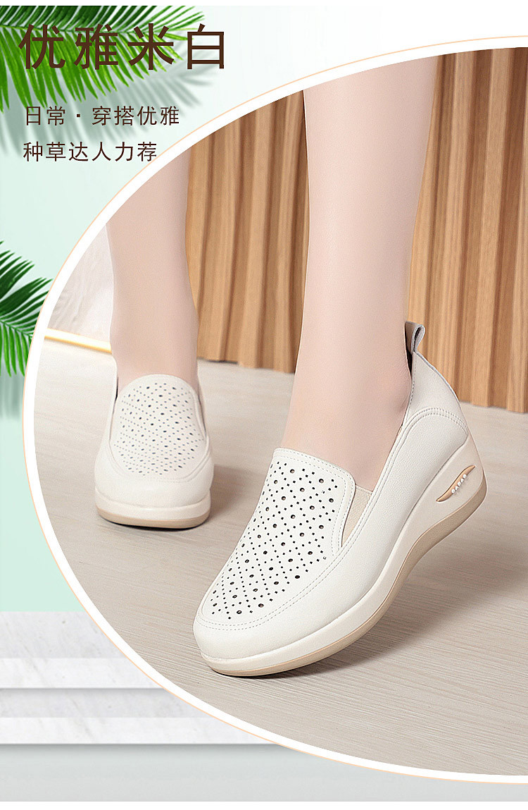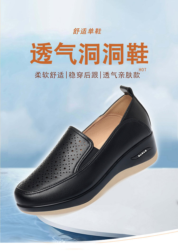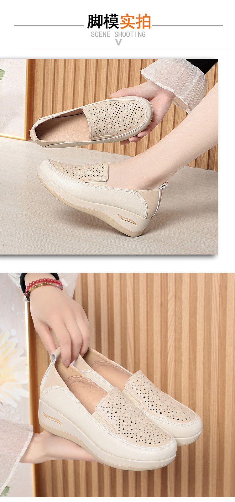 통기성 어머니 신발 여름 2024 새로운 중년 여성 신발 소프트 단독 편안한 싱글 레이어 신발 구멍 신발 웨지 가죽 신발스토어 가기