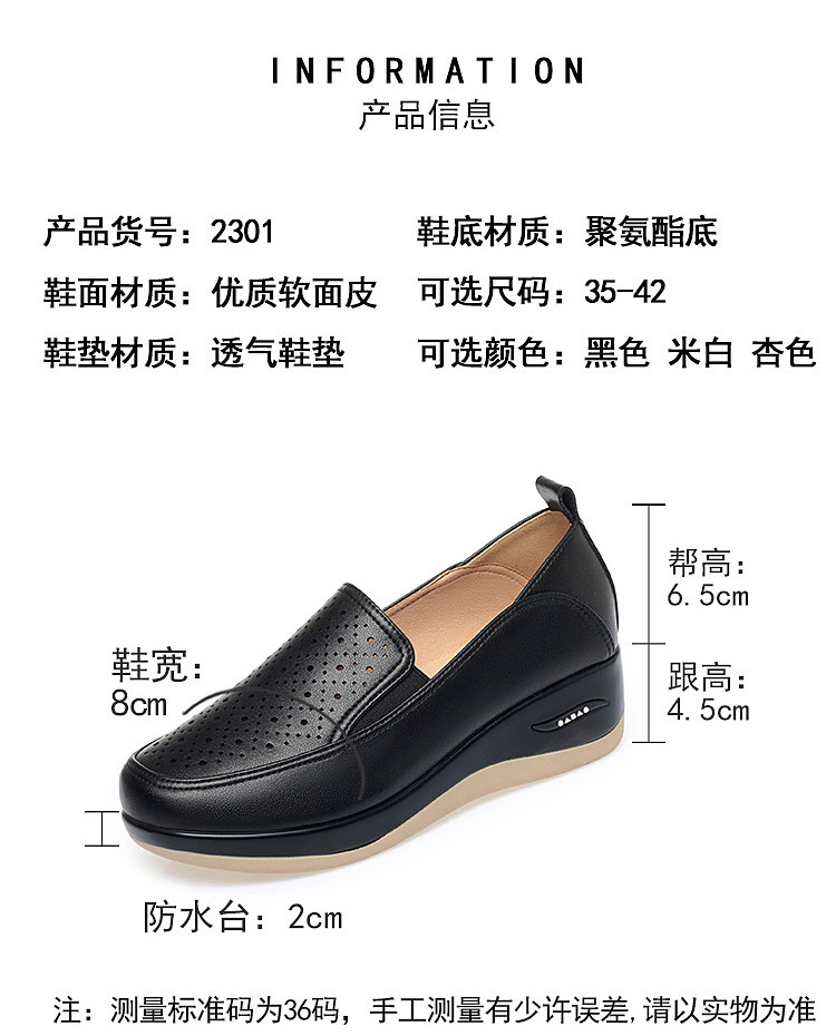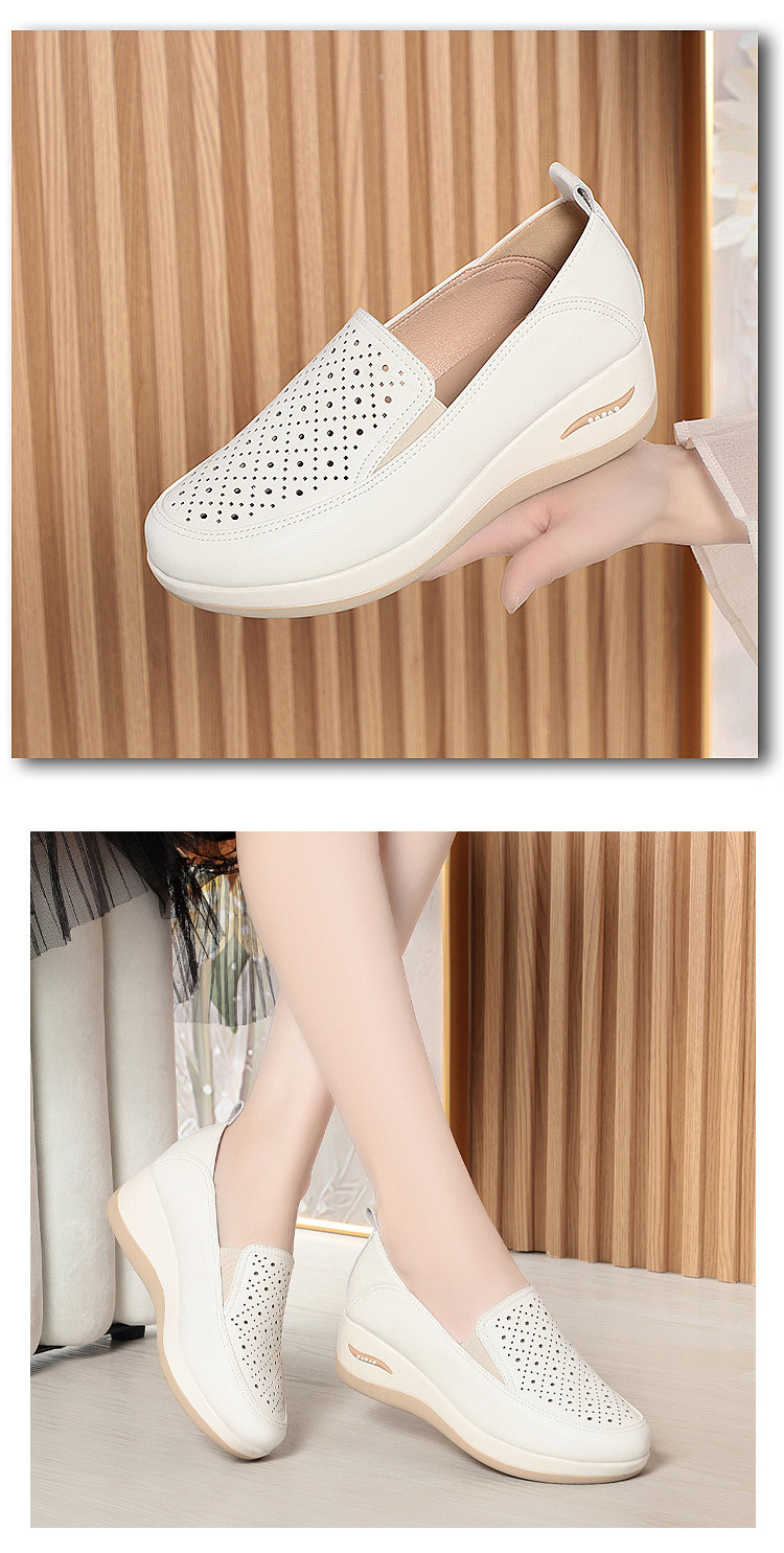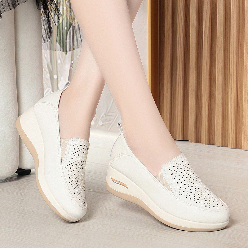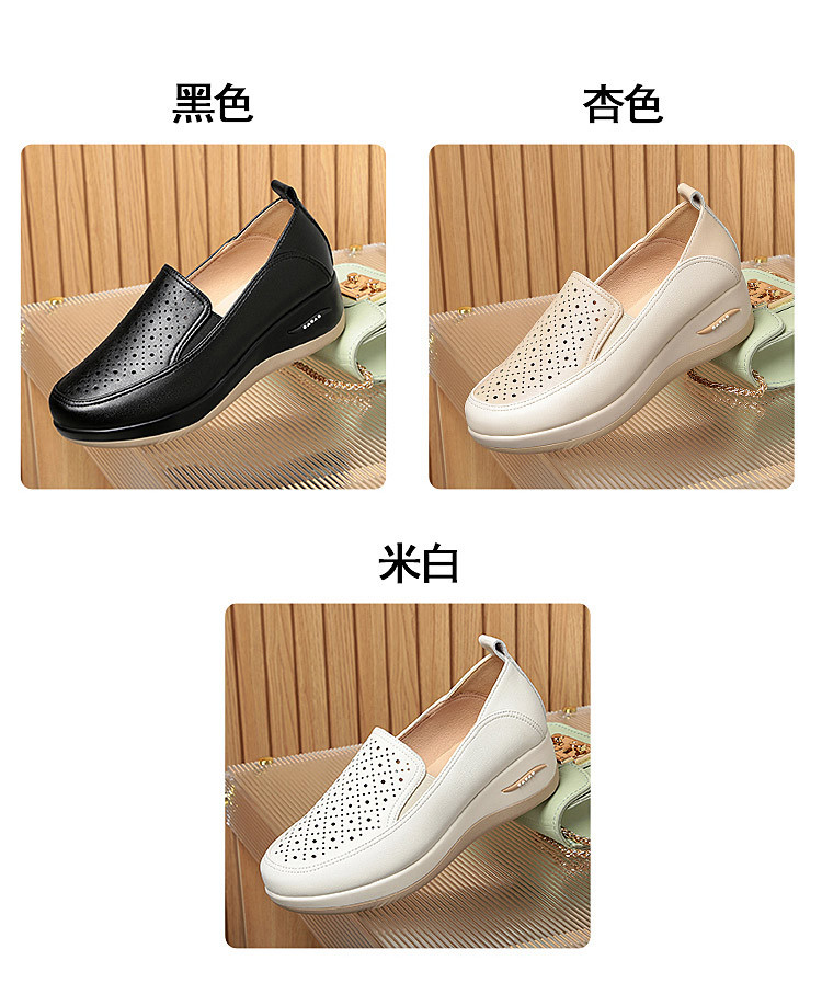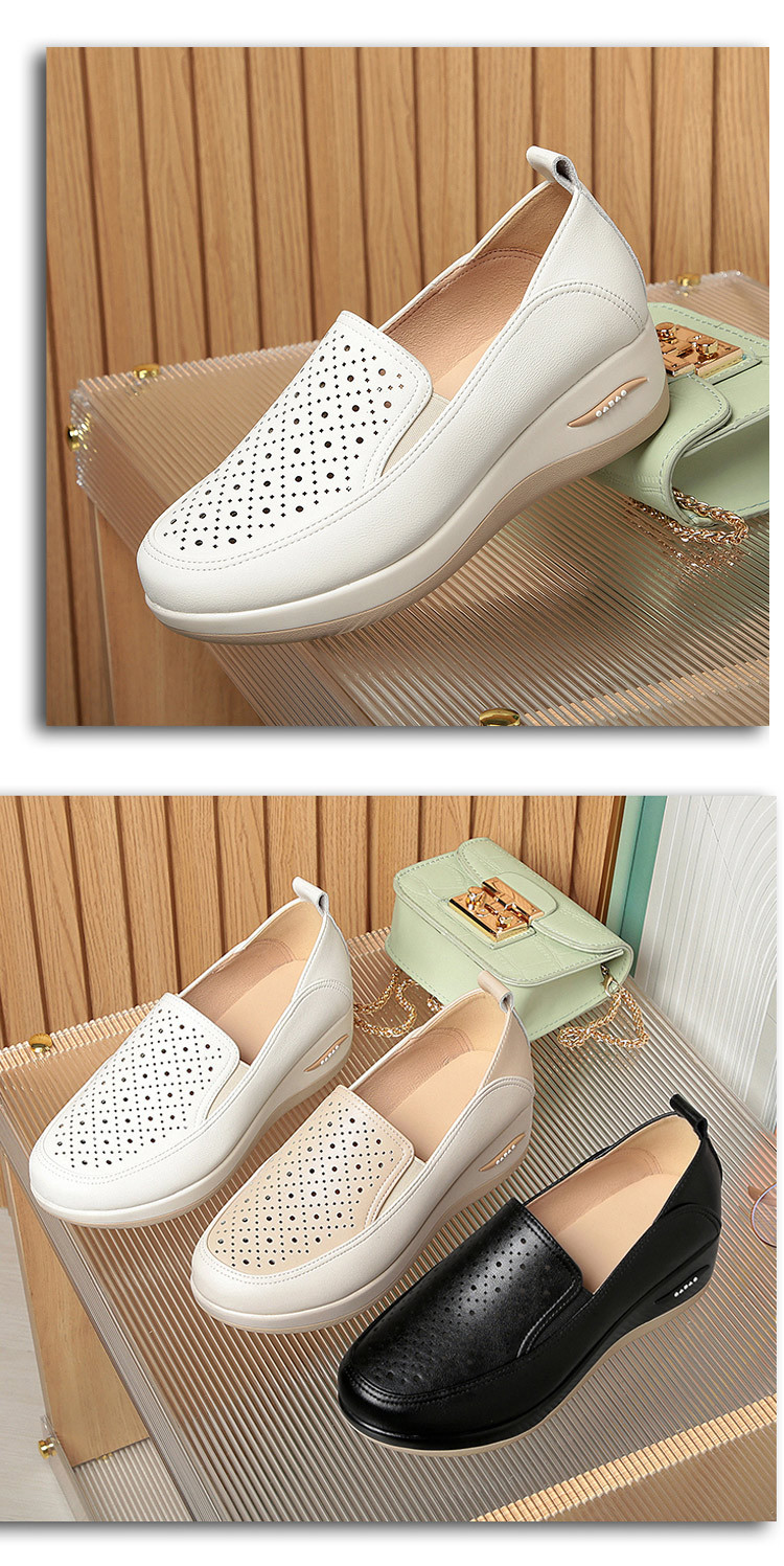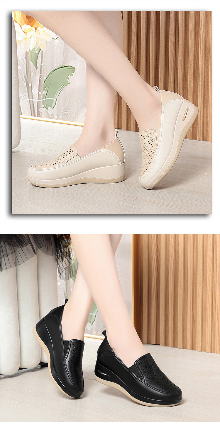 통기성 어머니 신발 여름 2024 새로운 중년 여성 신발 소프트 단독 편안한 싱글 레이어 신발 구멍 신발 웨지 가죽 신발스토어 가기