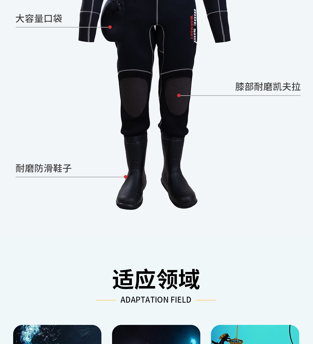 건식 다이빙 세트 5mm 일체형 내마모성 네오프렌 건식 옷 도시 구조 및 구조 의류 방냉 및 보온 유지