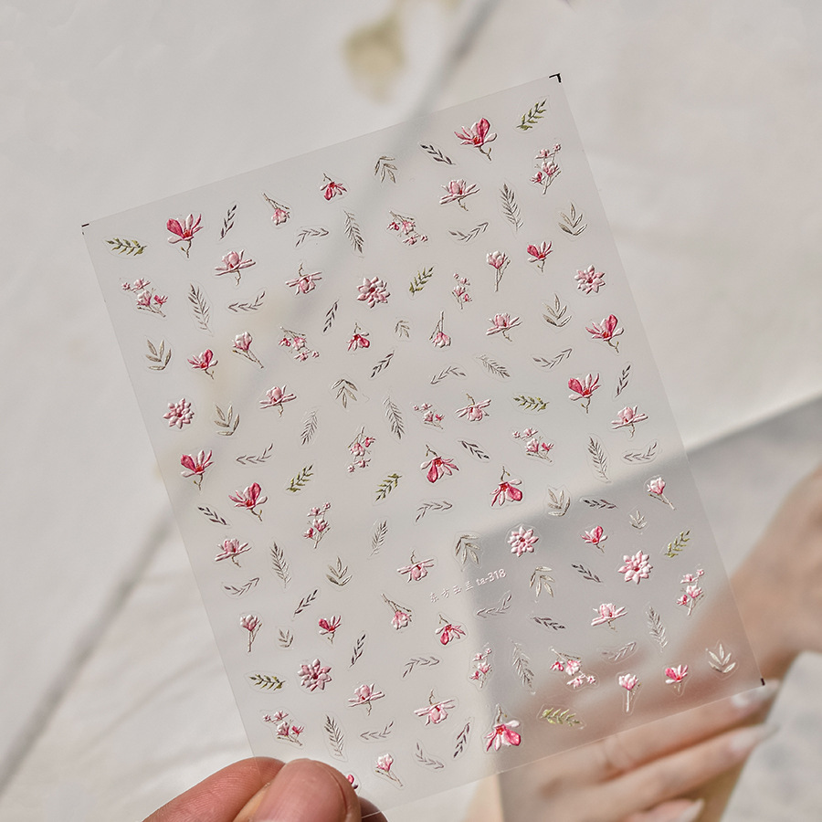 새로운 봄 꽃 네일 아트 스티커 목련 네일 스티커 스테레오 릴리프 컬러 꽃 어린이 네일 데칼